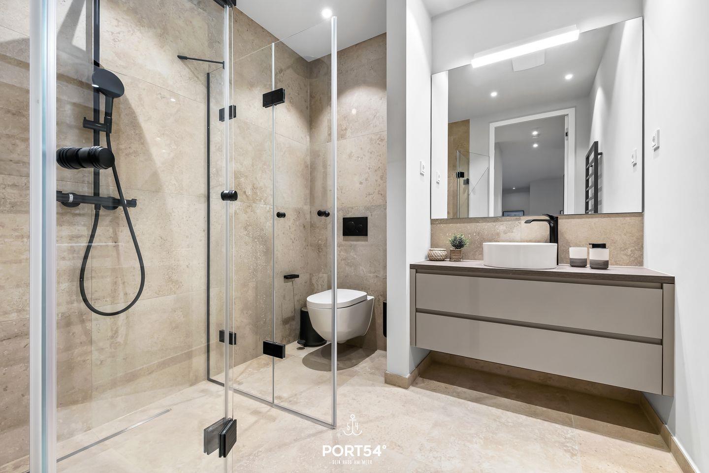 Die Unterkunft verfügt über zwei hell und freundlich gestaltete Schlafzimmer mit je einem Doppelbettboxspringbett der Marke Schramm (180x200cm), die zum Entspannen und Wohlfühlen einladen. Jedes Zimmer ist liebevoll eingerichtet und bietet den nötigen Komfort für erholsame Nächte. Die großen Fenster erlauben einen wunderbaren Blick auf die Umgebung, während gleichzeitig ausreichend Tageslicht in die Räume strömt. Zudem stehen Ihnen zwei moderne Badezimmer zur Verfügung, die mit bodengleichen Duschen ausgestattet sind und höchsten Ansprüchen genügen. Eine Dusche verfügt über eine Infrarotdusche.