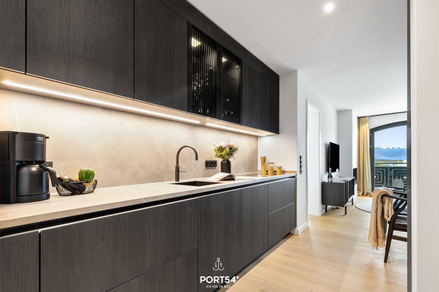 Viele Möbel der hochwertigen Einrichtung stammt aus dem Hause der Bornhold Manufaktur in Hamburg und wurden nach Maß angefertigt, Marken wie Schramm, ASCO, Jacaranda, Christine Knöcke und VIPP stehen für den Anspruch und die Qualität in dieser Ferienwohnung.