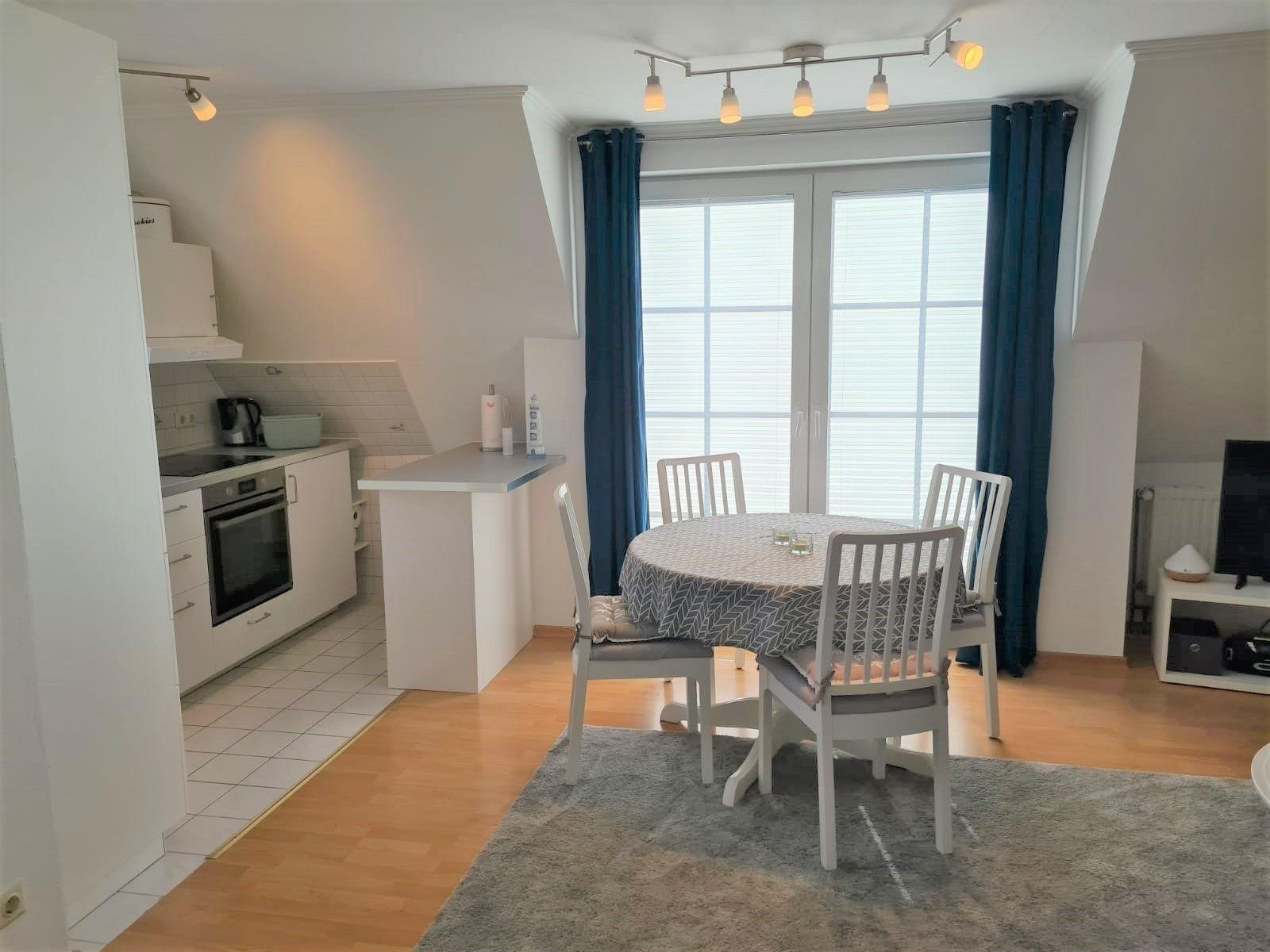 Die Eigentümerwohnung ist sehr gepflegt und komfortabel und liebevoll neu eingerichtet. Die Wohnung hat Fussbodenheizung und bietet Platz für bis zu 4 Personen. Die 60qm-Wohnung hat 2 Schlafräume, einen gemütlichern Wohnraum mit großem Esstisch und eine komplett ausgestattete Küchenzeile mit Induktionskochfeld und DuscheWC mit Fön. Des Weiteren verfügt die freundliche Wohnung über Satelliten-TV und Telefon.