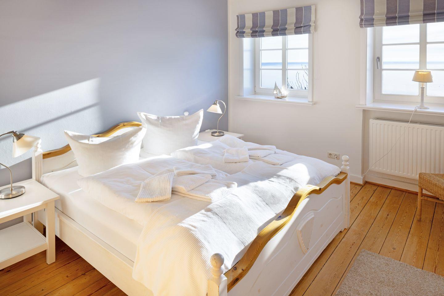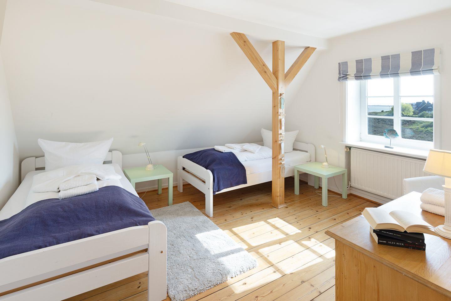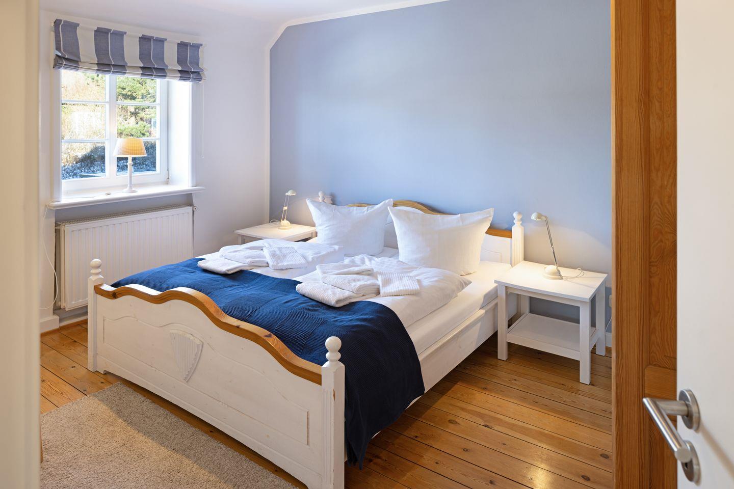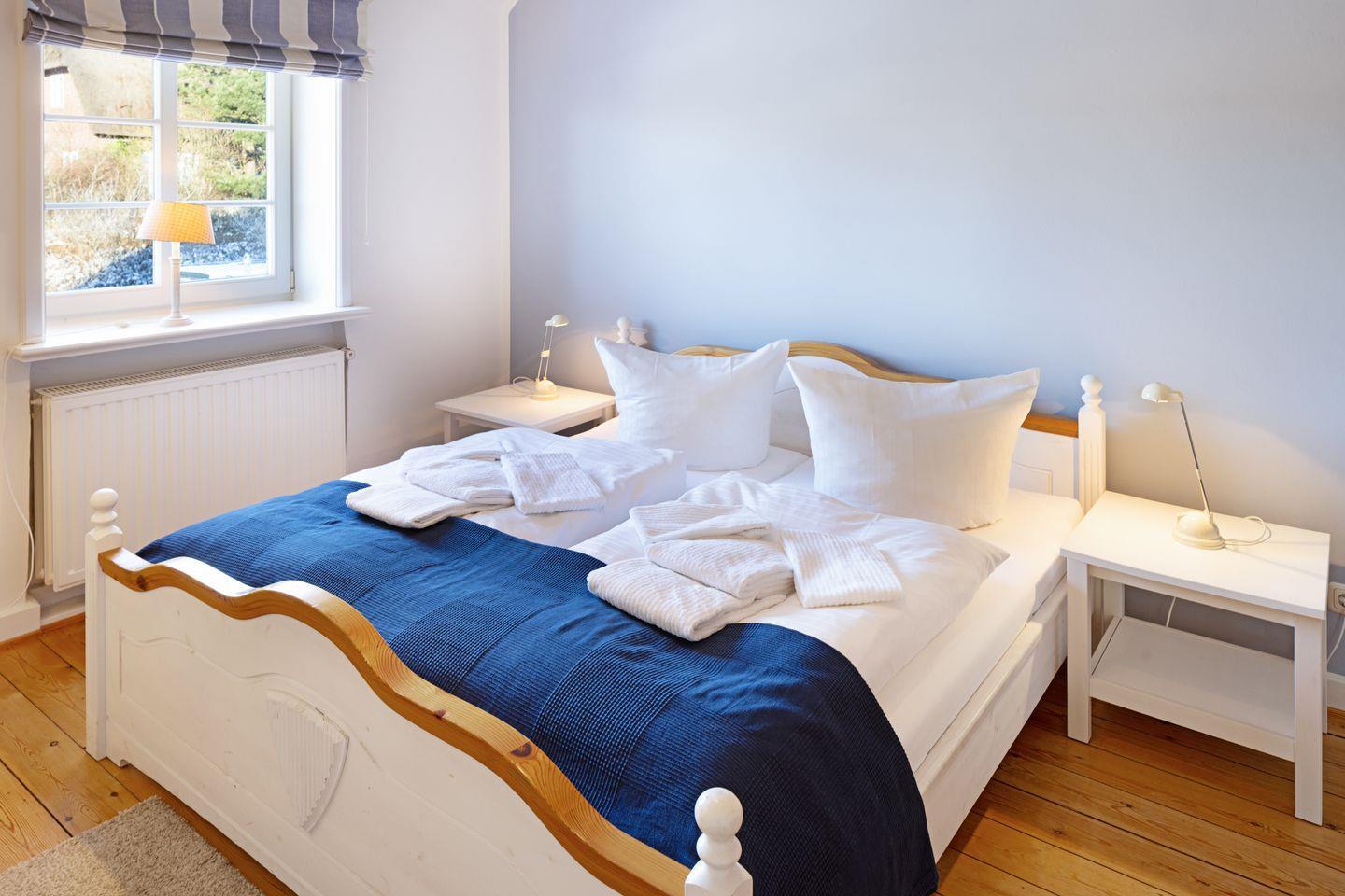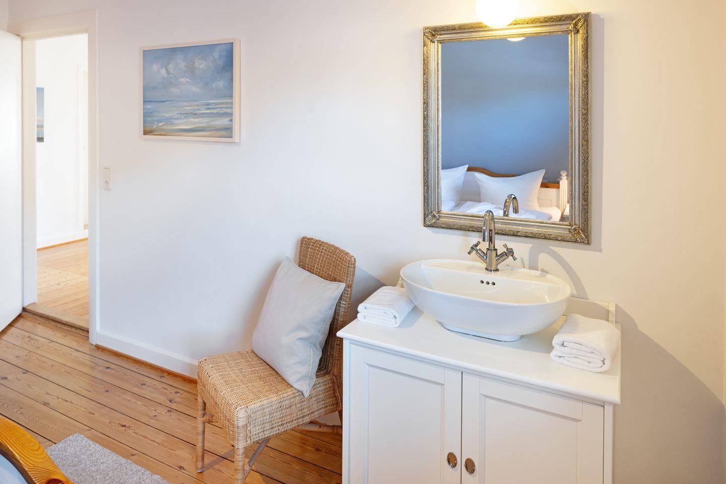 Die weiteren Schlafzimmer (zwei mit Doppelbetten, zwei mit jeweils zwei Einzelbetten) und das zweite Badezimmer mit Duschwanne befinden sich 1. Stock.