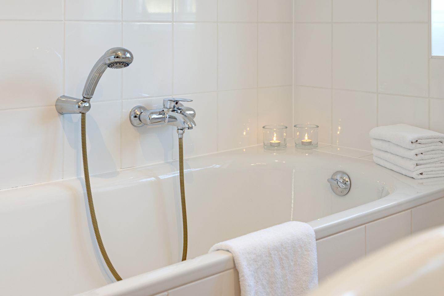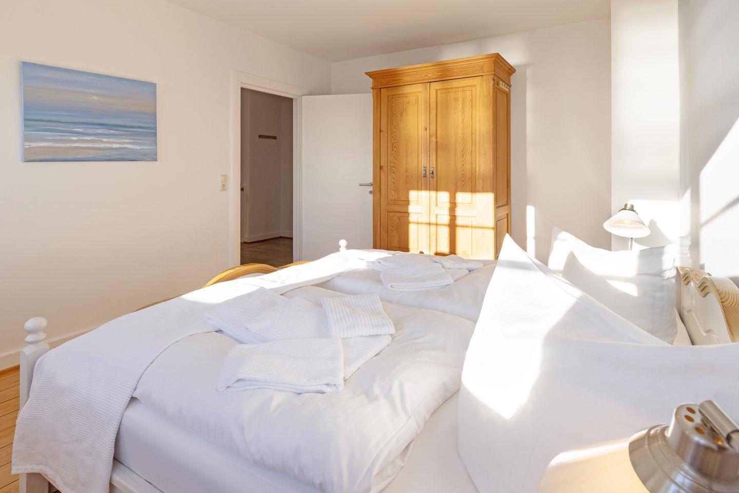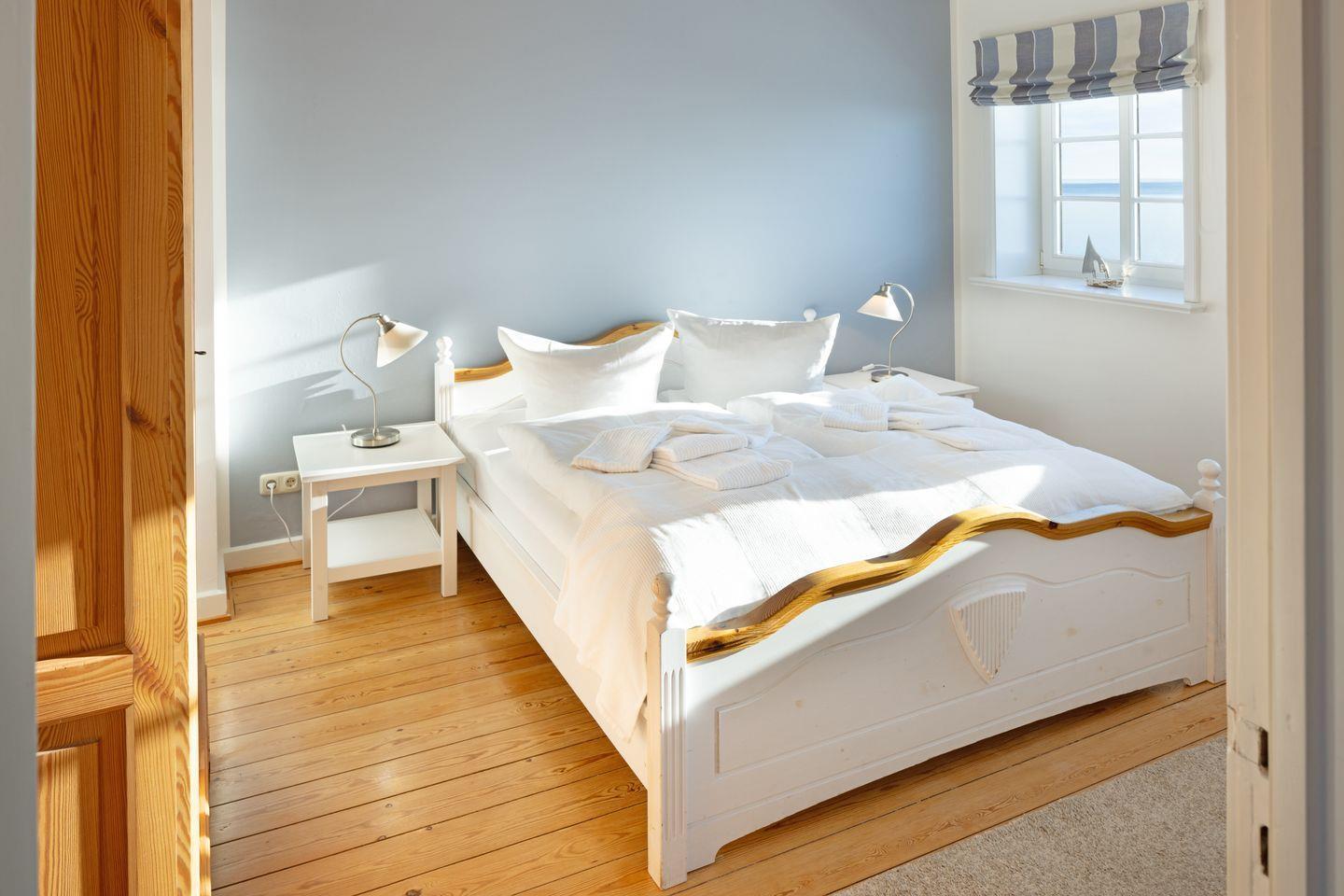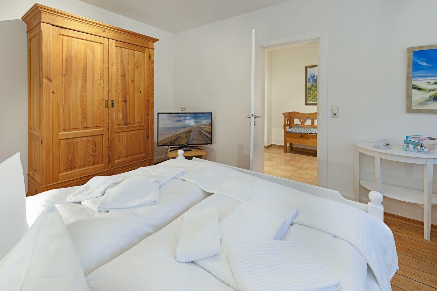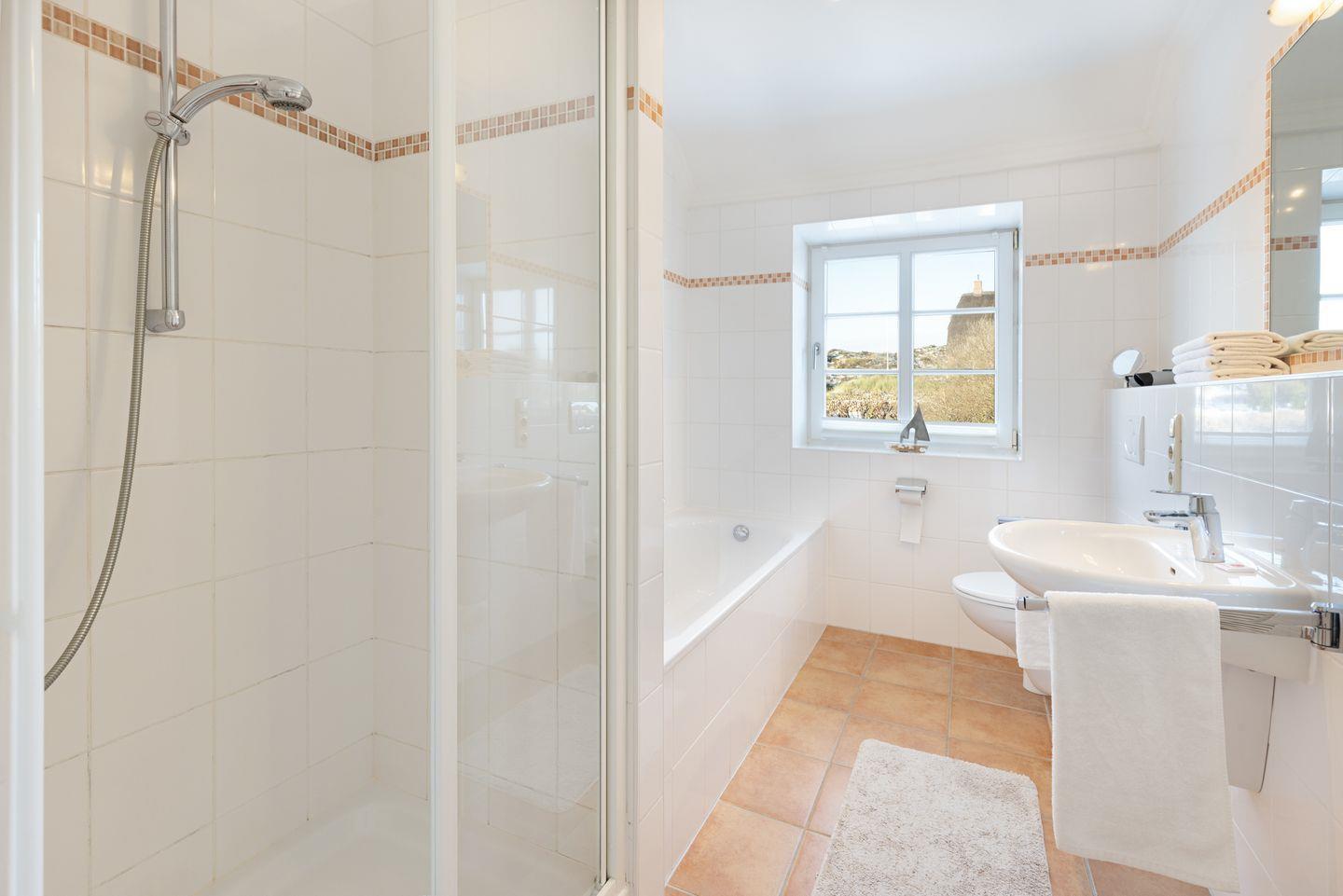Die weiteren Schlafzimmer (zwei mit Doppelbetten, zwei mit jeweils zwei Einzelbetten) und das zweite Badezimmer mit Duschwanne befinden sich 1. Stock.