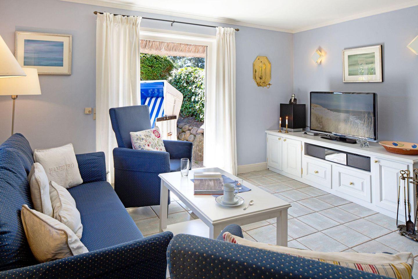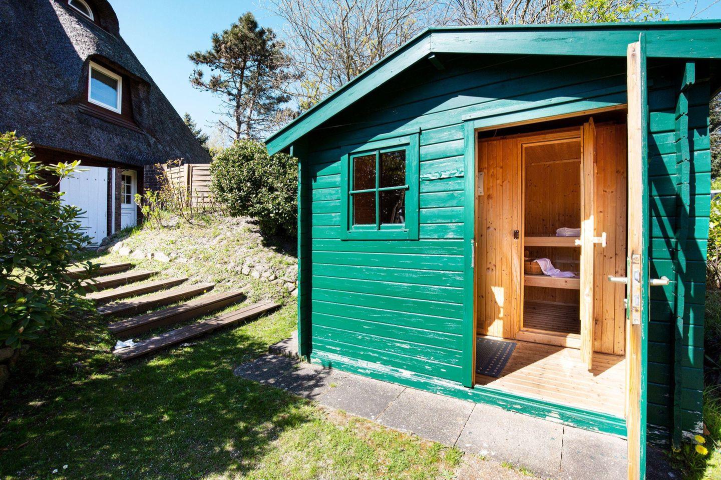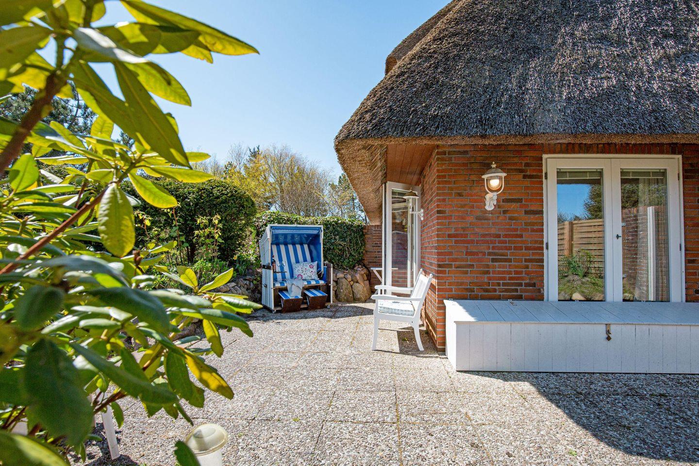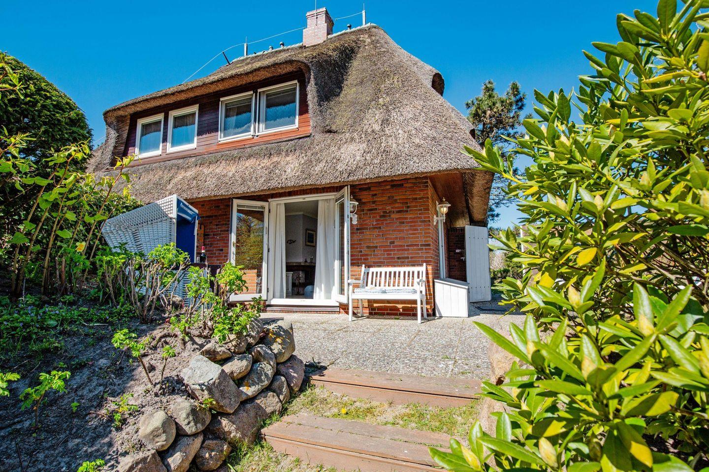 Familienfreundliches Ferienreihenhaus unter Reet für bis zu vier Personen mit Sauna und Kamin am Lister Oststrand.