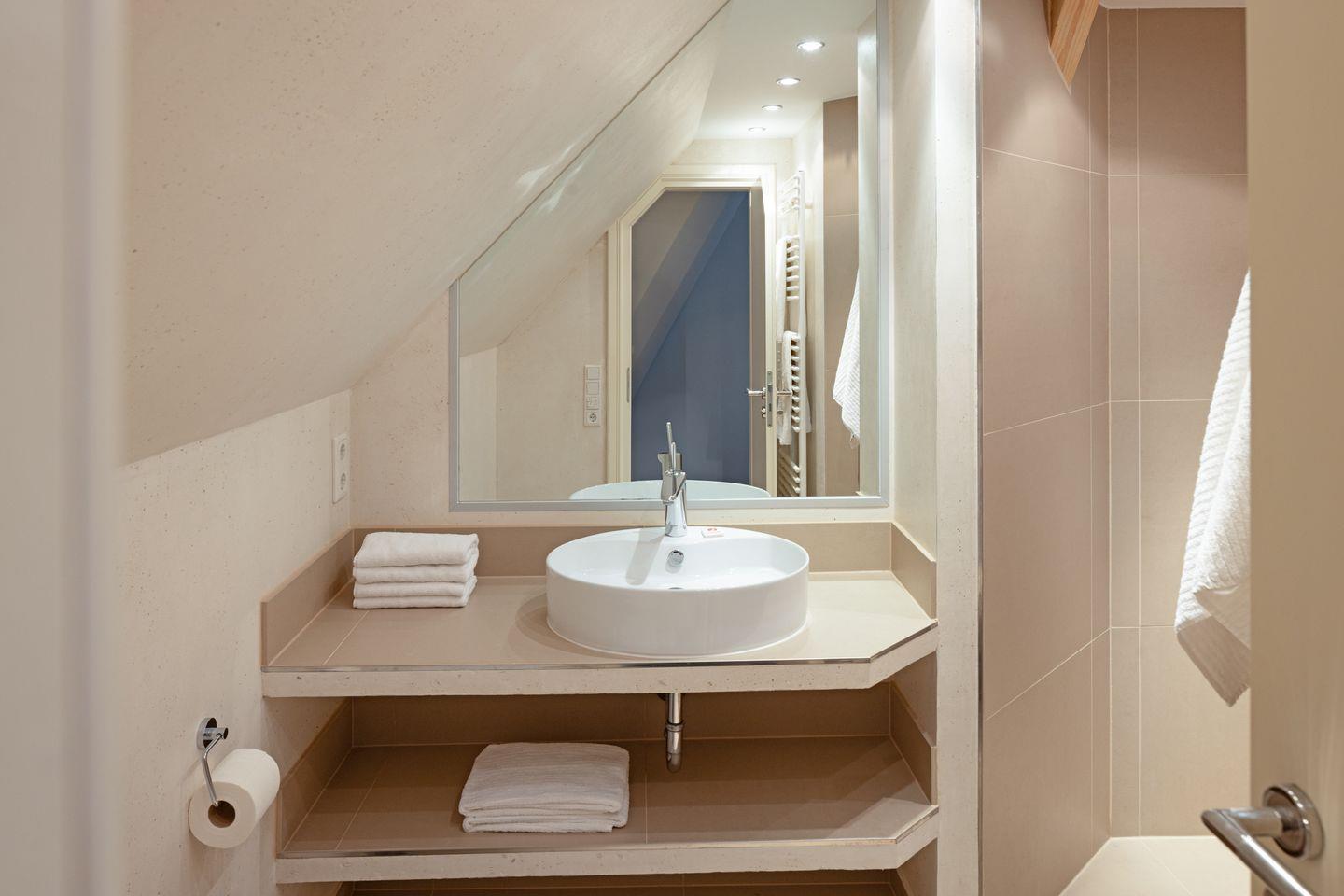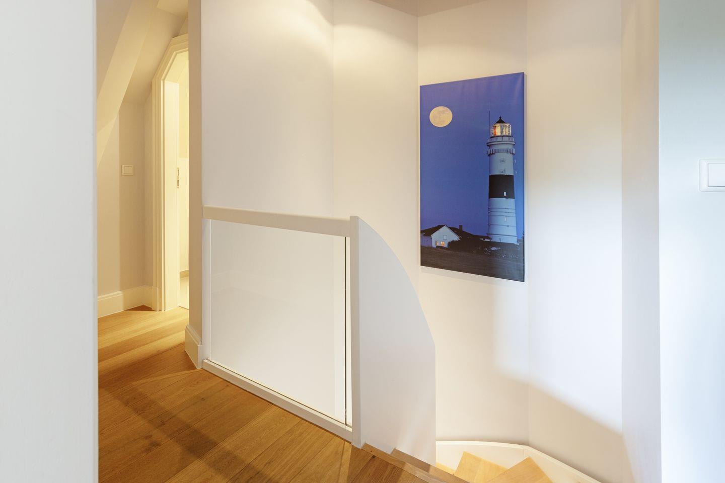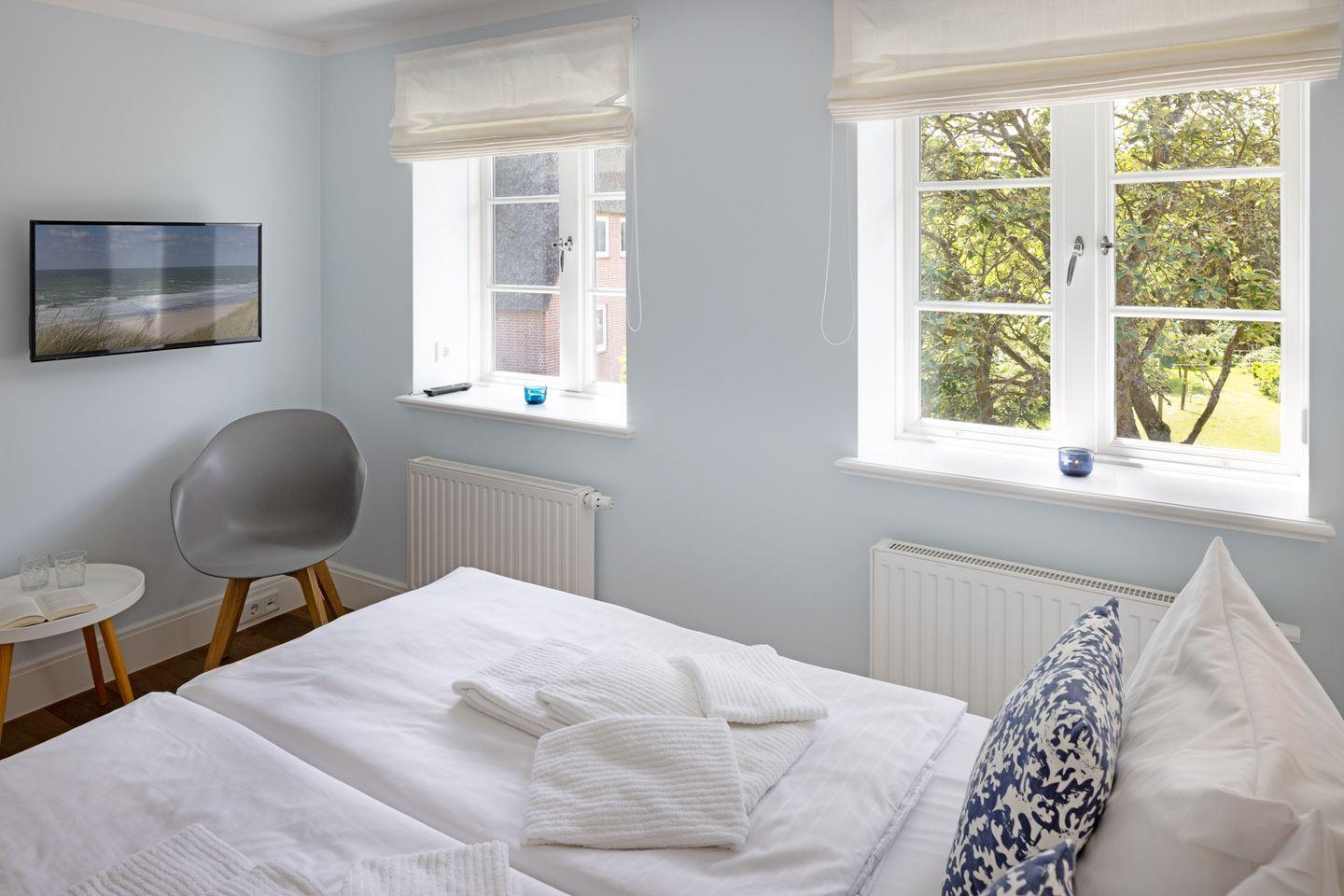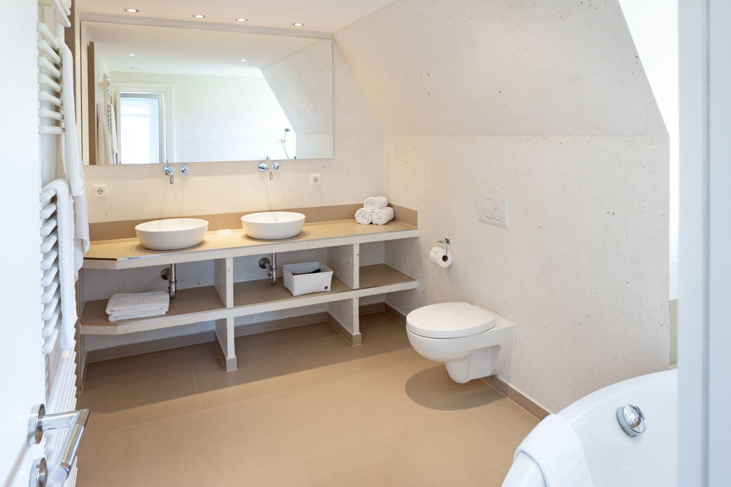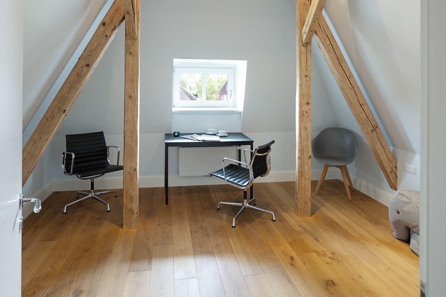 Nordisch moderne Behaglichkeit erwartet sie auch in den geräumigen Schlafzimmern und Bädern im Obergeschoss mit Blick auf die reetgedeckte Nachbarschaft. Zwei Schlafzimmer verfügen über Smart TVs. Der Saunabereich im Untergeschoß lädt sie zum Erholen ein.