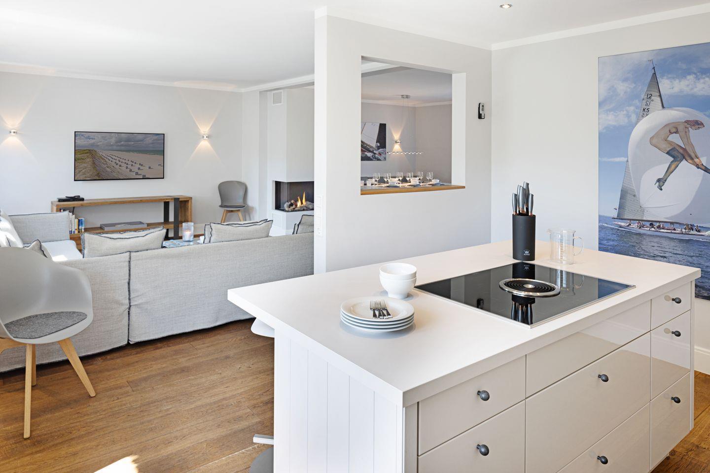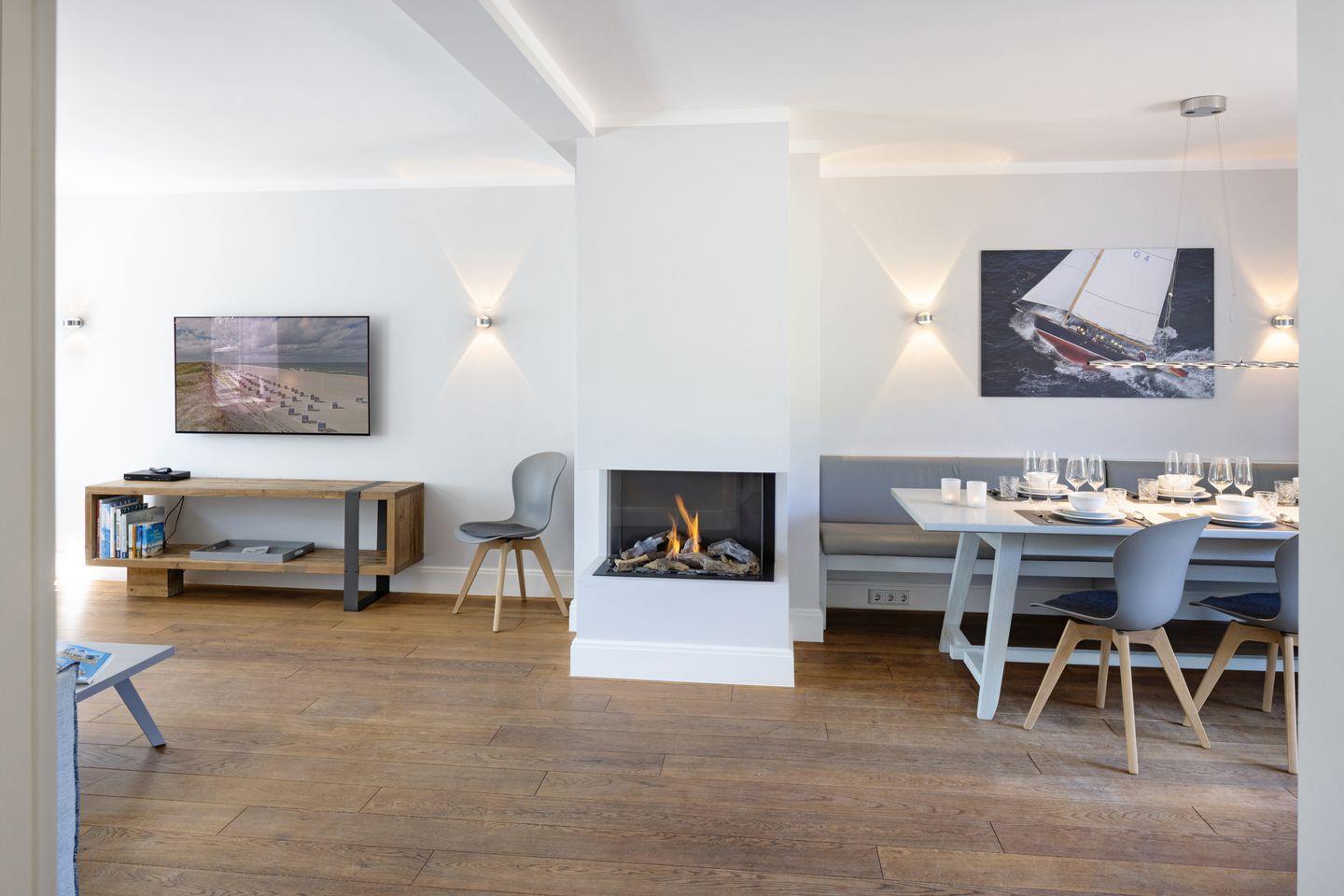 Das mit maritimen Einrichtungsdetails versehene Haus "Newport" befindet sich in einer der beliebtesten Straßen von List, direkt angrenzend an die schöne Lister Dünenlandschaft. Der großzügige Wohn-, Essbereich sowie die offene Küche mit Kochinsel sind modern und hochwertig ausgestattet, es steht eine Bosestation sowie ein Smart TV zur Verfügung. Der von allen Bereichen einsehbare Gaskamin schafft eine gemütliche Atmosphäre auf Knopfdruck.