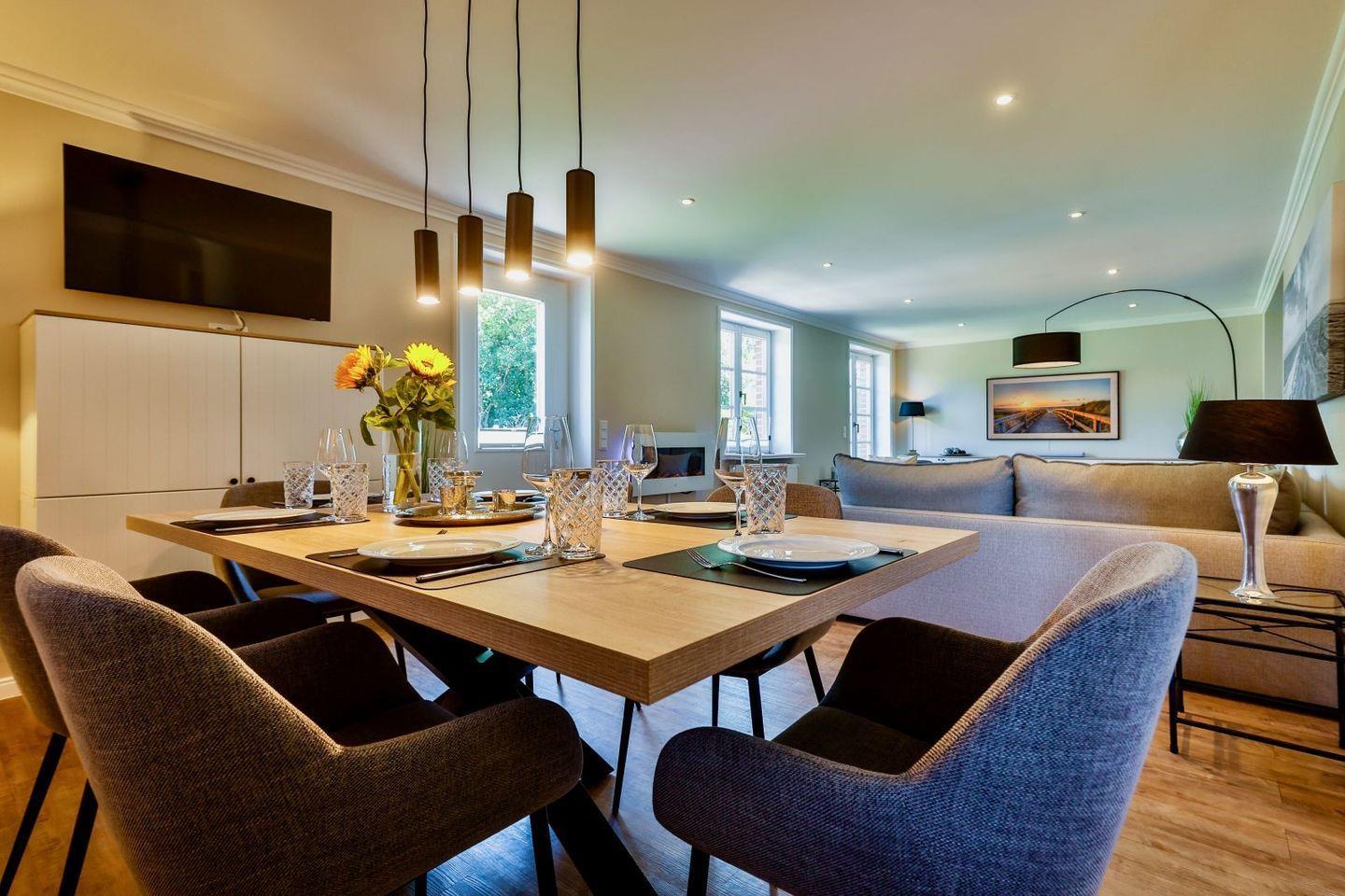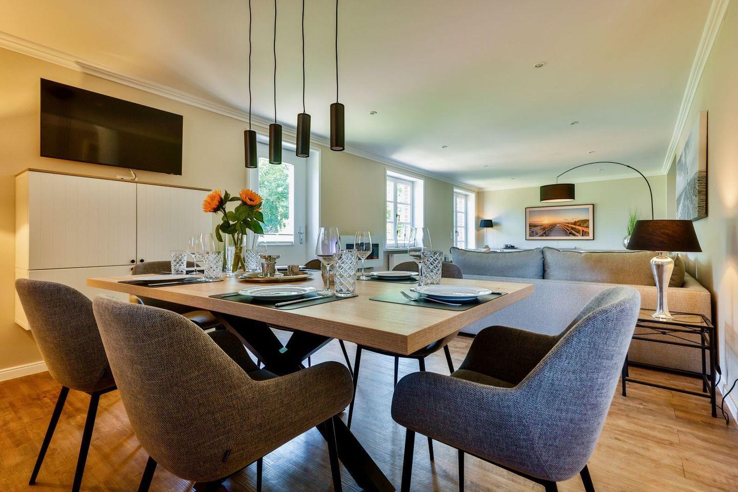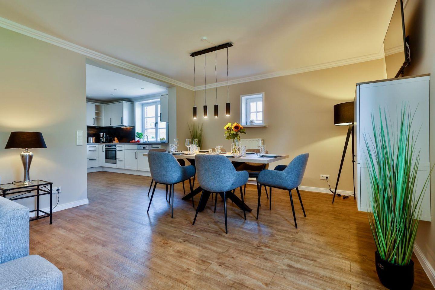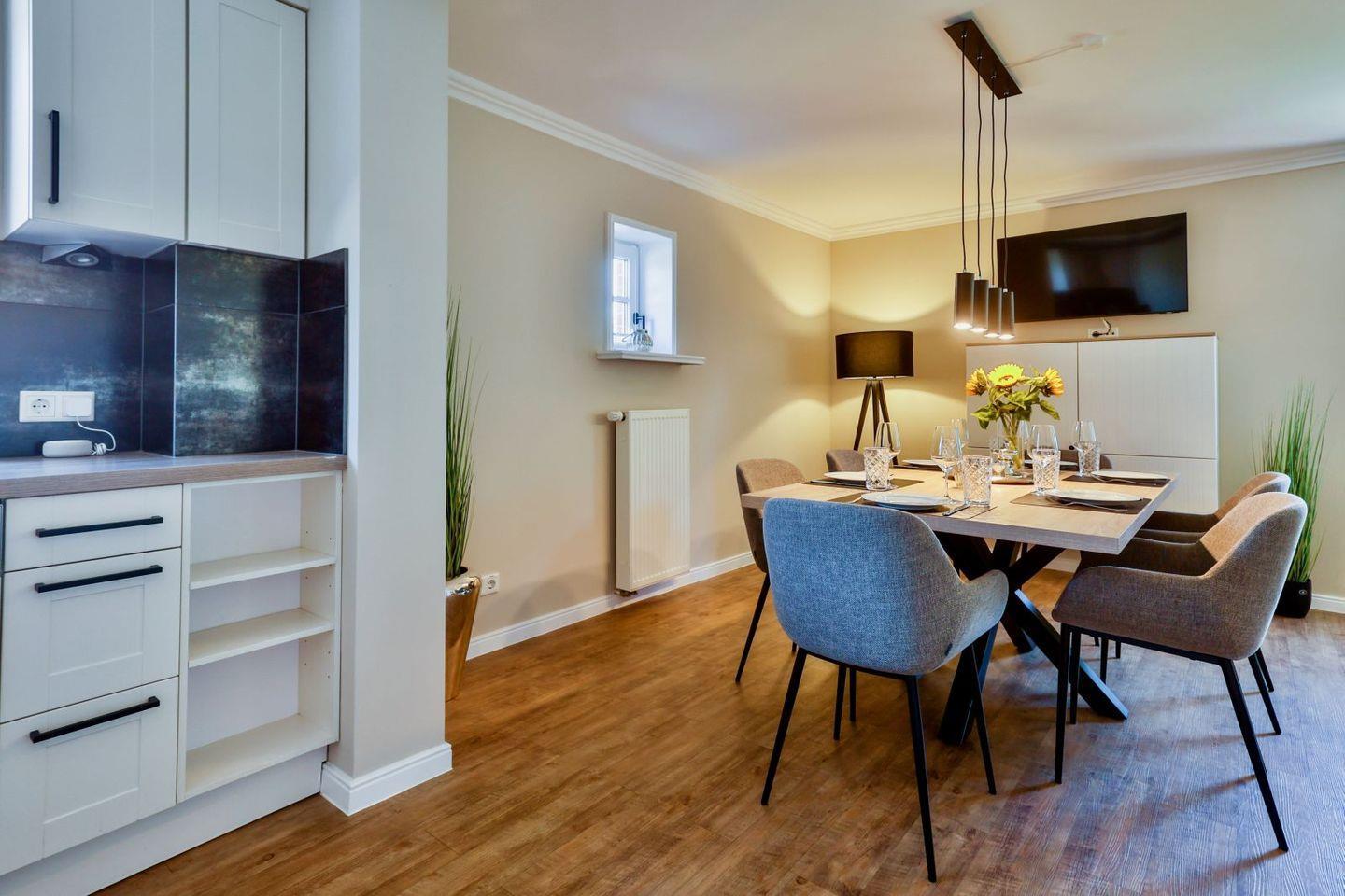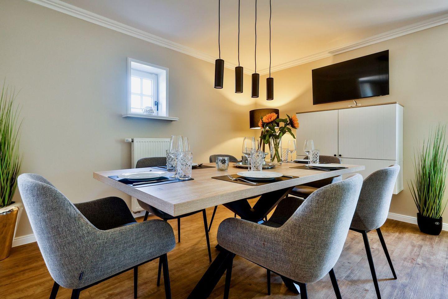 Modernes familienfreundliches Feriendoppelhaus für bis zu sechs Personen in Strandnähe mit Sauna und Garten.