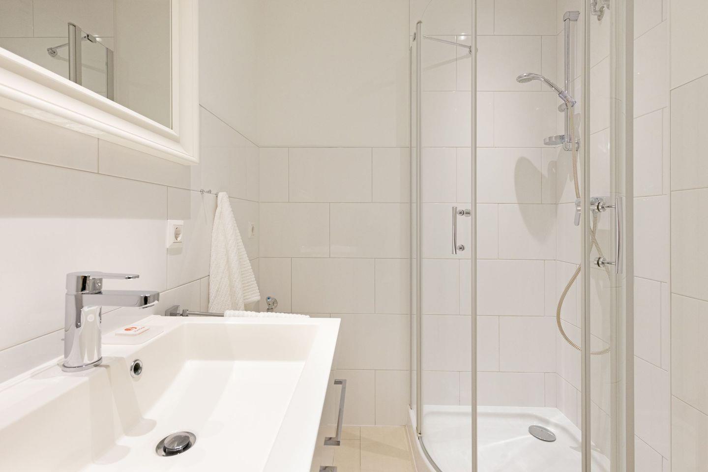 Die Wohnung verfügt über ein gemütliches Schlafzimmer mit Teppichboden, das für einen erholsamen Schlaf sorgt. Das angrenzende Badezimmer ist mit einer modernen, Dusche ausgestattet, ideal für einen erfrischenden Start in den Tag. Der Wohnbereich lädt zum Entspannen ein und bietet eine gemütliche Sofaecke.