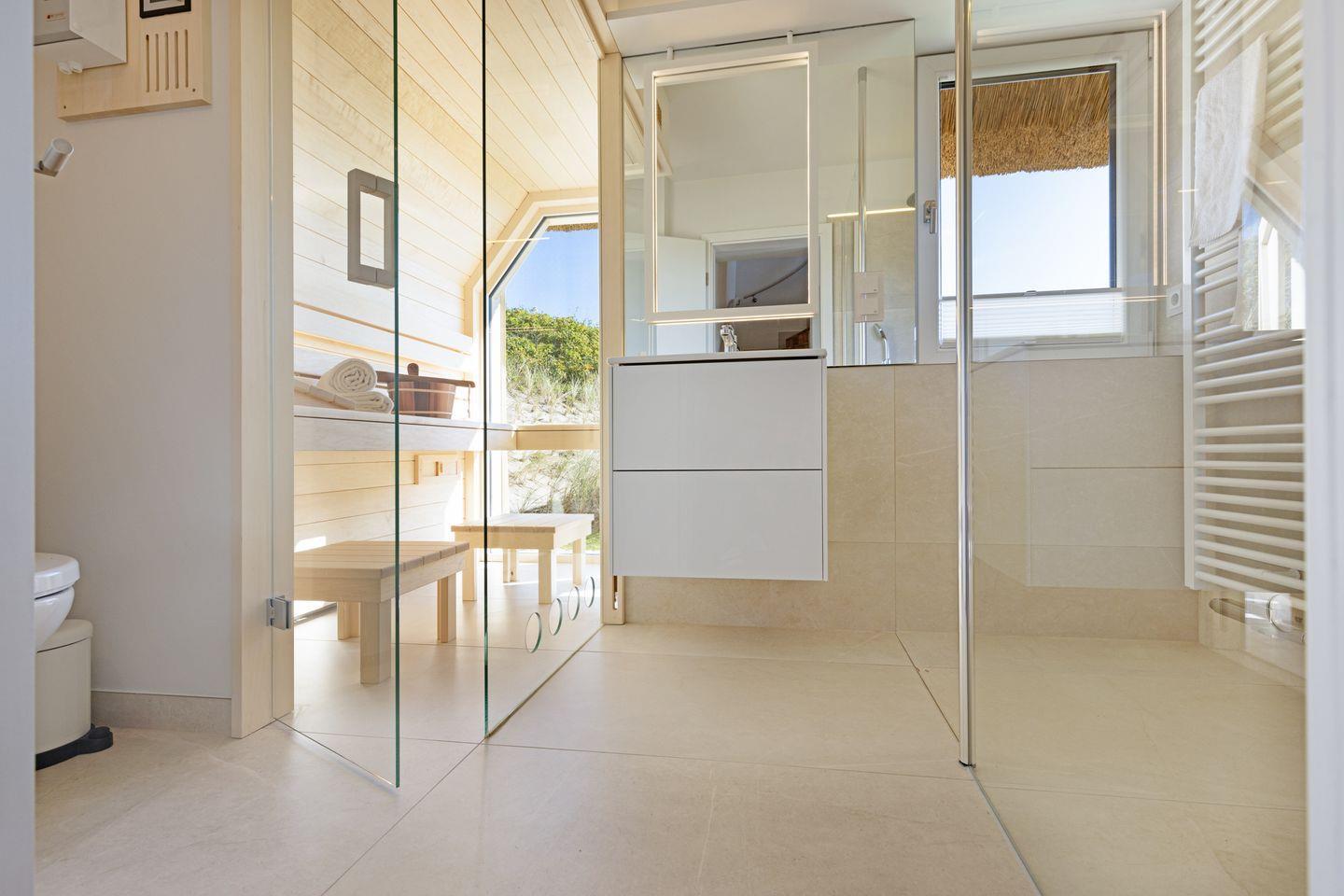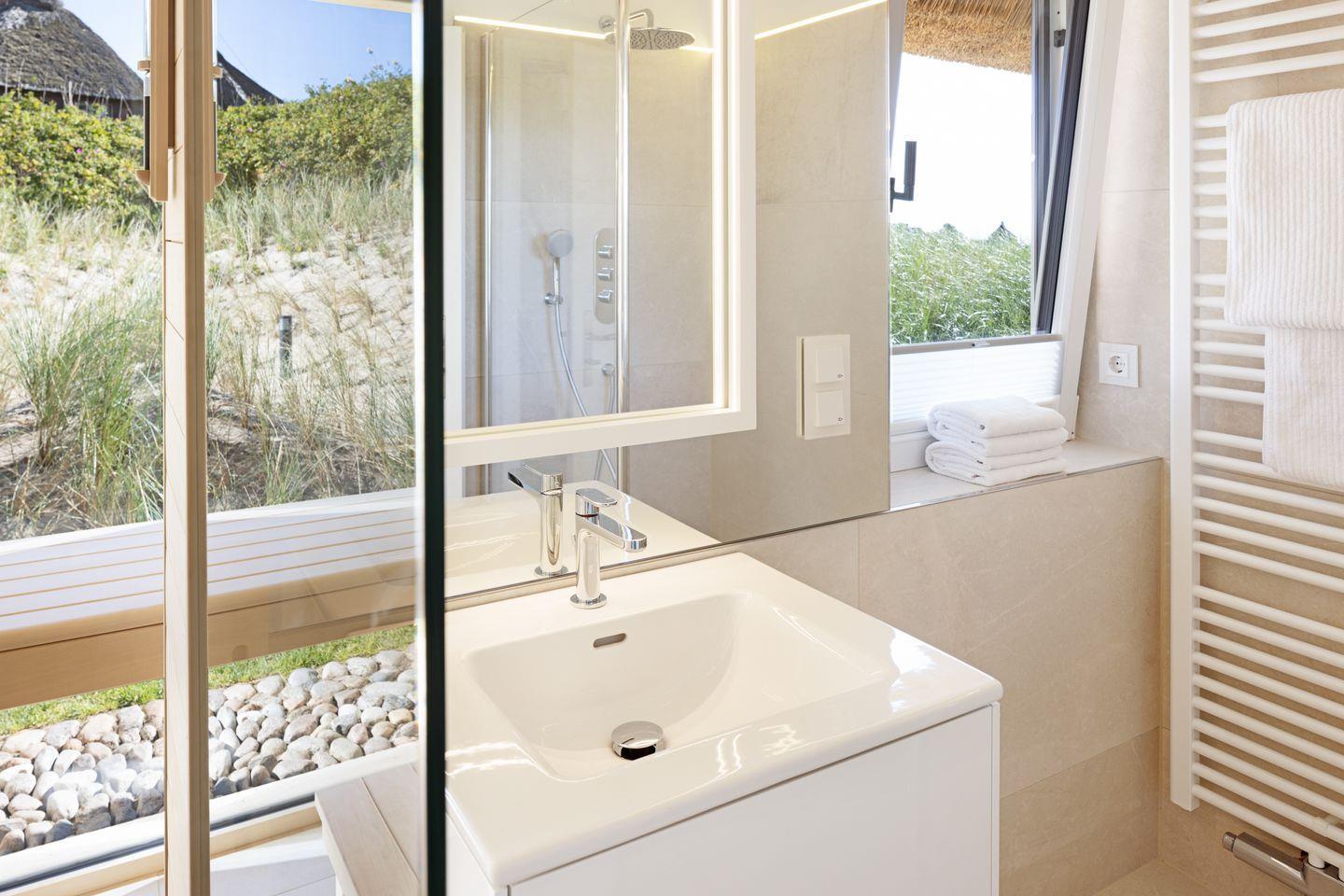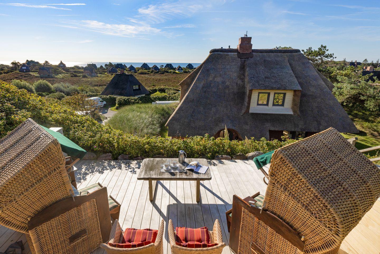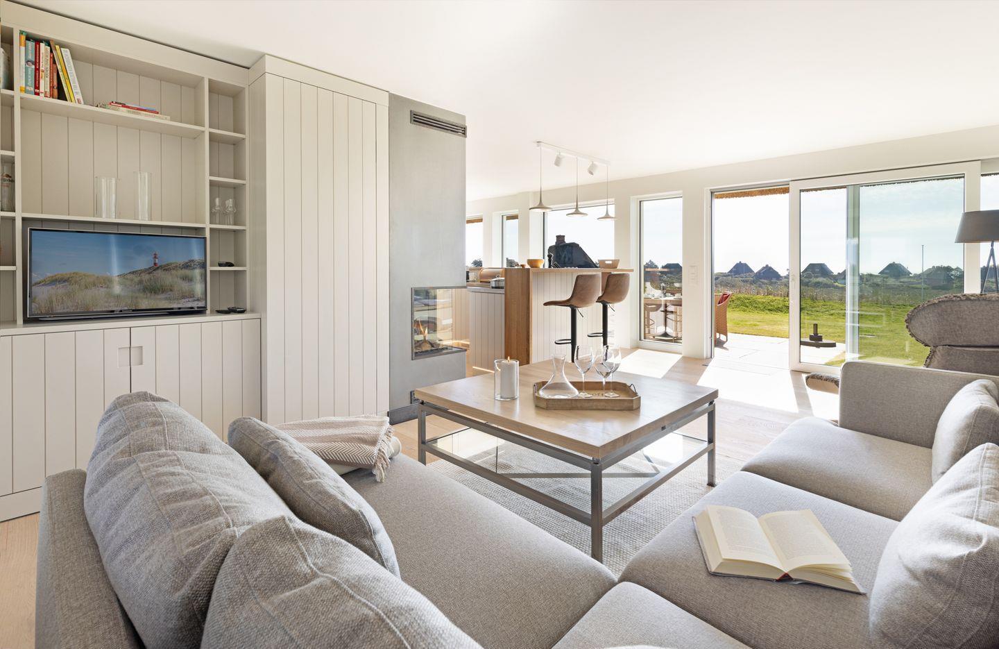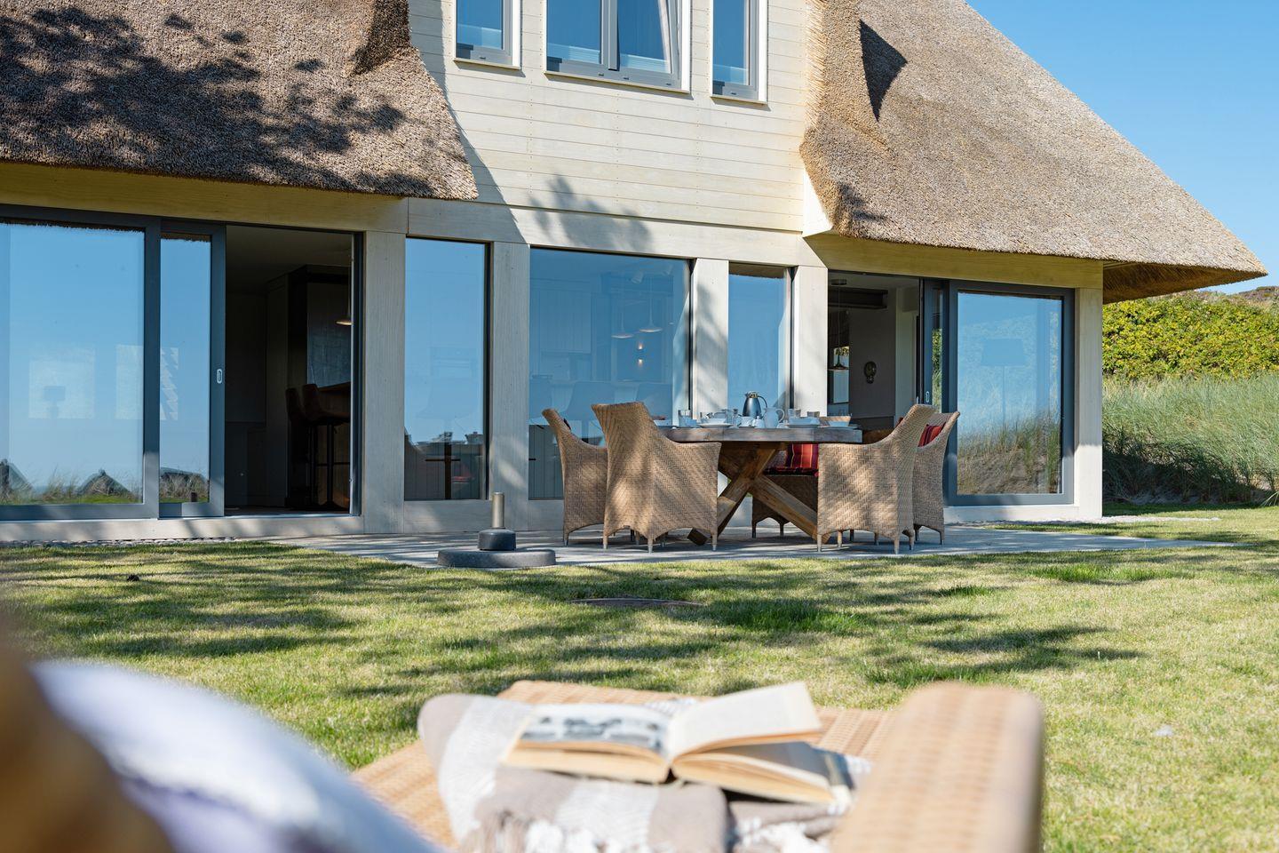 Modernes Ferienhaus unter Reet für bis zu sechs Personen mit Sonnenterrasse und Weitblick über das Wattenmeer.