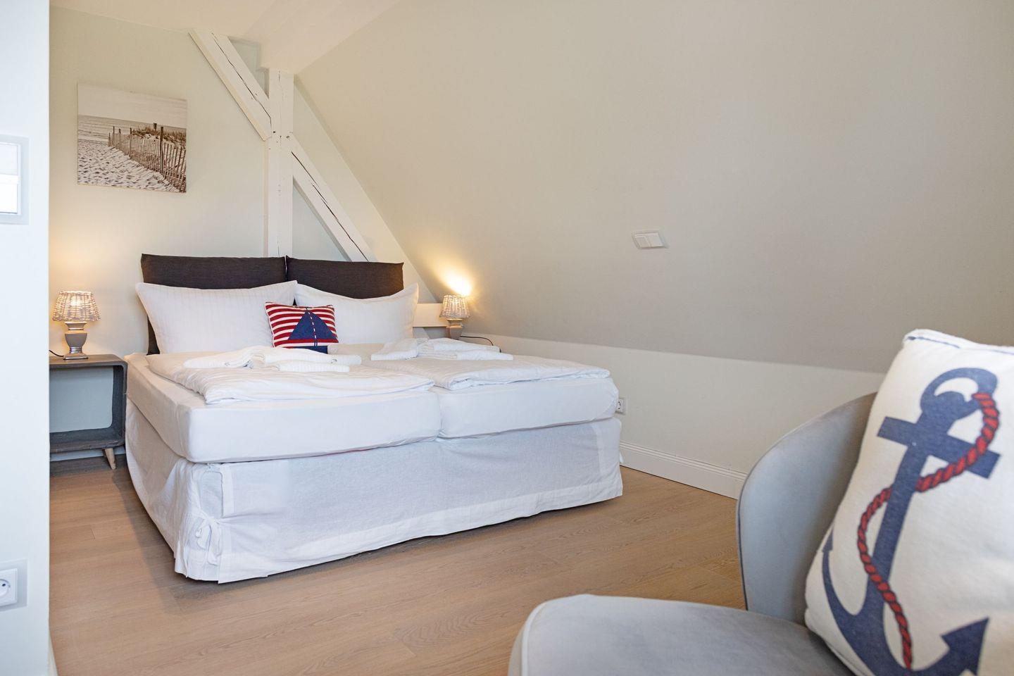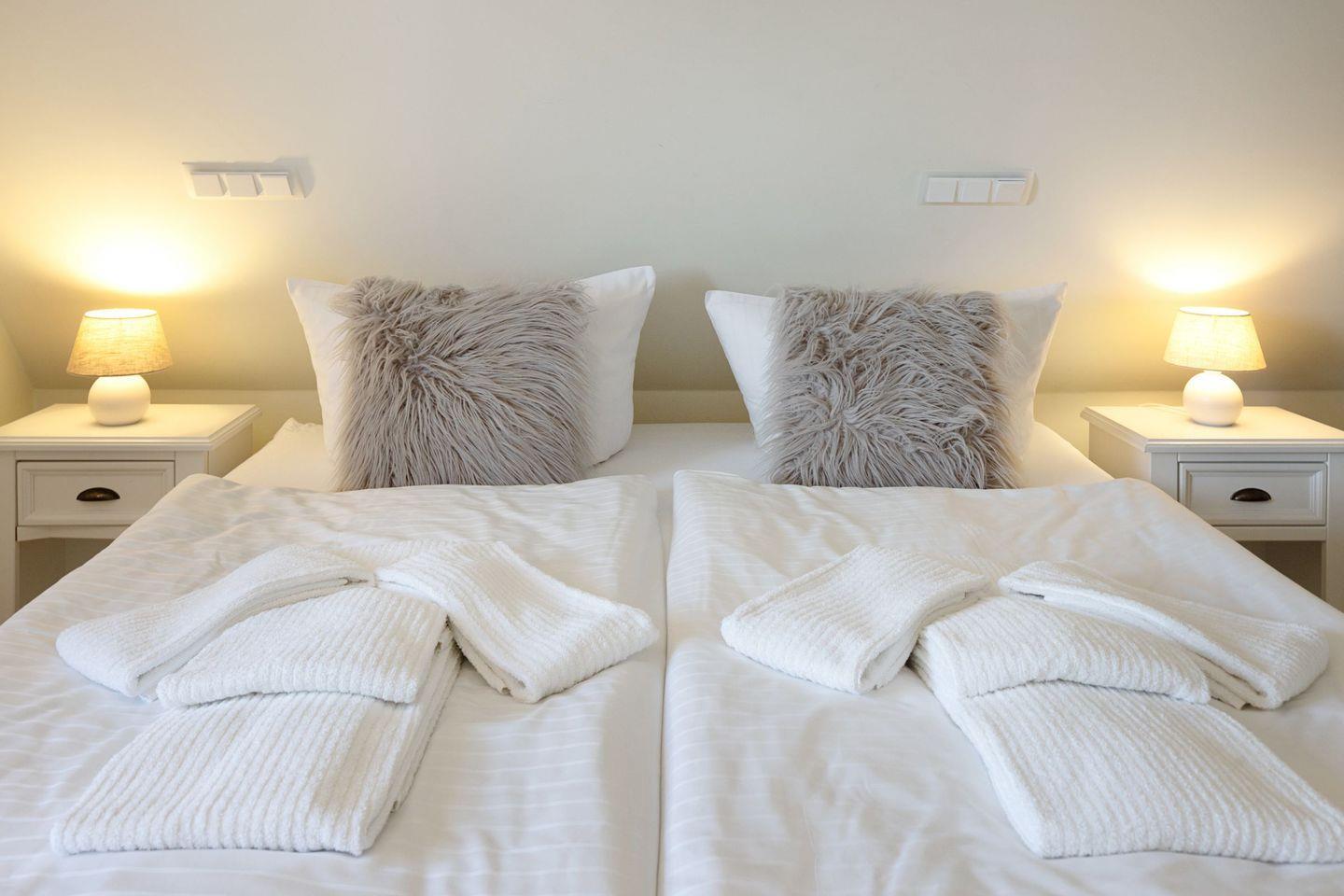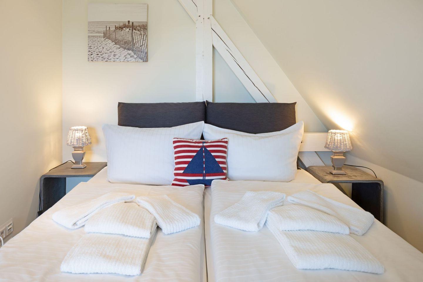 Ihr Modernes Feriendomizil (120 m²) verfügt im 1. Stock über zwei Schlafzimmer mit Doppelbett.