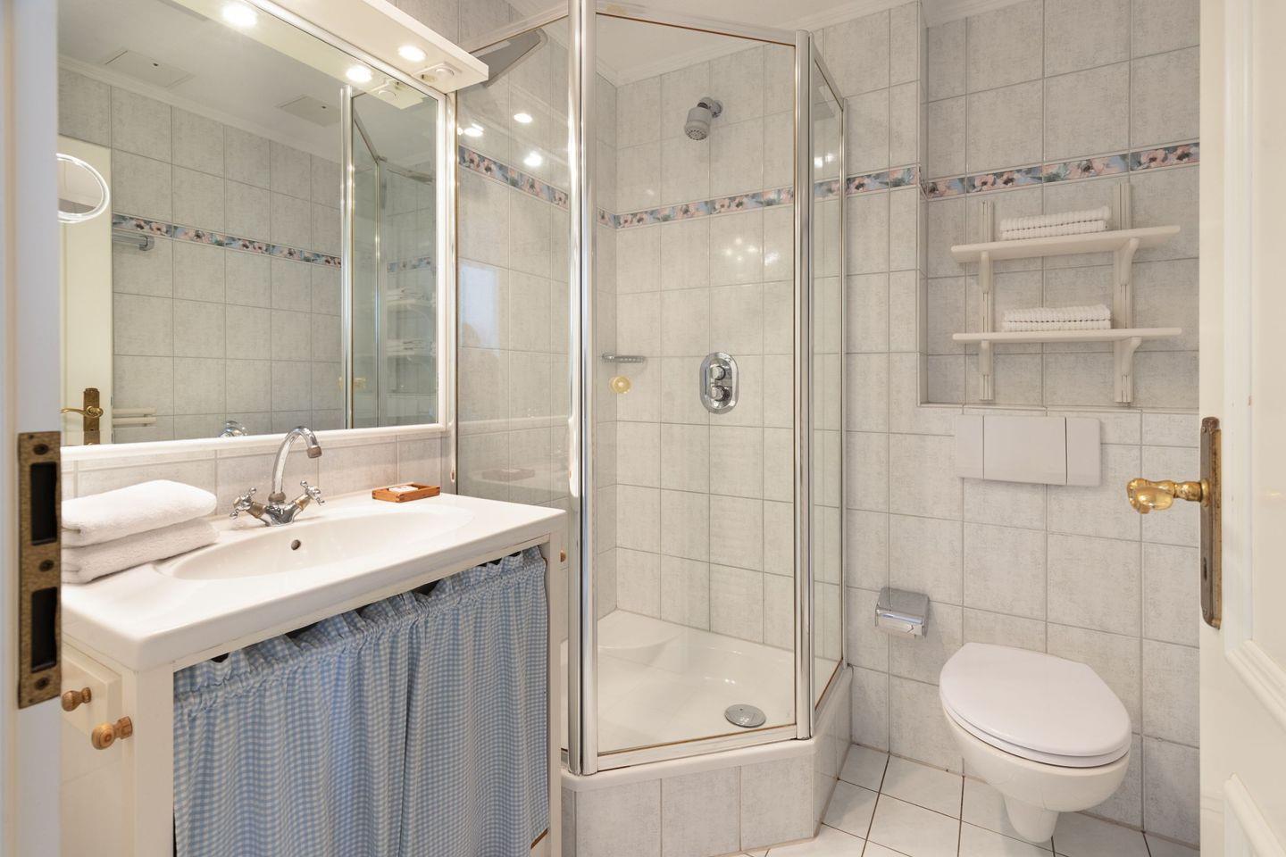 Das Schlafzimmer ist mit einem komfortablen Doppelbett ausgestattet. Das Badezimmer bietet eine Dusche, ein Waschbecken, ein WC sowie frische Handtücher und einen Haartrockner. Internetzugang über WLAN steht selbstverständlich zur Verfügung.