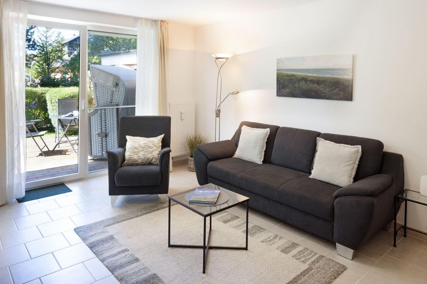 Strandkorb und Gartenmöbeln stehen Ihnen saisonal zur Verfügung.