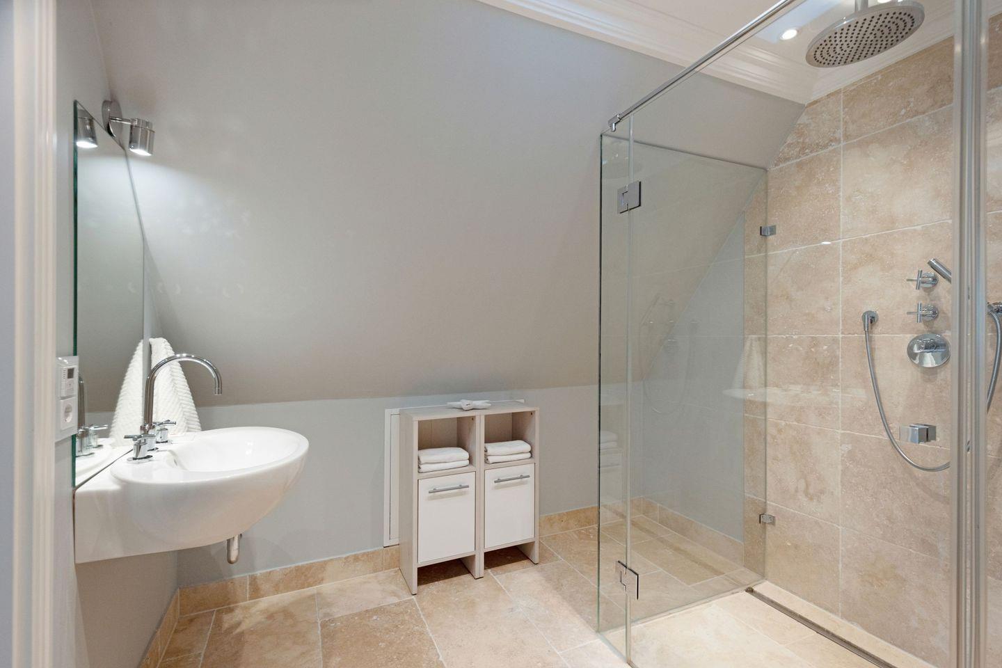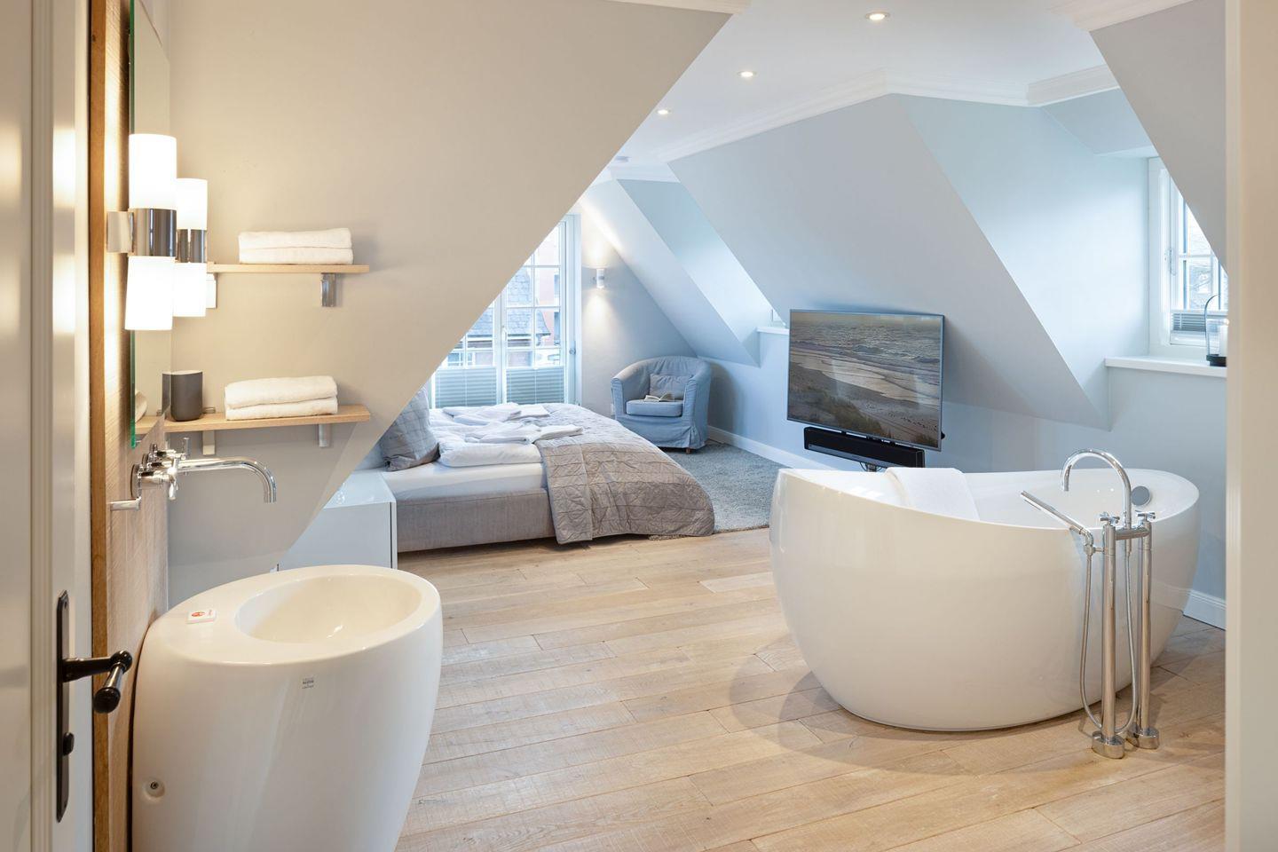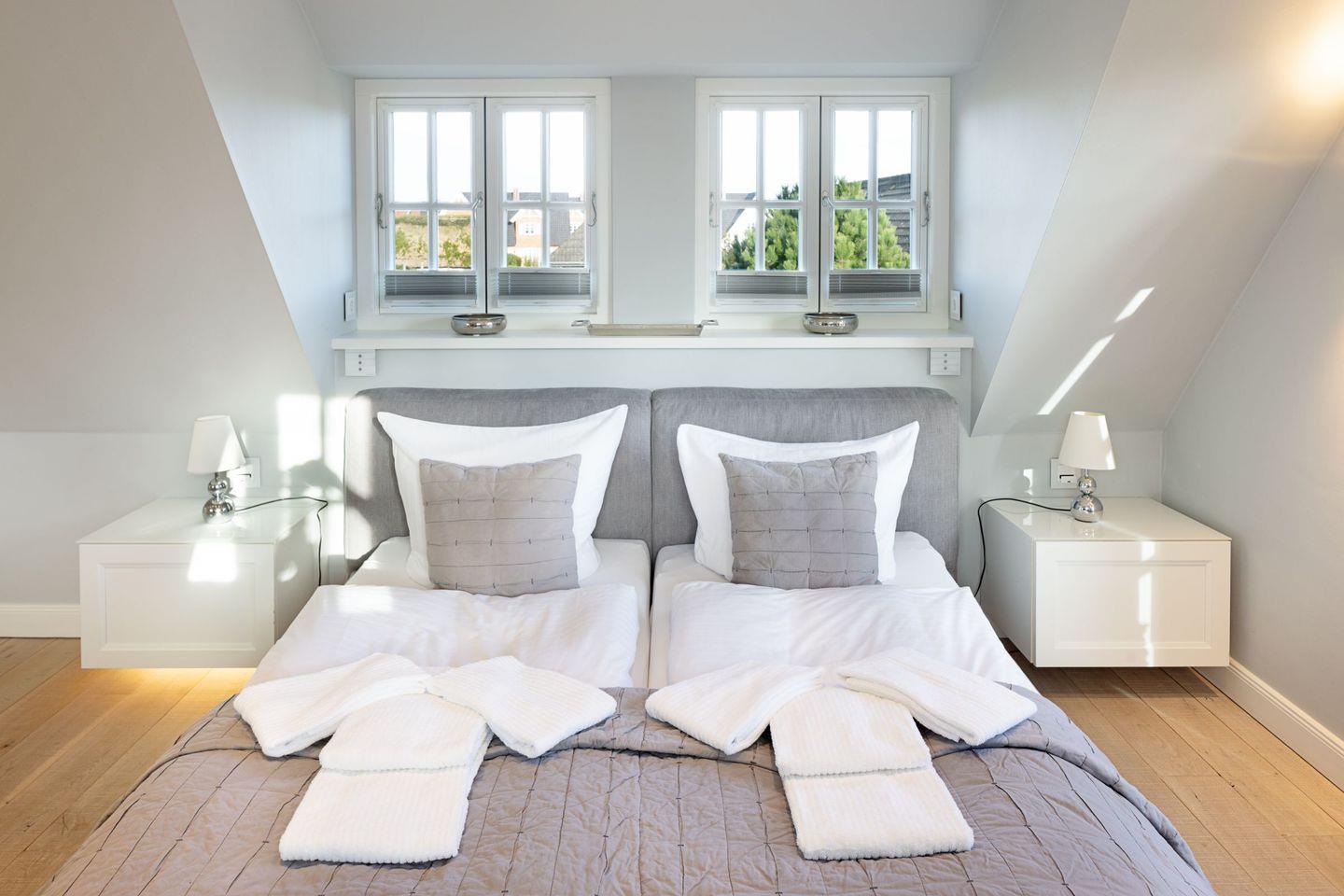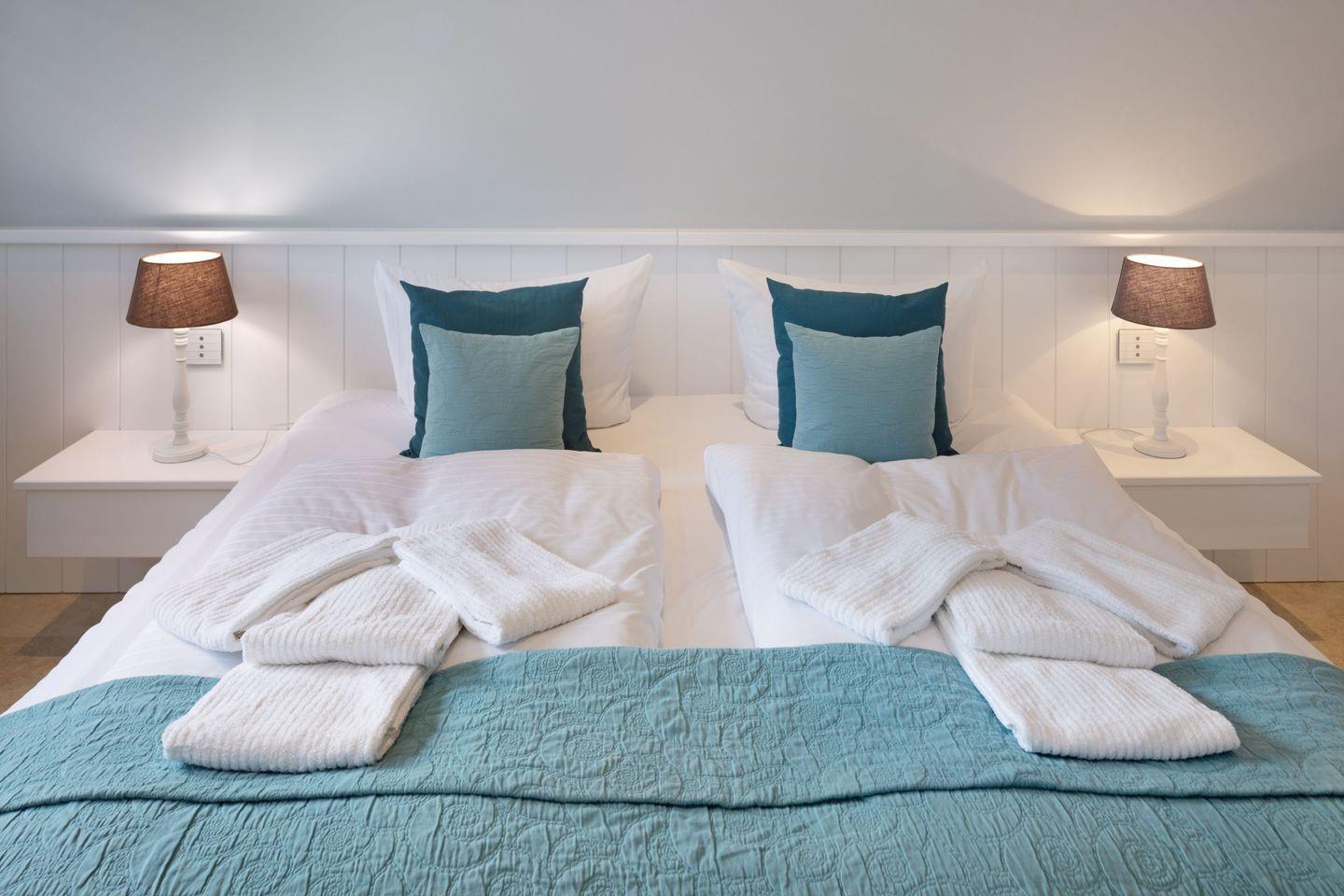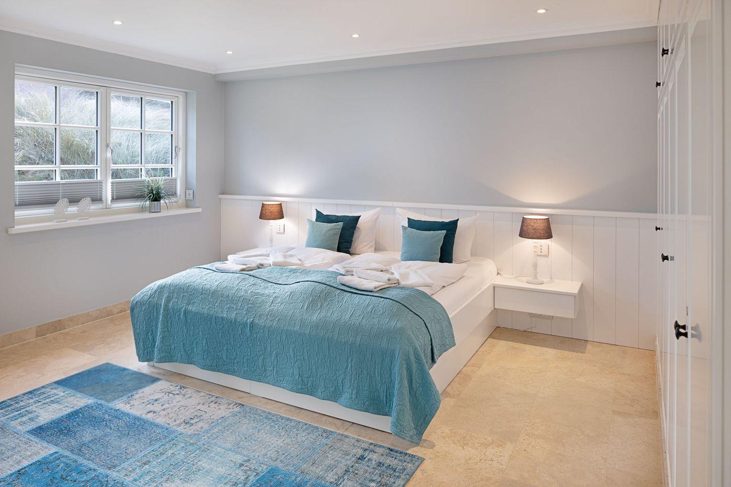 Die Syltresidenz ist mit vier gemütlichen Schlafzimmern ausgestattet, die Ihnen höchster Schlafkomfort bieten. Jedes Zimmer ist liebevoll eingerichtet und sorgt für eine entspannte Atmosphäre. Mit drei modernen Badezimmern und einem Gäste-WC müssen Sie sich nie um lange Wartezeiten kümmern – ideal für einen erholsamen Urlaub mit mehreren Personen. Das offene Wohnzimmer ist das Herzstück der Wohnung, ausgestattet mit einer komfortablen Sofaecke, einem modernen Kaminofen und einem Entertainment-Bereich mit insgesamt sechs Fernsehern und einer HiFi-Anlage, die für gemütliche Abende sorgen.