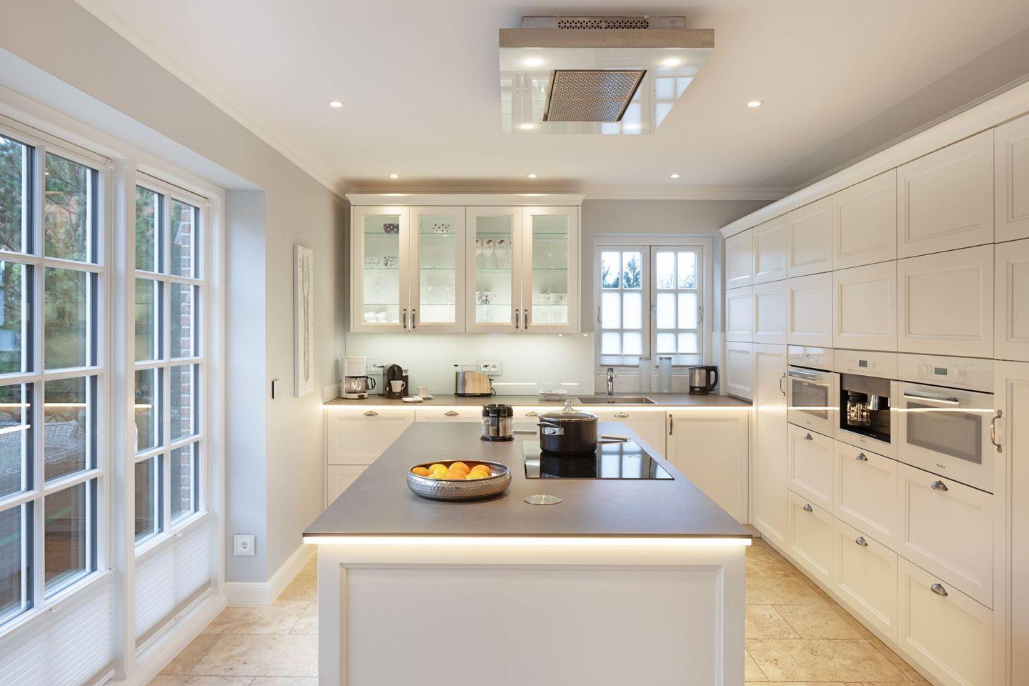 Die voll ausgestattete, offene Küche bietet alles, was Sie zum Zubereiten von köstlichen Mahlzeiten benötigen: vom Induktionsherd über einen Backofen bis hin zu einer Spülmaschine. Ein Espresso-Vollautomat sowie eine Mikrowelle stehen Ihnen ebenfalls zur Verfügung. So wird das Kochen zum Genuss, den Sie an einem großen Esstisch gemeinsam auskosten können.