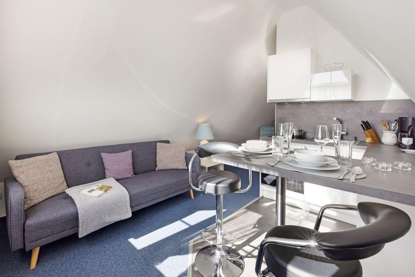 Das Appartement im 2. Obergeschoss bietet auf 40m² ausreichend Platz für zwei Personen.