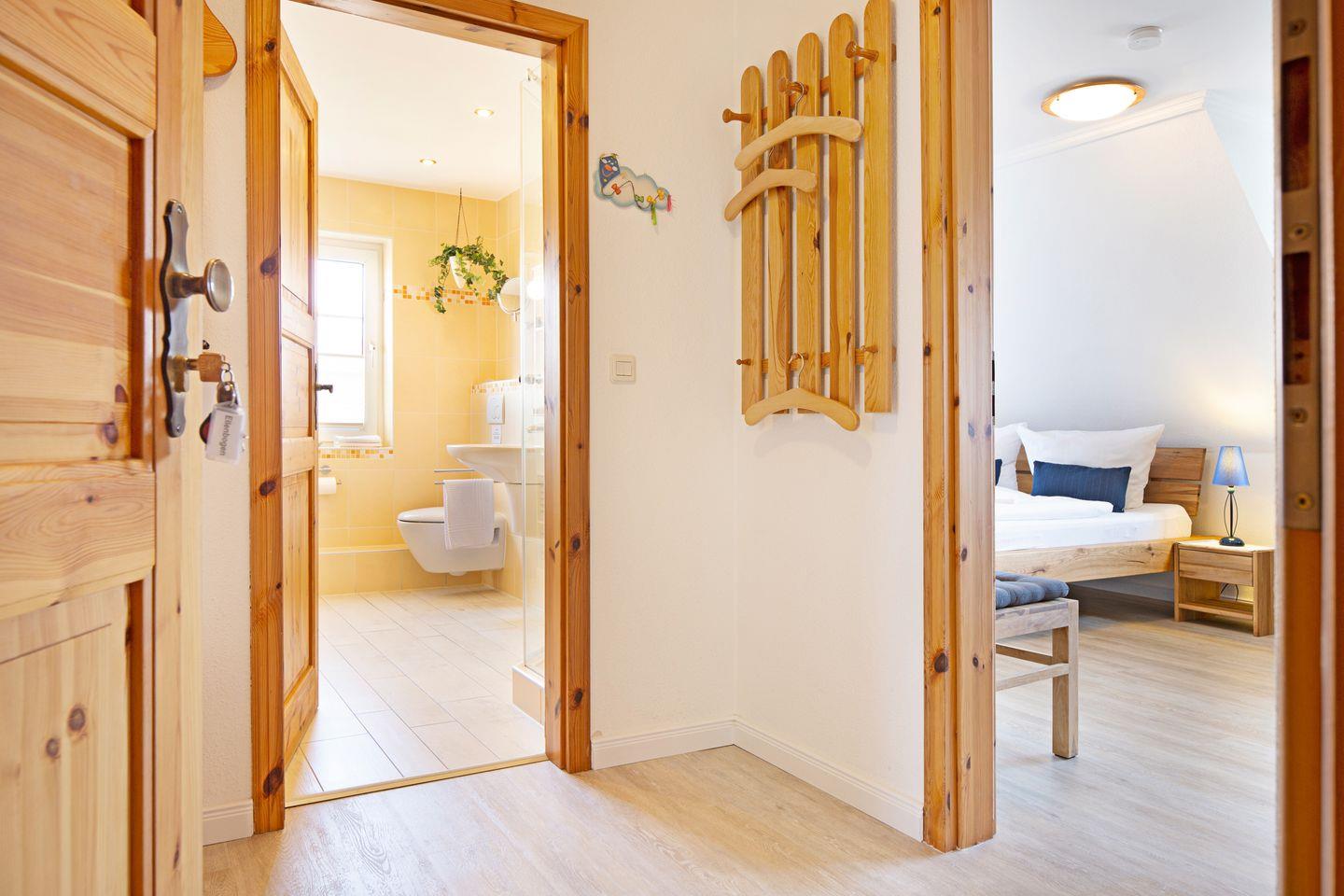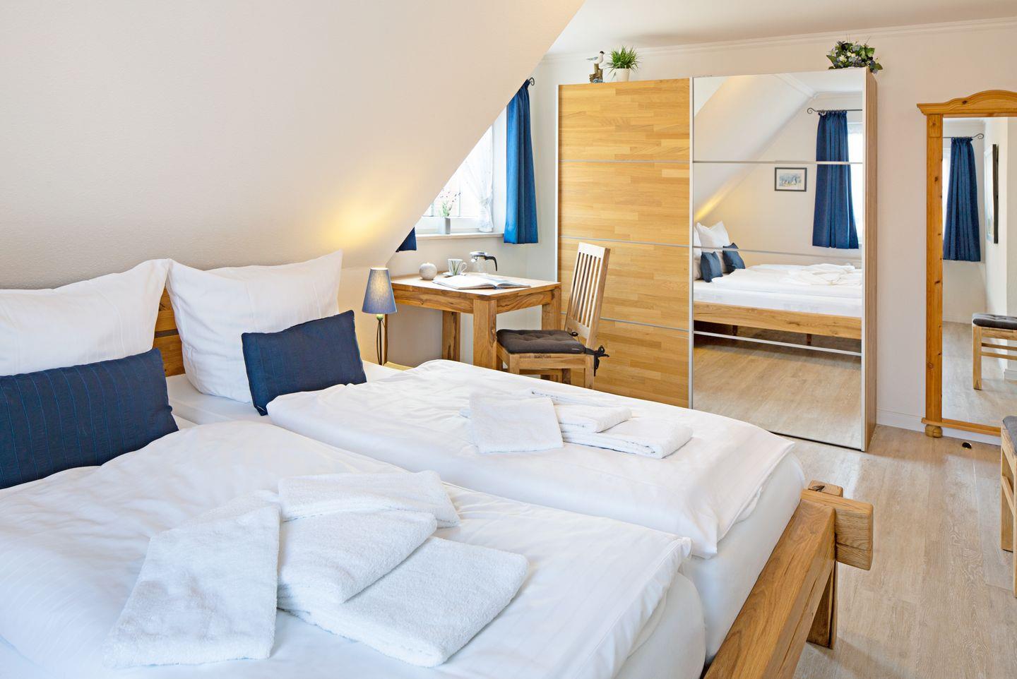 Umweltfreundliches Appartement für 2 Personen im Obergeschoss direkt am Naturschutzgebiet mit Terrasse und Strandkorb.