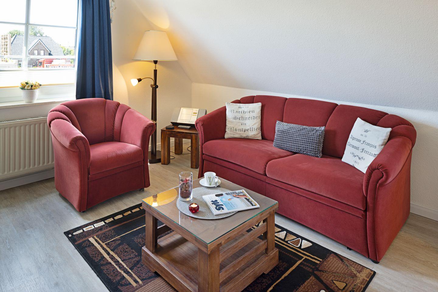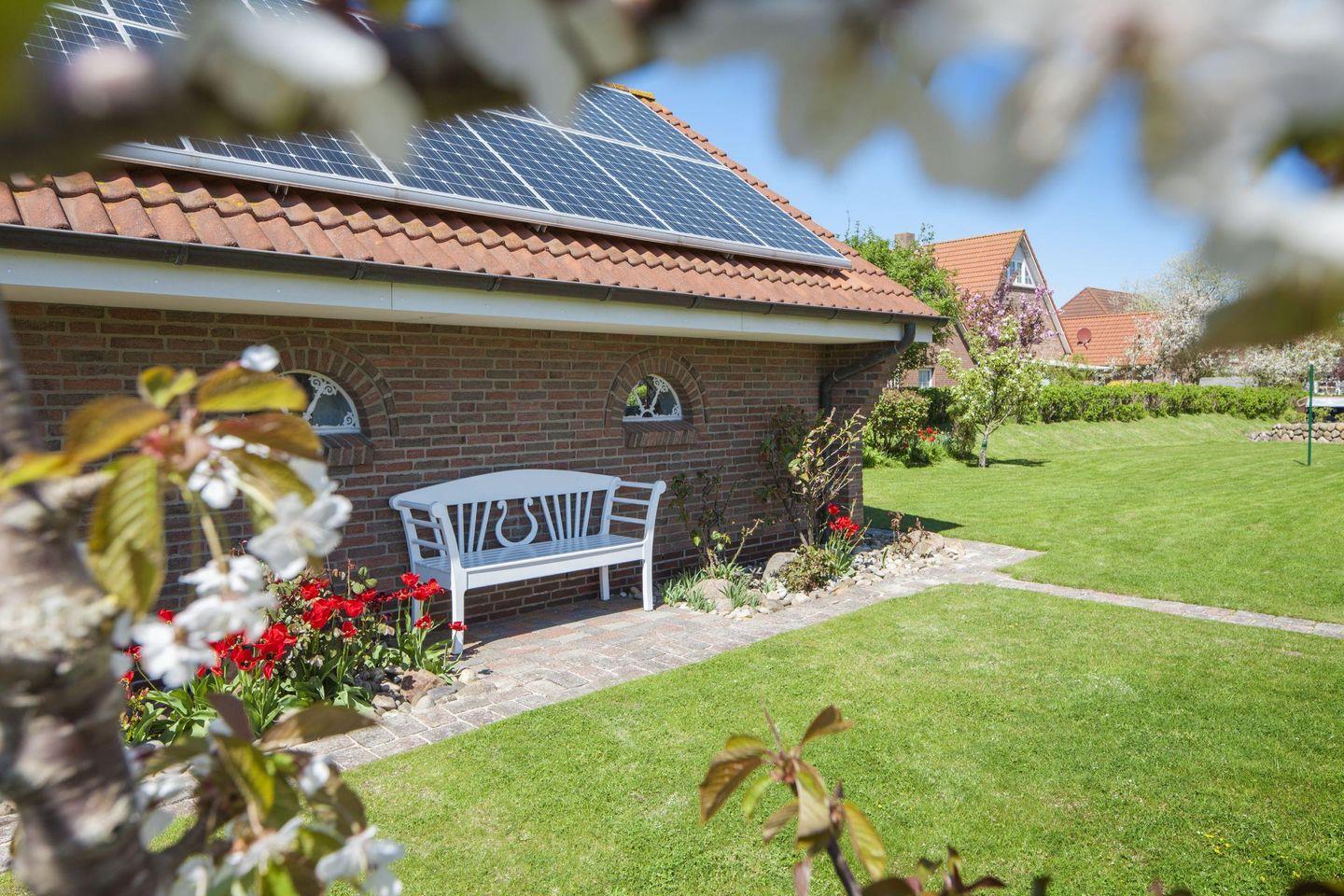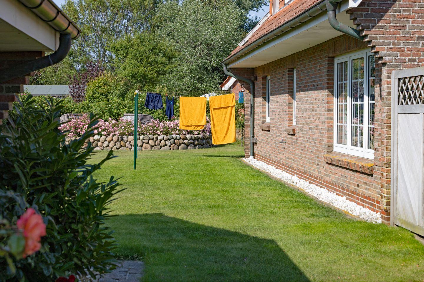 Gartenmöbel und Strandkörbe stehen Ihnen in einem windgeschützten, abgesenkten Gartenbereich, saisonal begrenzt zur Verfügung.