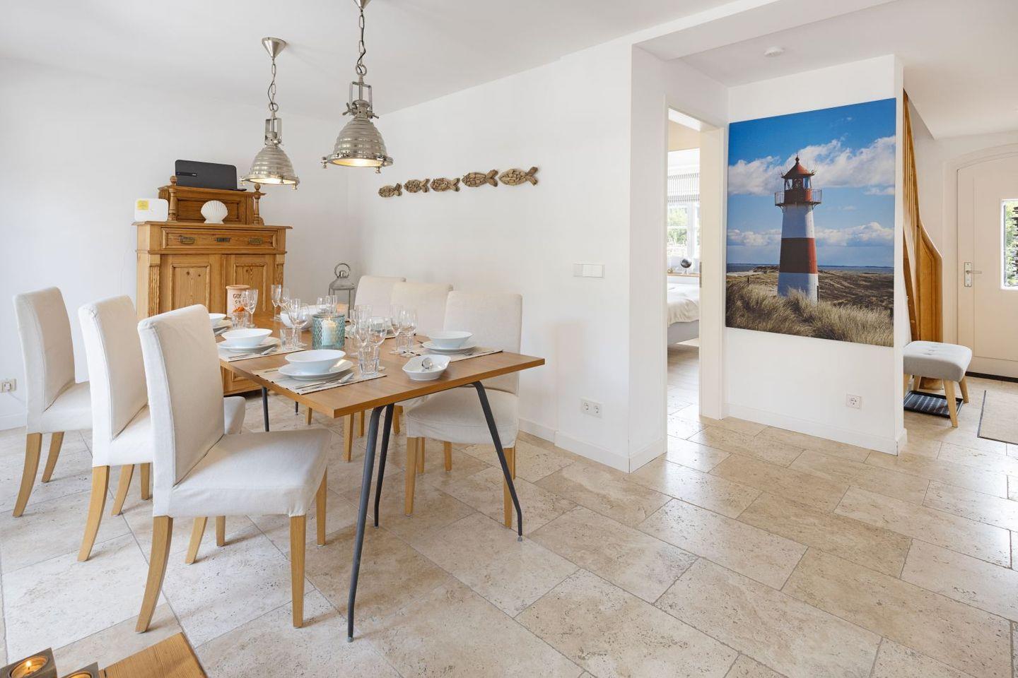 Das Erdgeschoss Ihres Feriendomizils besticht durch seine offene lichtdurchflutete Struktur, die sich bis auf die große Terrasse fortsetzt.