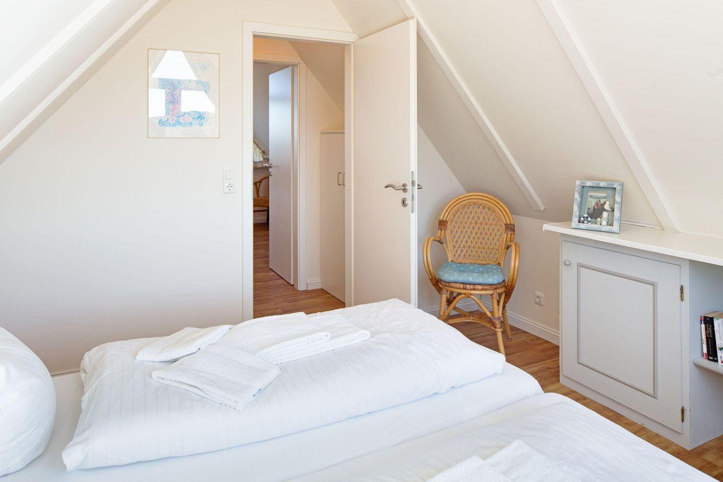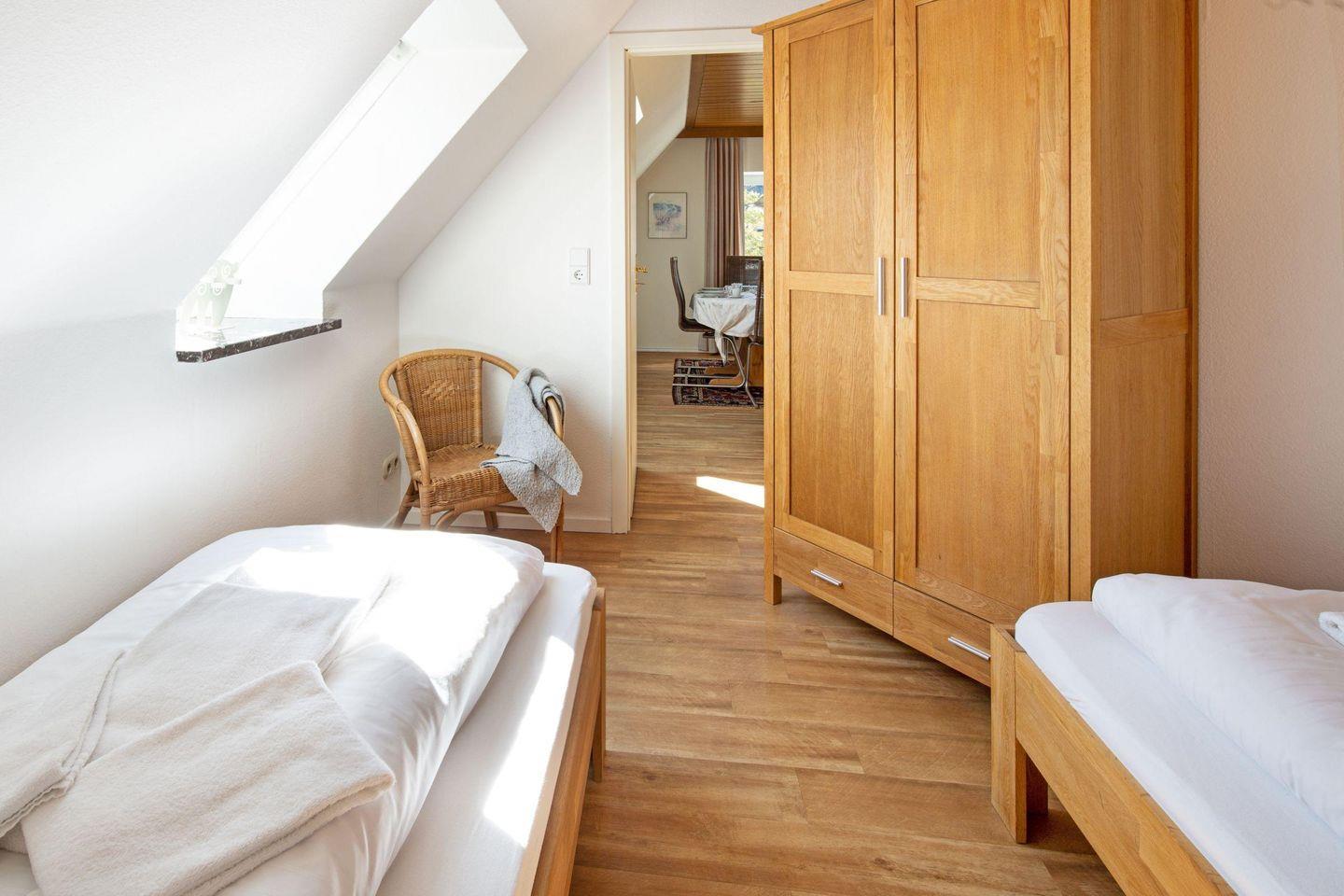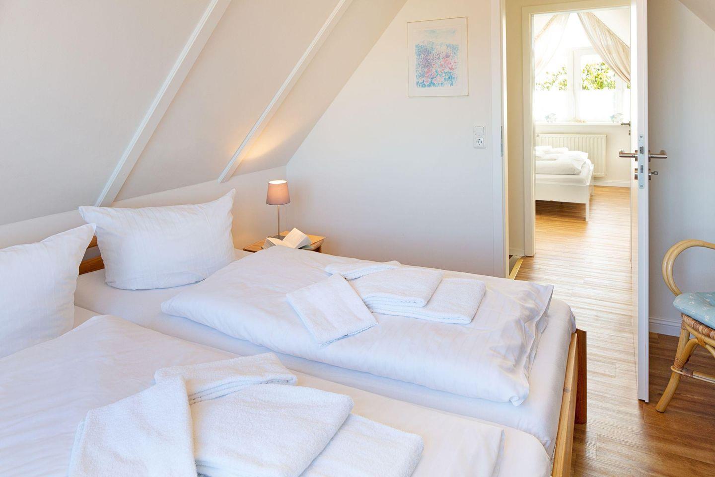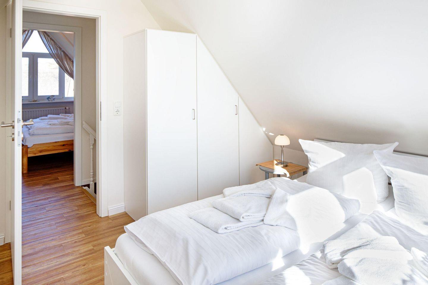 Im 2. Obergeschoss befinden sich zwei weitere Schlafzimmer mit Doppelbetten und je einem Fernseher.