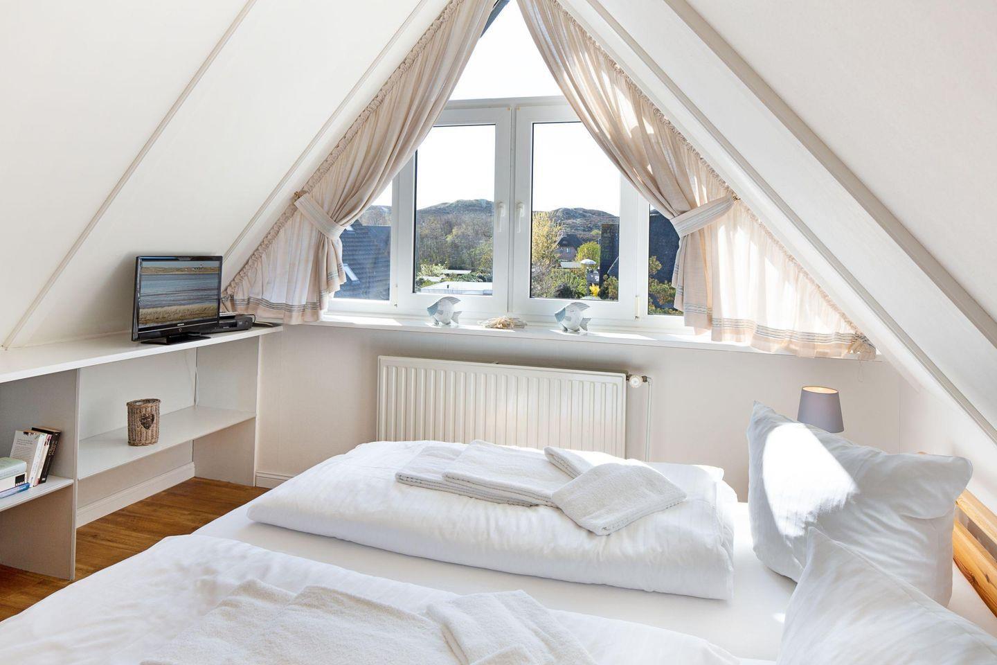 Das 102m² große Ferienappartement für bis zu sechs Personen erstreckt sich über zwei Ebenen mit Blick in die Lister Dünen und über das Wattenmeer bis hin nach Dänemark.