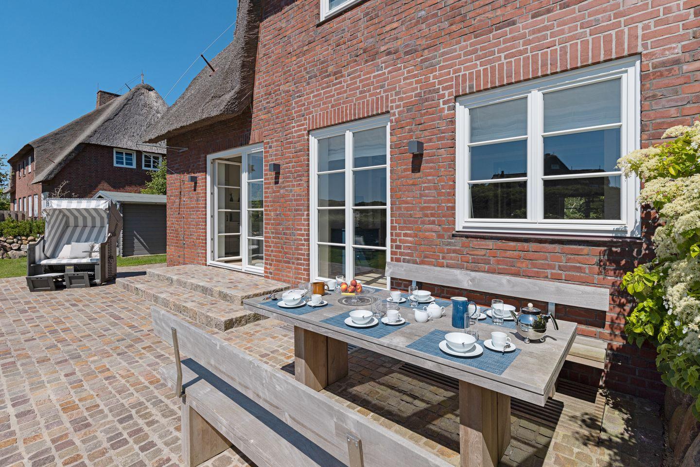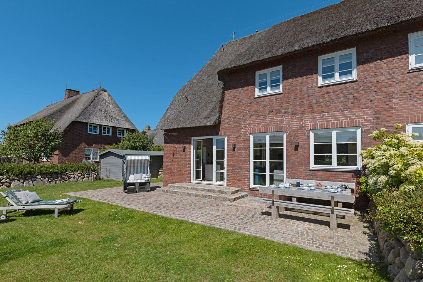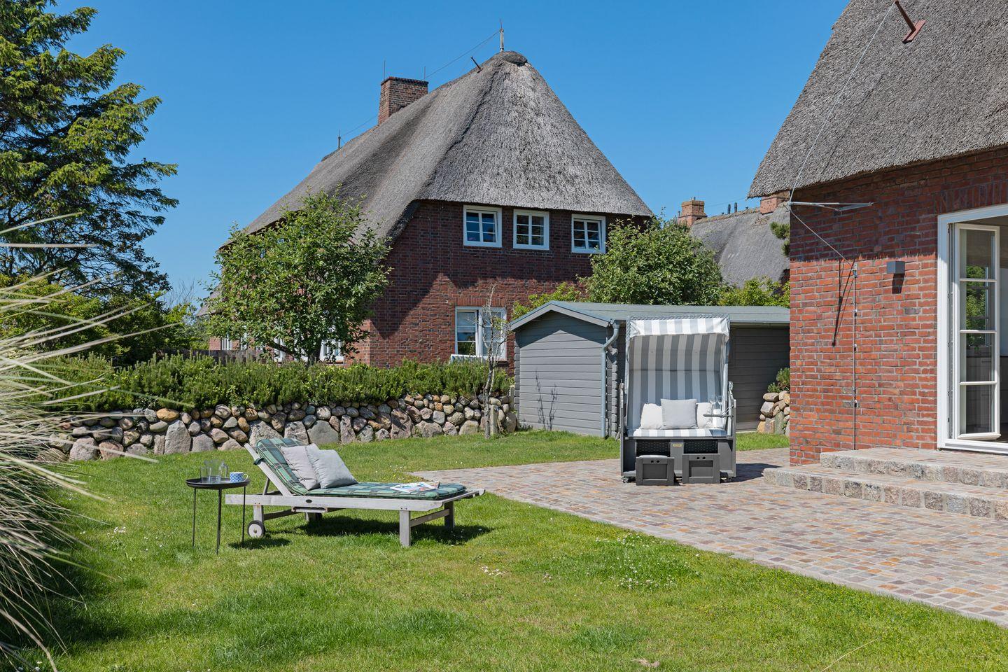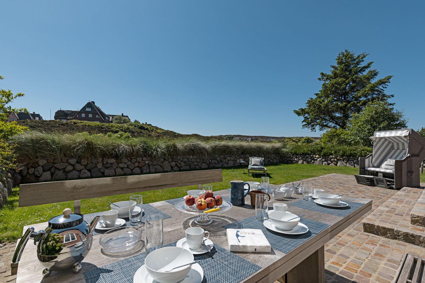 Die Gartenmöbel und ein Strandkorb stehen Ihnen saisonal begrenzt zur Verfügung.
