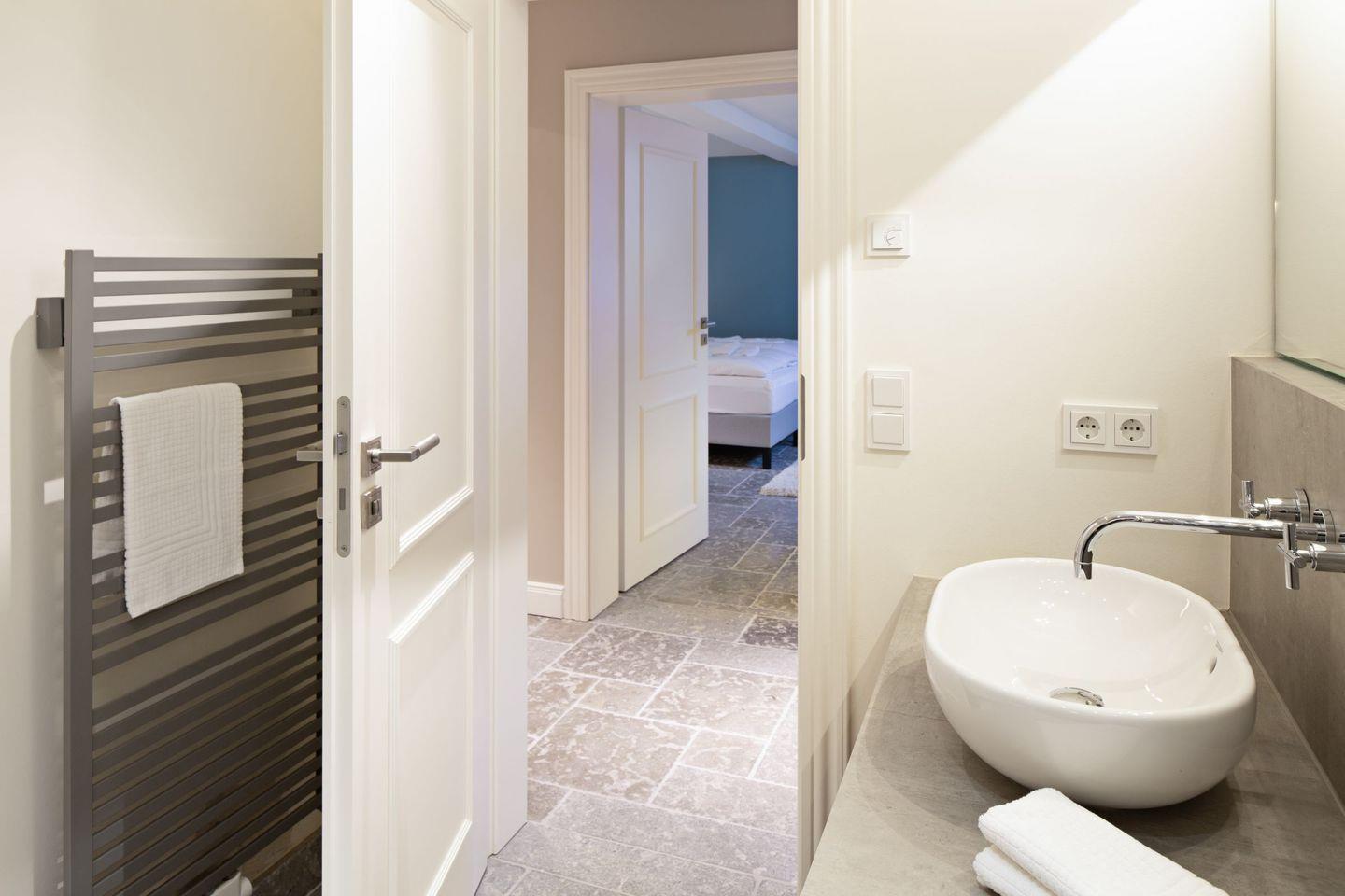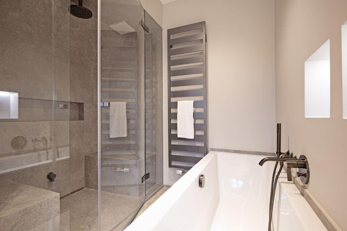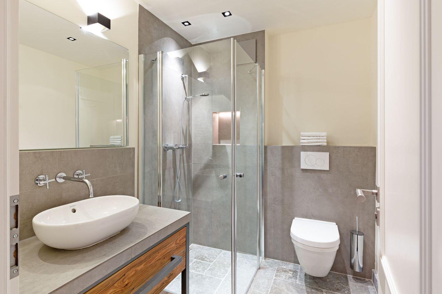 Eins der Bäder ist mit einer Dampfsauna ausgestattet.