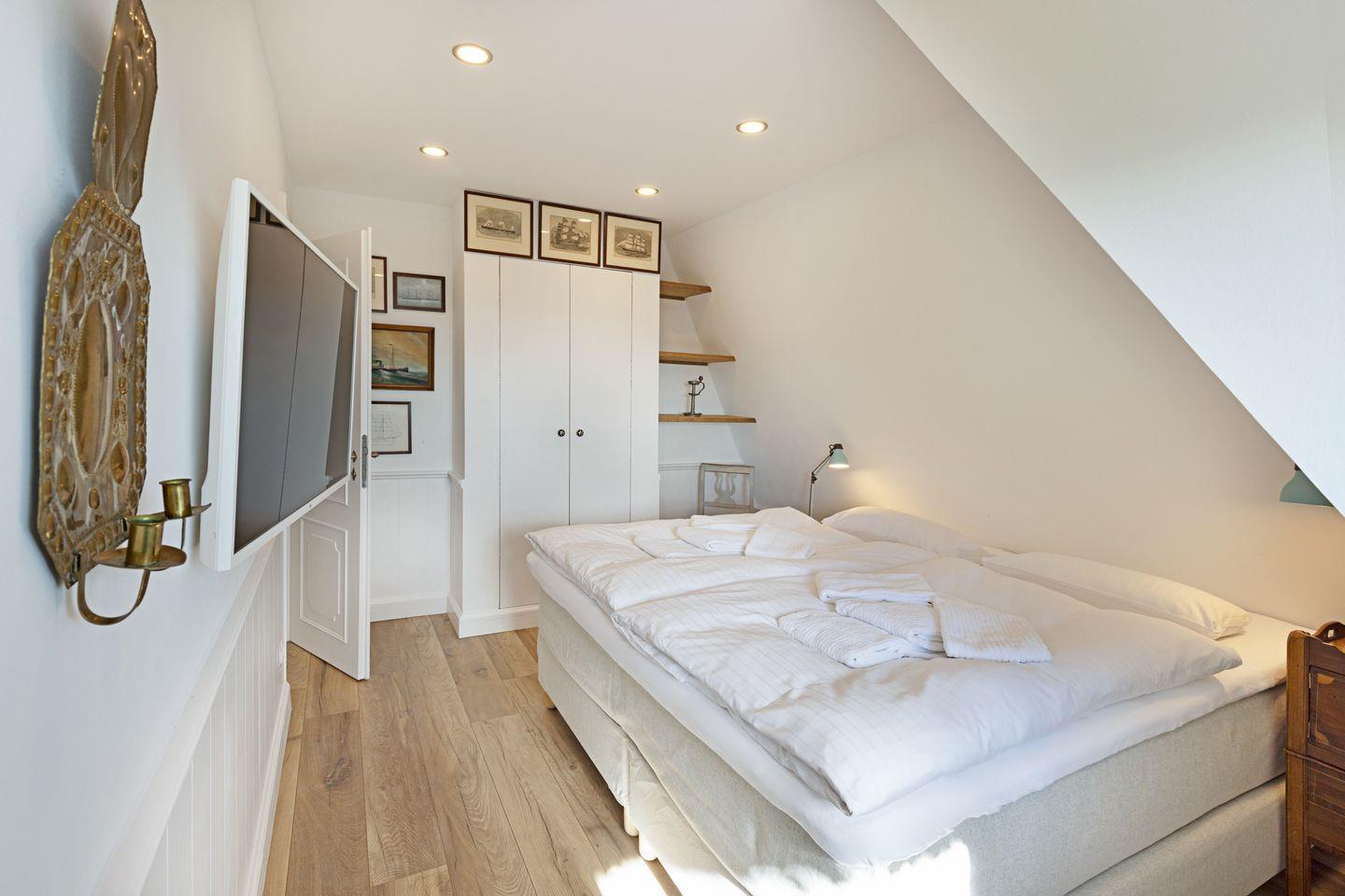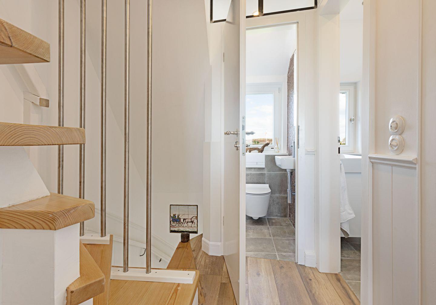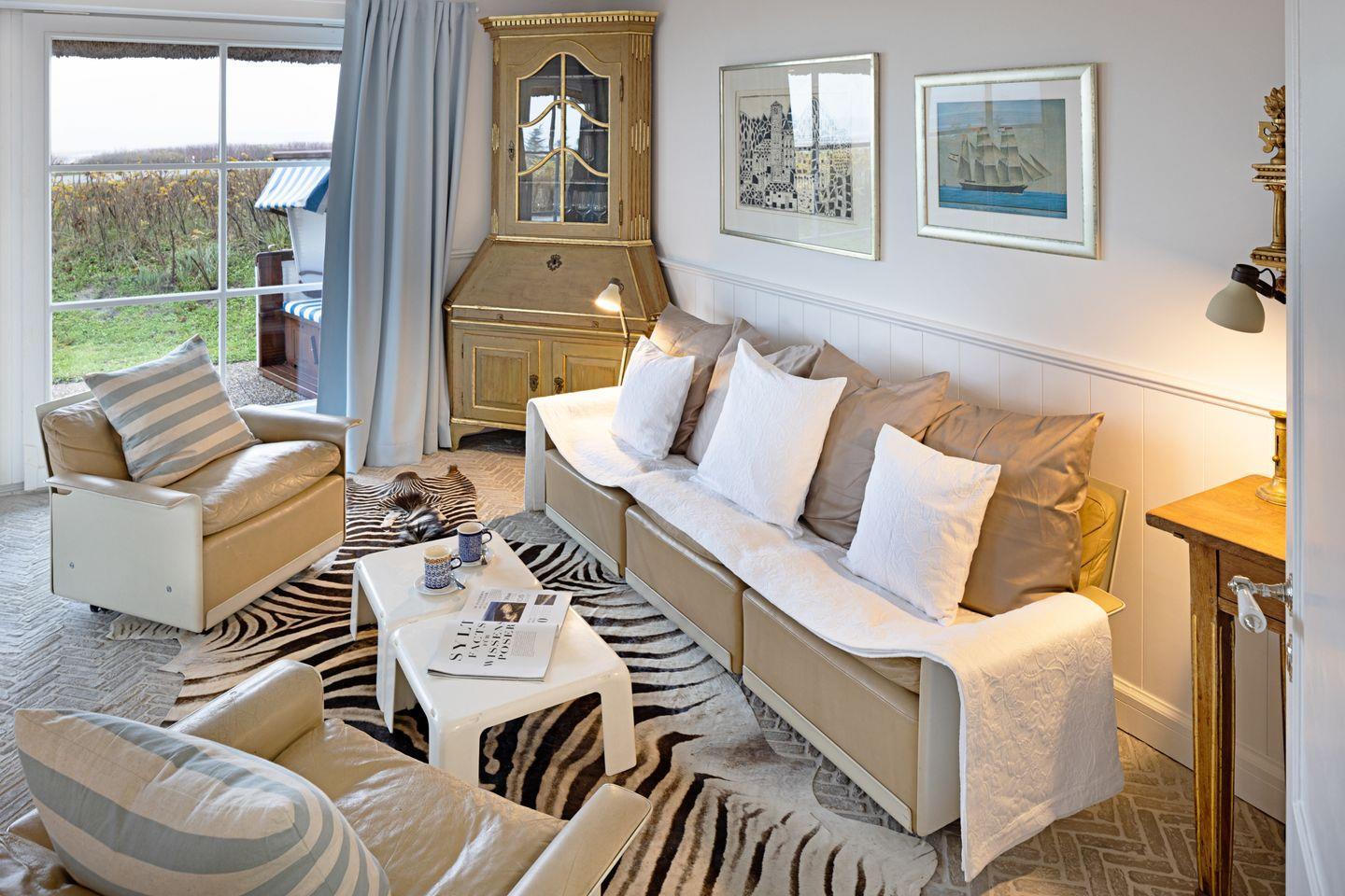 Die sehr persönlich gestaltete Einrichtung verbindet das traditionelle Sylt mit individuellem Vintage-Stil. In der ersten Etage befinden sich zwei Schlafzimmer.