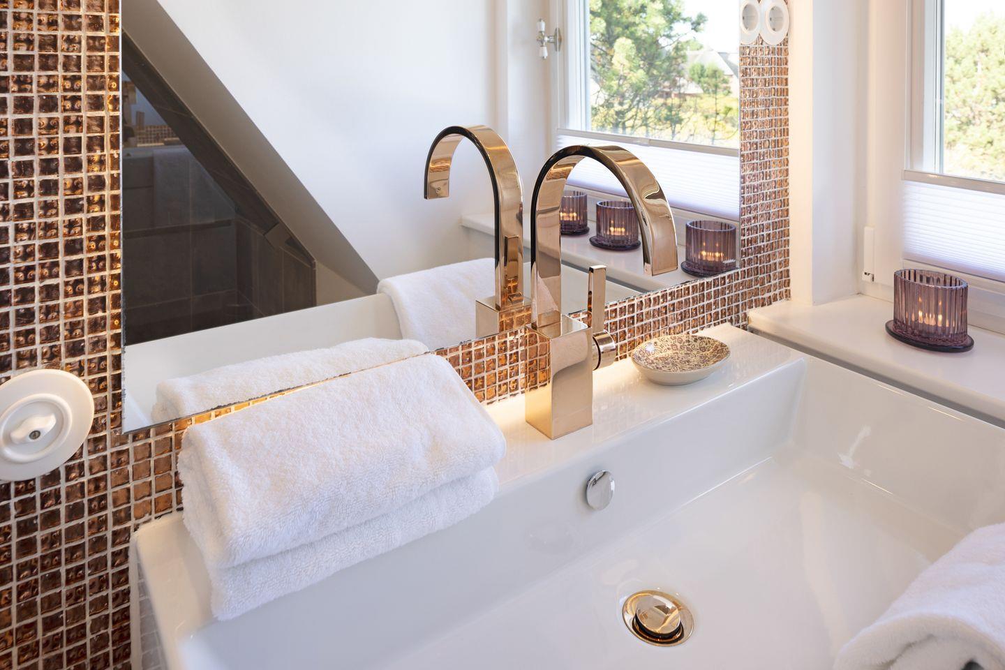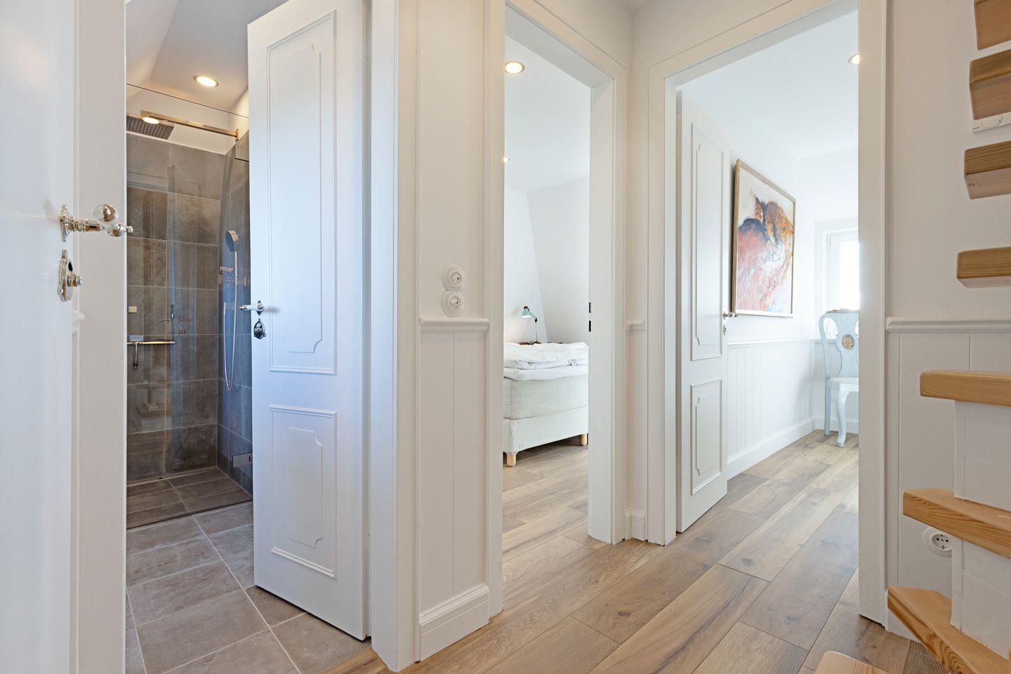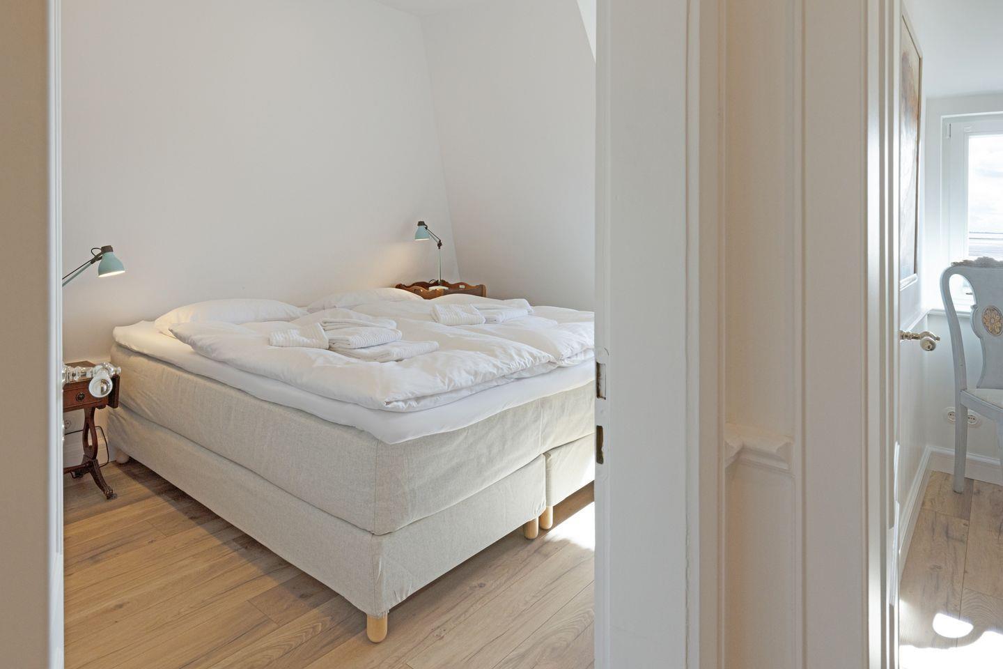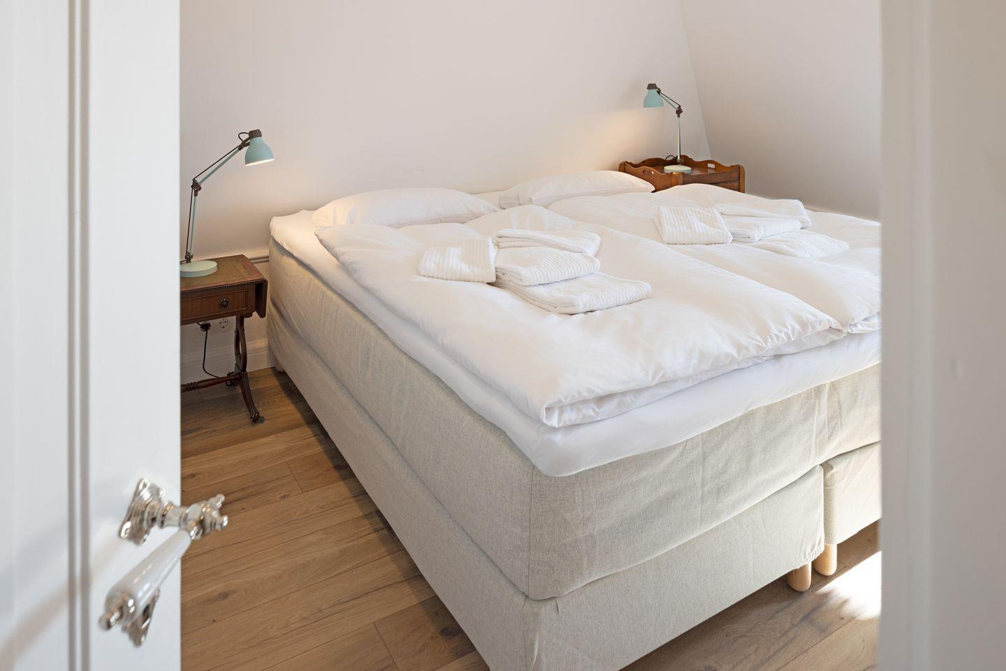 Die sehr persönlich gestaltete Einrichtung verbindet das traditionelle Sylt mit individuellem Vintage-Stil. In der ersten Etage befinden sich zwei Schlafzimmer.