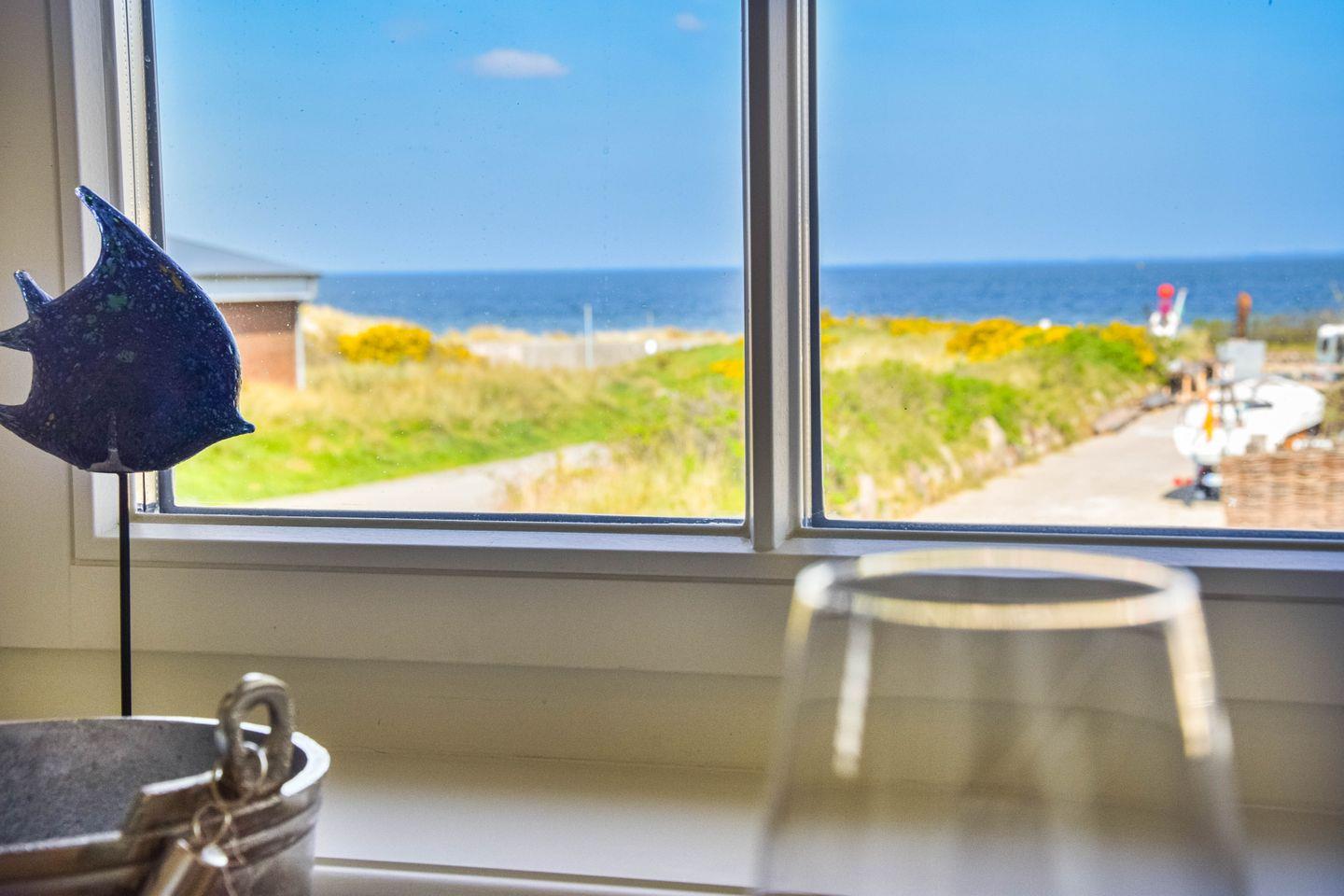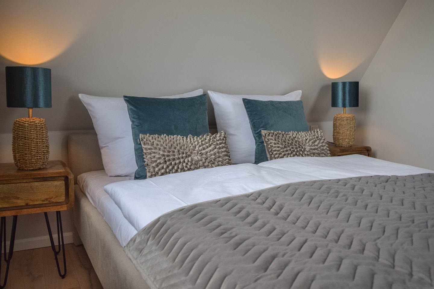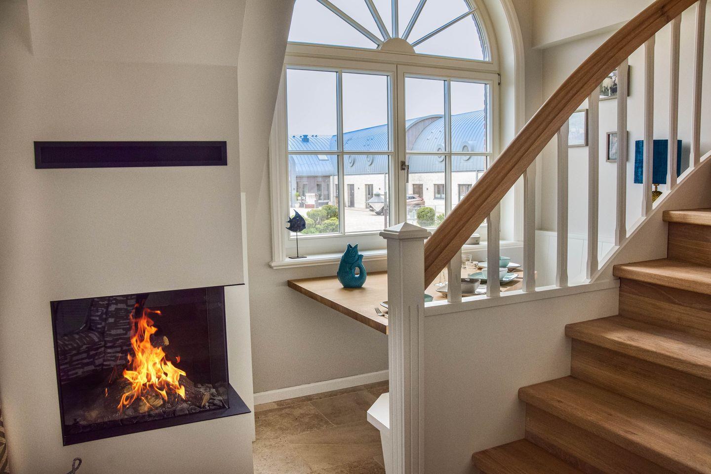 Diese exklusive Maisonette-Ferienwohnung für vier Personen ist nur einen Steinwurf vom Strand des Lister Beckens entfernt: Mit zwei Schlafzimmern und zwei Bädern bietet sie den idealen Rahmen für Ihren rundum relaxten Familienurlaub. Natürlich gibt es schnelles WLAN und TV in jedem Raum, aber – wetten? – die meiste Zeit werden Sie fasziniert nach draußen blicken. Das große Panoramafenster im Kapitänsgiebel legt Ihnen die See vor List zu Füßen. Selbst ins himmlisch bequeme Bett begleiten Sie das Meer und die Gezeiten; von einem der Schlafzimmer können Sie sogar aufs Ellenbogenbecken schauen. Und natürlich genießen Sie auch auf Ihrer privaten Sonnenloggia zum Soundtrack von Möwen und Wellenrauschen diese hinreißende Aussicht.