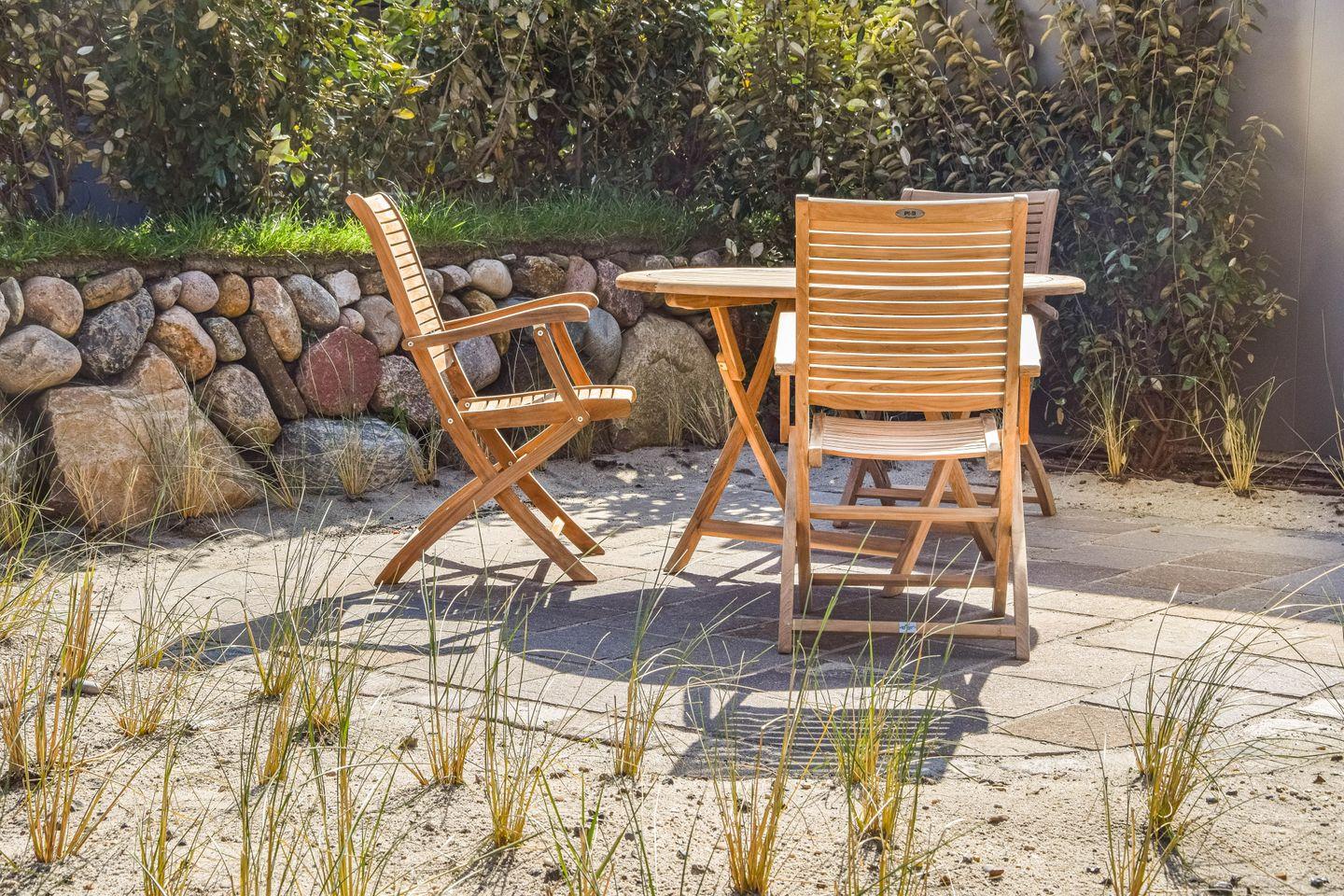 Wenn man sich schon nicht sattsehen kann – satt essen können Sie sich hier jederzeit, denn trotz der ruhigen Lage sind die leckeren Lister Gastro-Spots nur einen Spaziergang entfernt, ebenso wie die hübschen Boutiquen und gut sortierten Supermärkte des nördlichsten Inseldorfs. Als Kontrast zum lebendigen Treiben lockt das nahgelegene Naturschutzgebiet des Ellenbogens zu Wanderungen entlang Nordsee und Watt. Und wenn Sie Ihrem Urlaubstag das perfekte Finale geben wollen, gönnen Sie sich eine Wellness-Session in der Fasssauna im Garten, kuscheln sich zum Abkühlen auf Ihre Terrasse – und lassen den Abend am behaglichen Gaskamin im Giebelzimmer ausklingen.