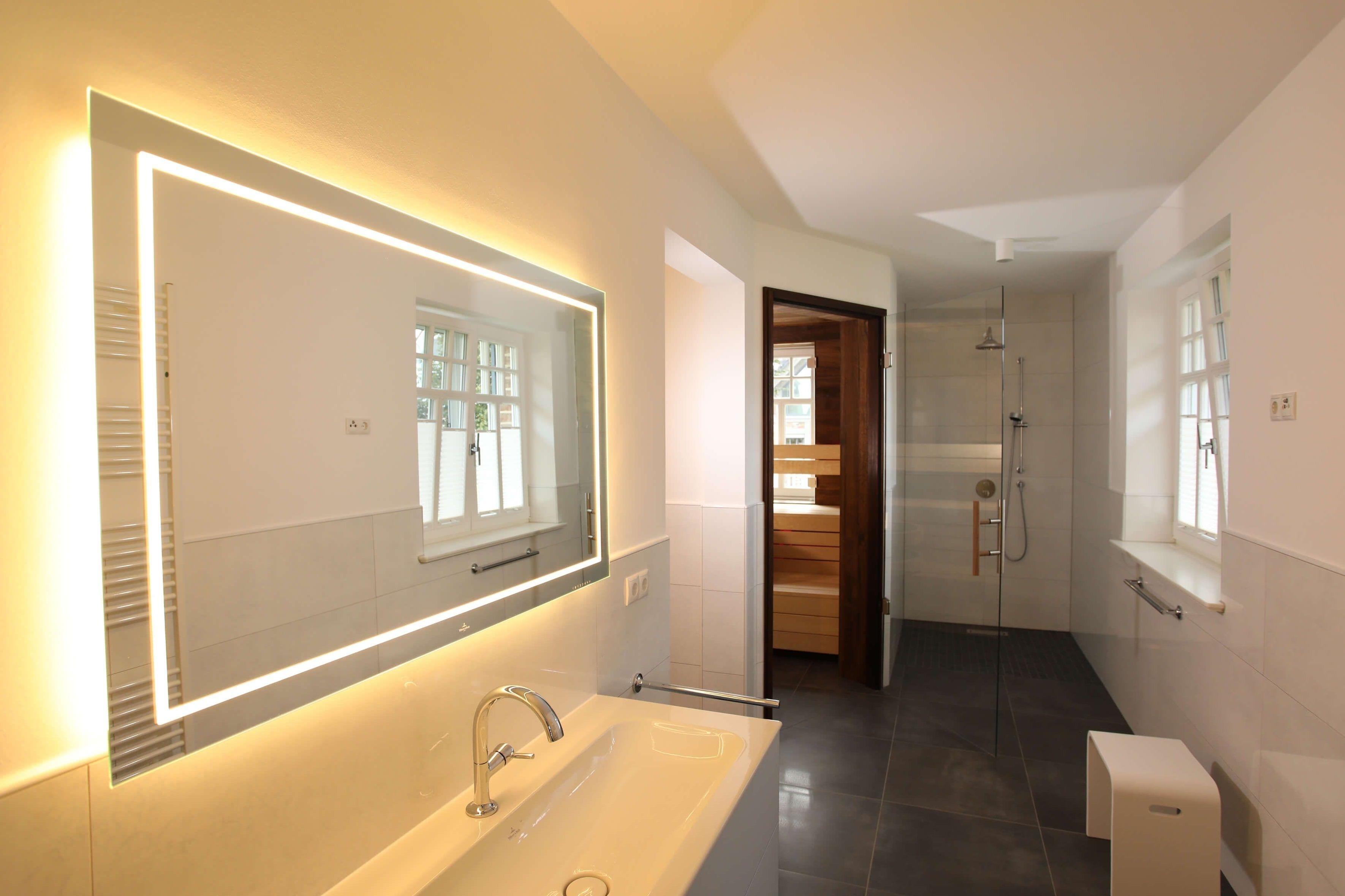 Im Erdgeschoss befindet sich auch Ihr eigener Saunabereich mit ebenerdiger Dusche und WC.