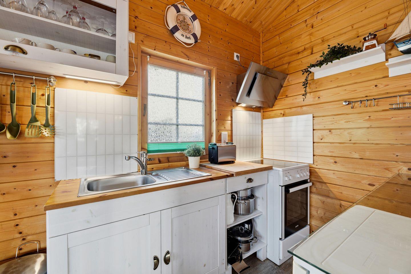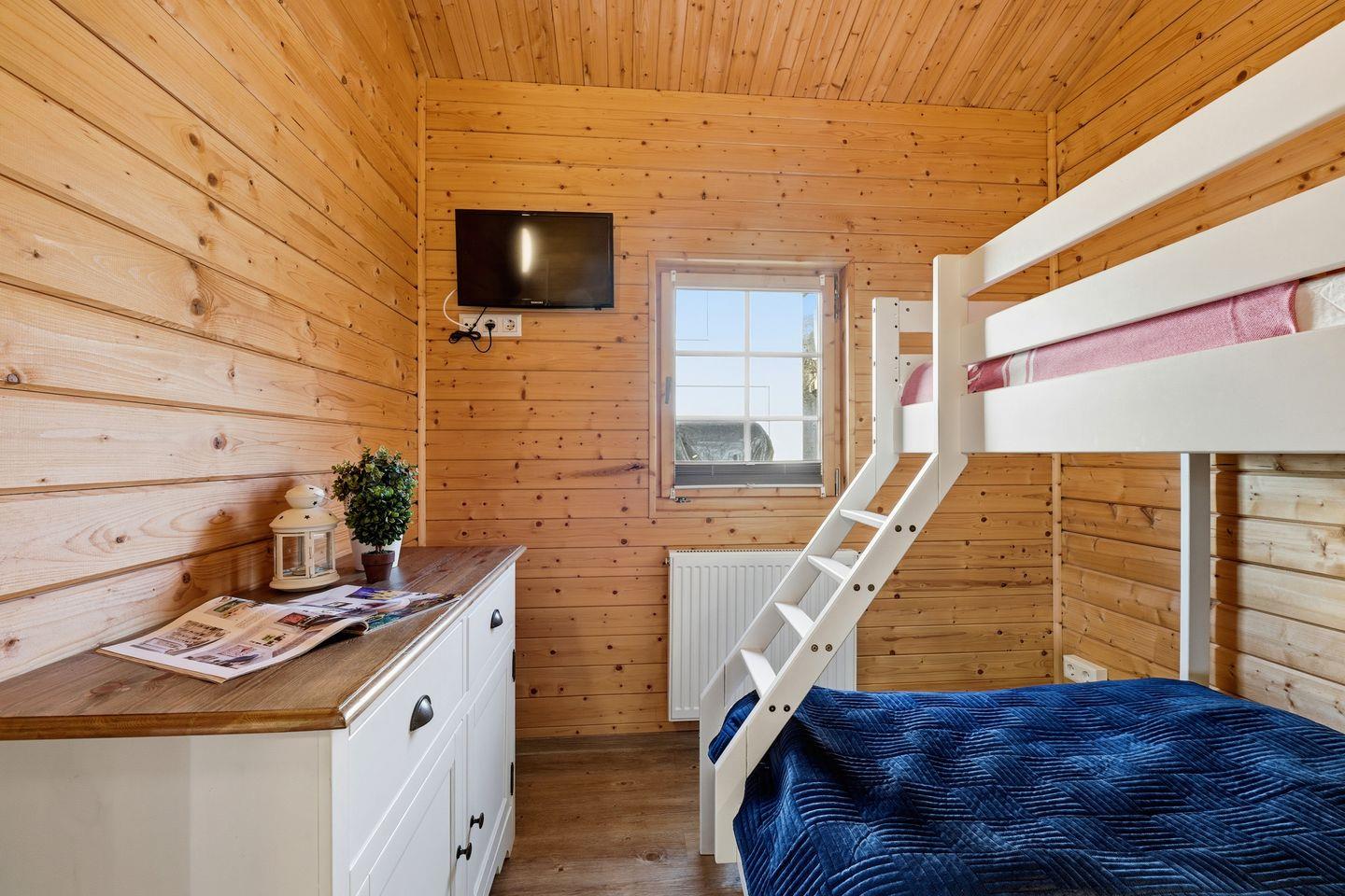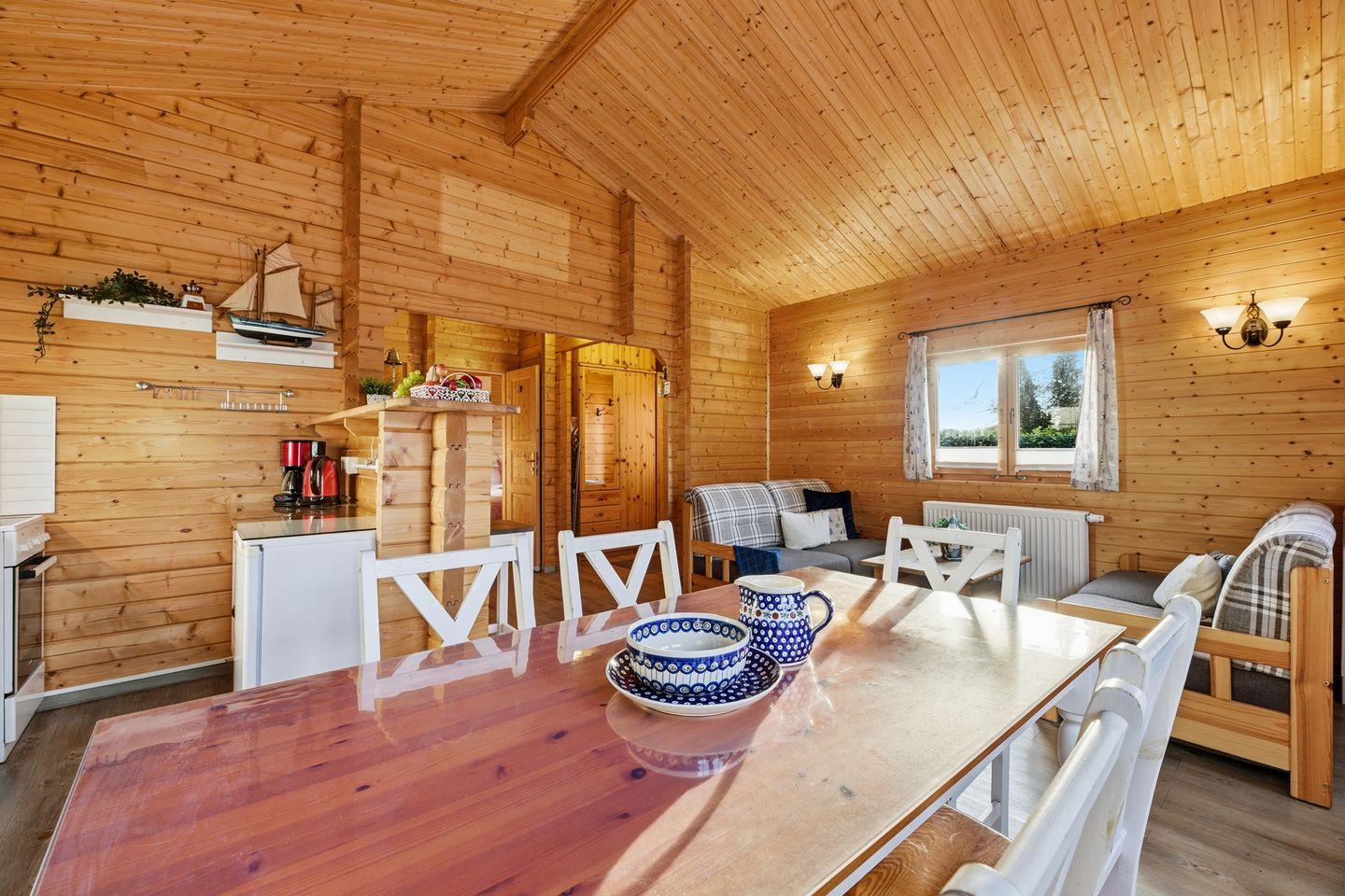 Genießen Sie den lichtdurchfluteten Wohn- und Essbereich mit einer gemütlichen Sitzgruppe, der Ihnen ein besonderes Urlaubsambiente bietet. Direkter Zugang zur Terrasse ermöglicht entspannte Momente im Freien. Die separate, modern und vollausgestattete Küche lässt keine Wünsche offen. Zwei vollwertige Schlafzimmer sorgen für erholsame Nächte: das erste mit komfortablem Doppelbett und das zweite mit einem Hochbett für drei Personen.