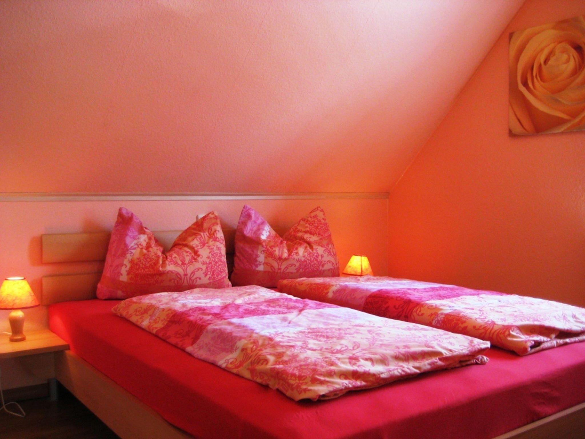 Unsere moderne Ferienwohnung liegt im Dachgeschoss eines im Jahre 2005 neu gebauten Hauses. Über einen separaten Aufgang erreichen Sie die 48 m² größe Wohnung mit einem Wohnraum mit Pantryküche, Essecke und Couchecke (Aufbettung für ein Kind bis 12 Jahre), Fernseher und Radio. Ein Schlafzimmer mit Doppelbett gehört ebenso zur Wohnung wie ein Bad mit Dusche und WC. Die Erstaustattung Bettwäsche ist inklusive.