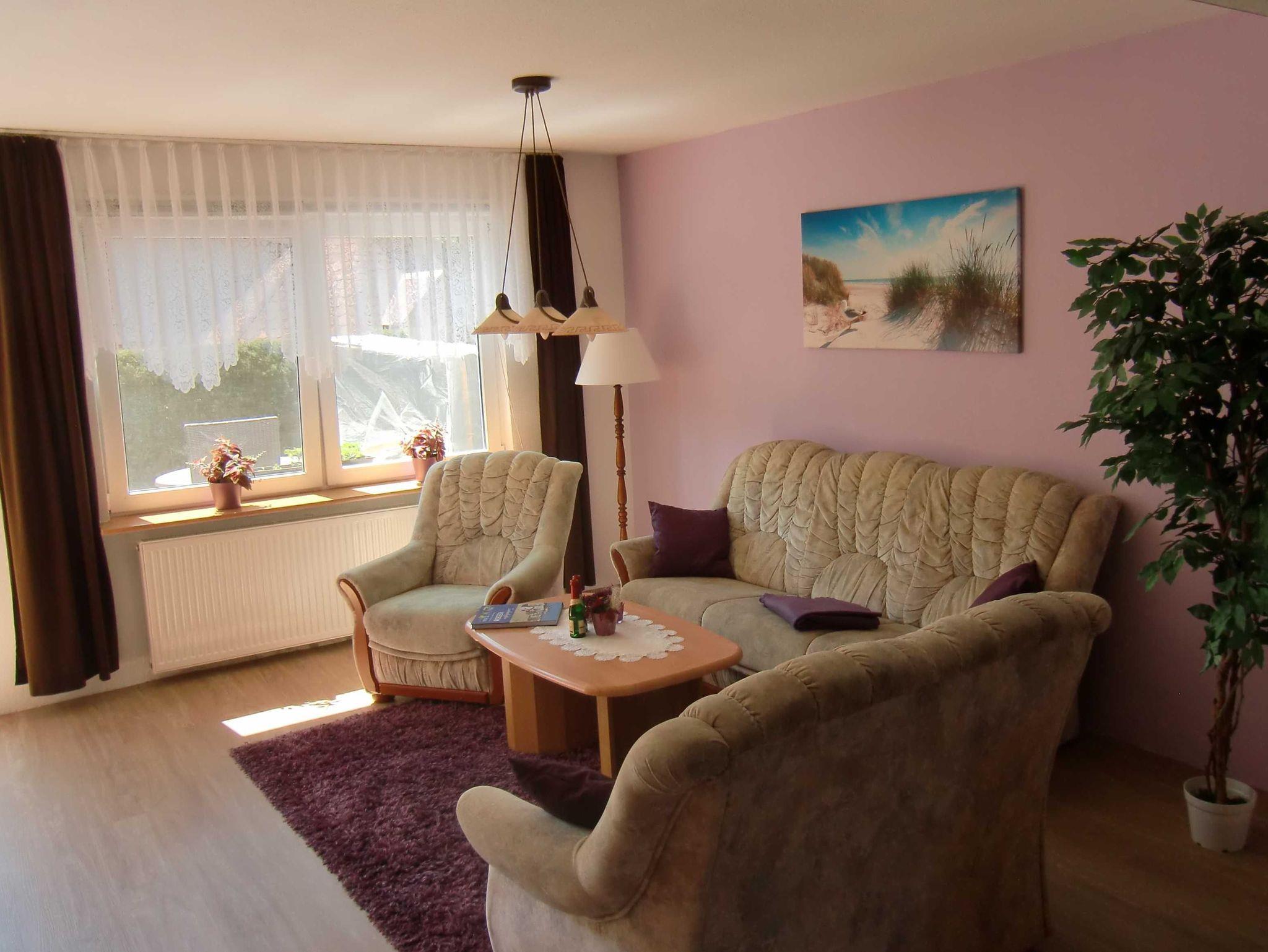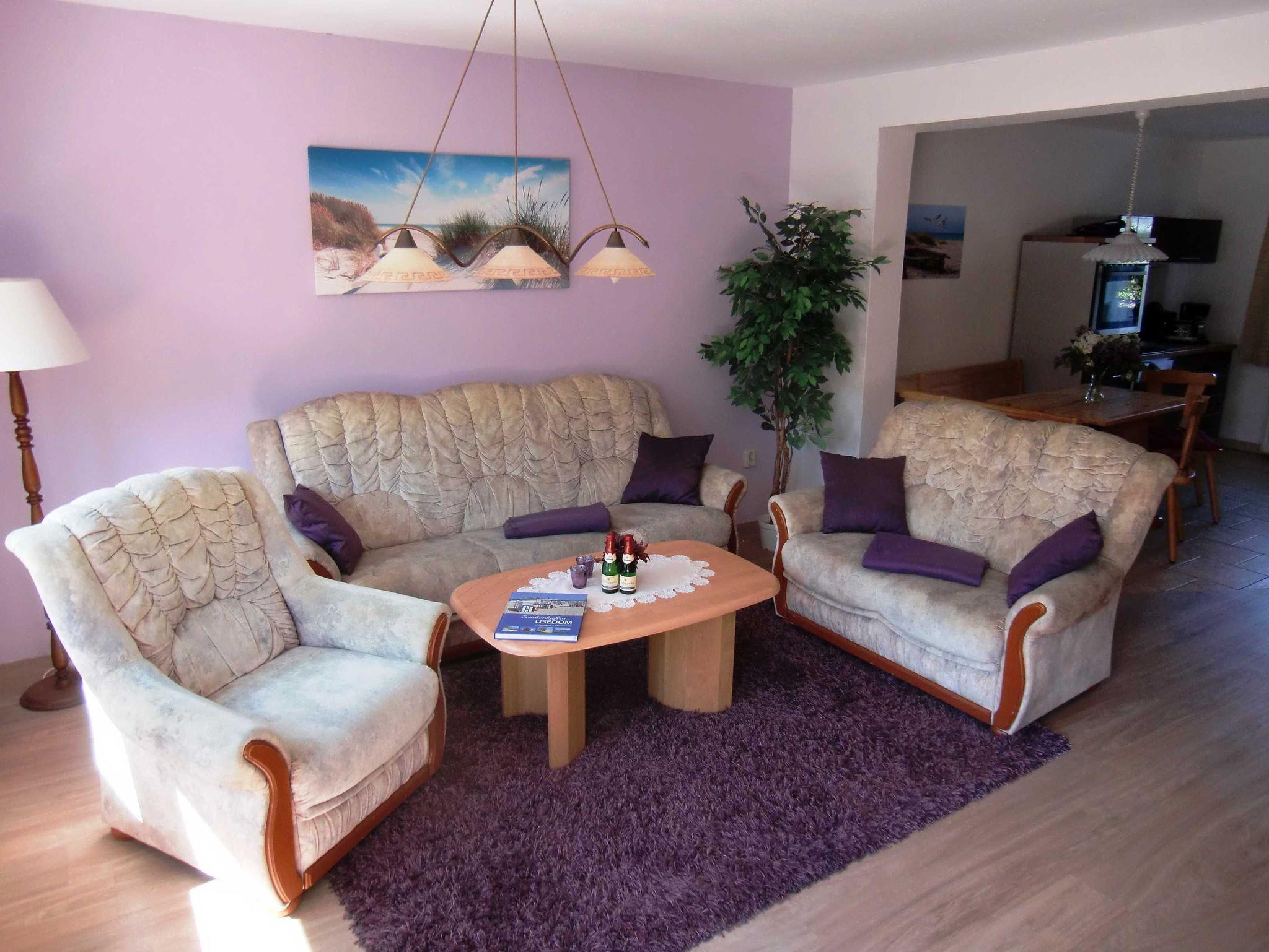 Wohnraum mit Polstergarnitur (keine Schlafcouch!), TV und