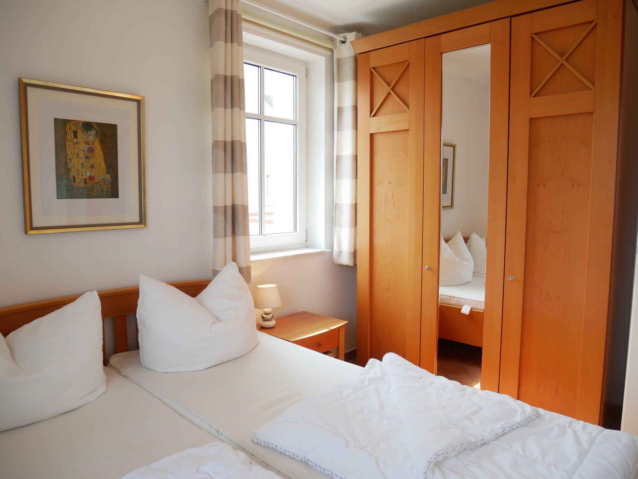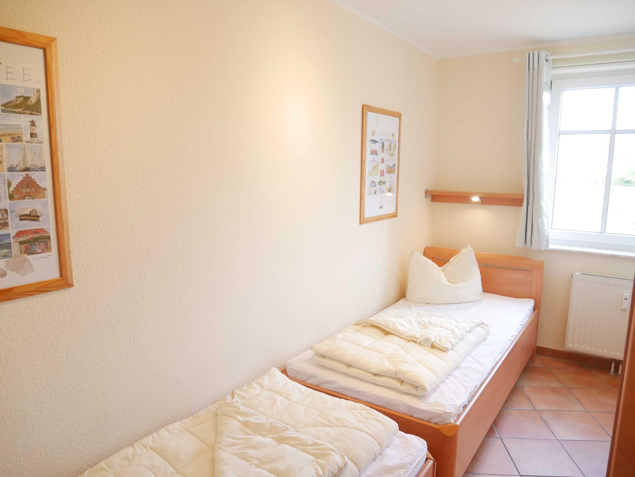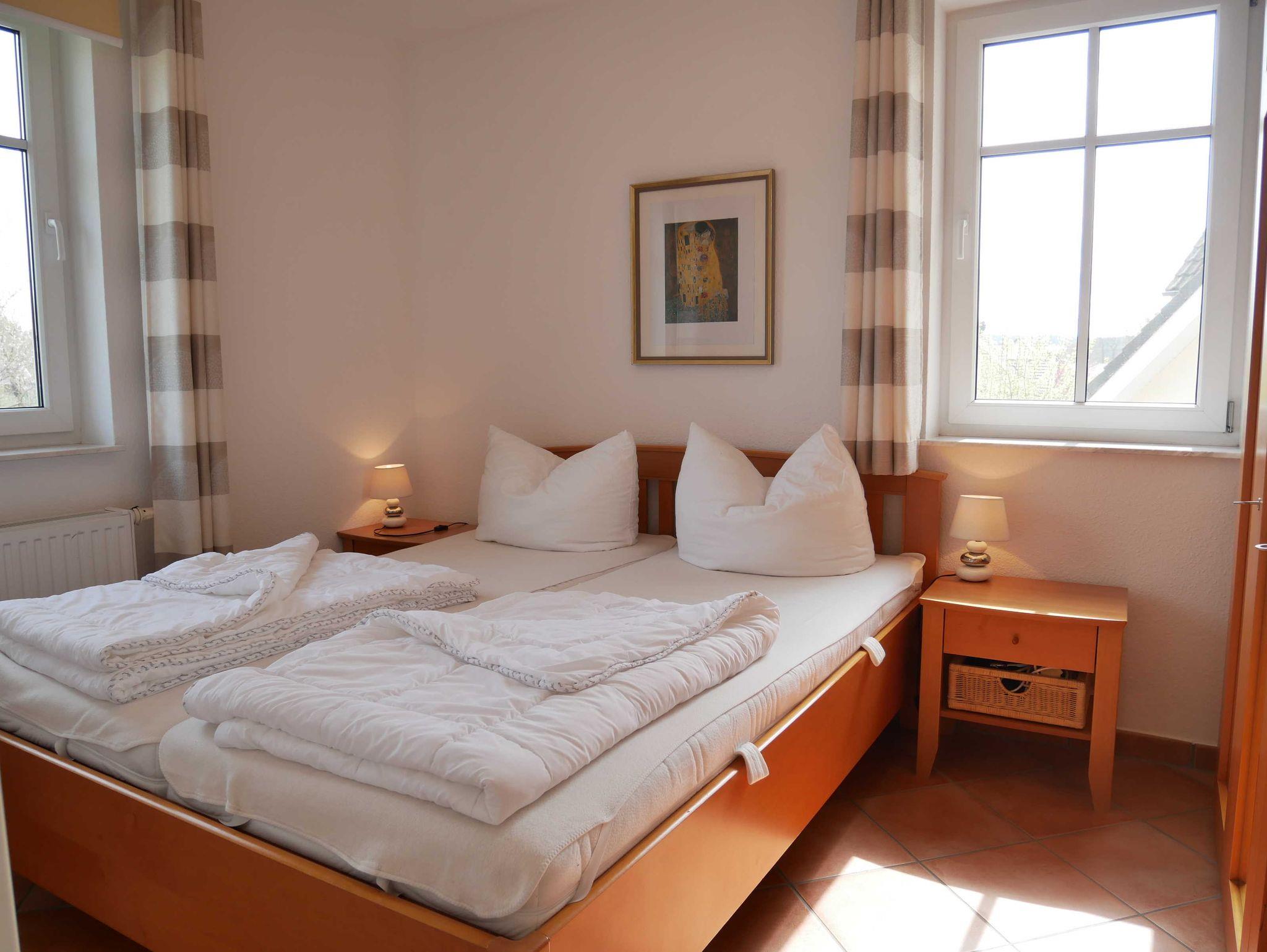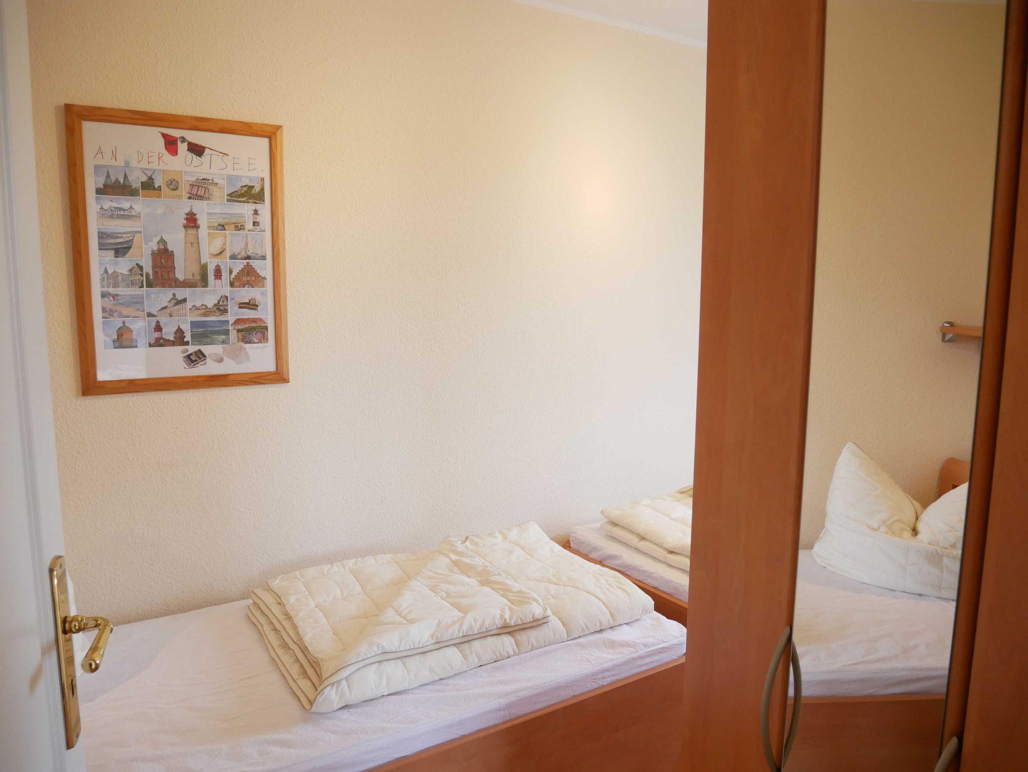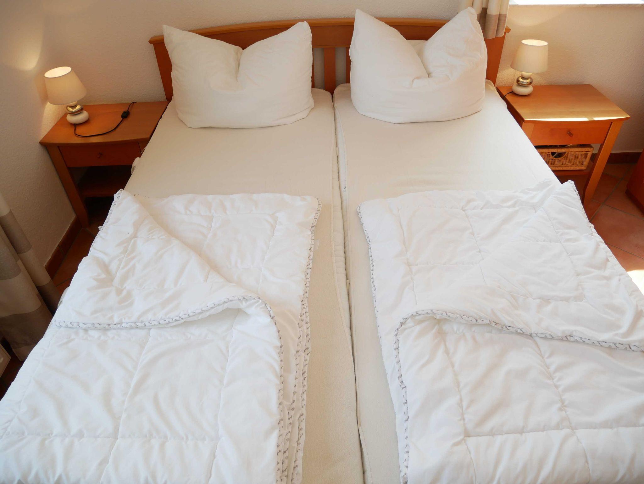 Ein Schlafzimmer ist mit einen Doppelbett und das zweite Schlafzimmer mit 2 Einzelbetten ausgestattet.