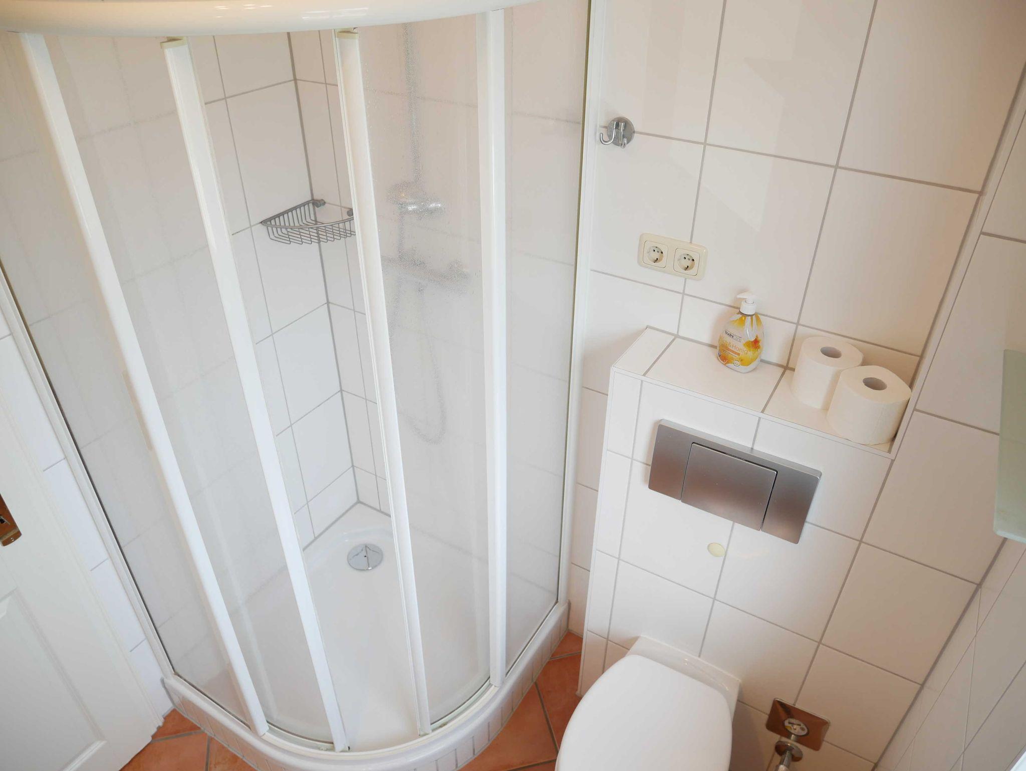 Das Tageslichtbadezimmer verfügt über Dusche/WC und eine Waschmaschine.