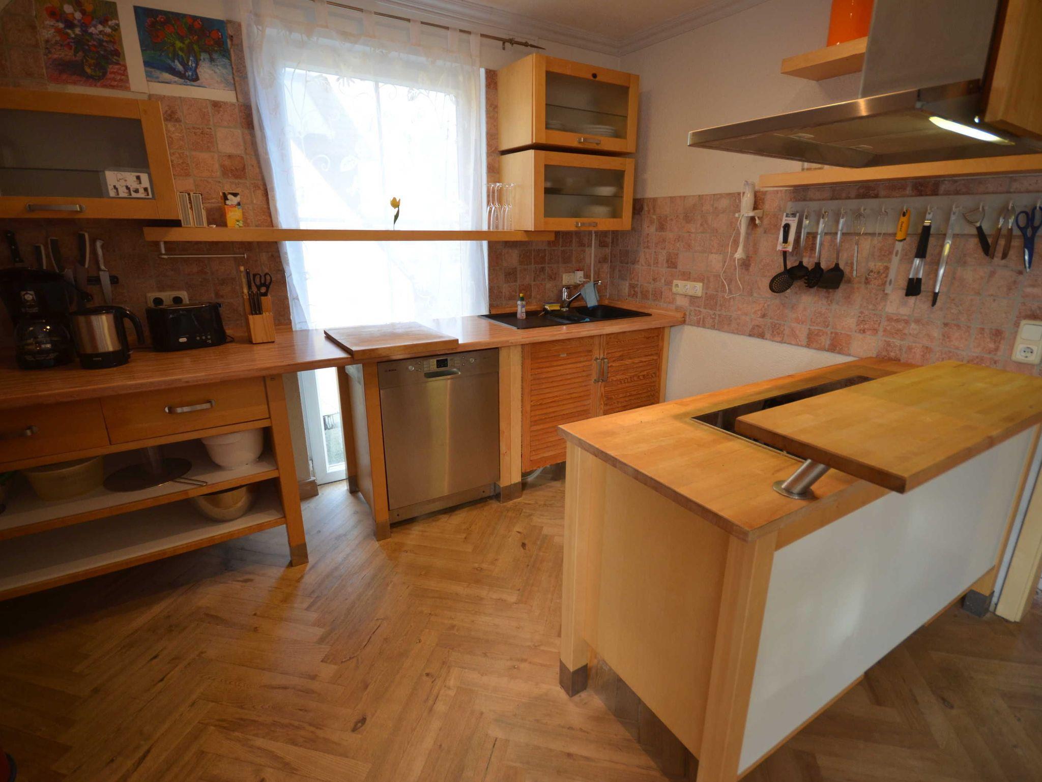 • Küche inkl. Spülmaschine, 4 Kochplatten (Ceranfelder), Backofen, großer Kühlschrank mit großem Kühlfach, Wasserkocher, Kaffeemaschine, Toaster, Esstischgarnitur mit 8 Stühlen.