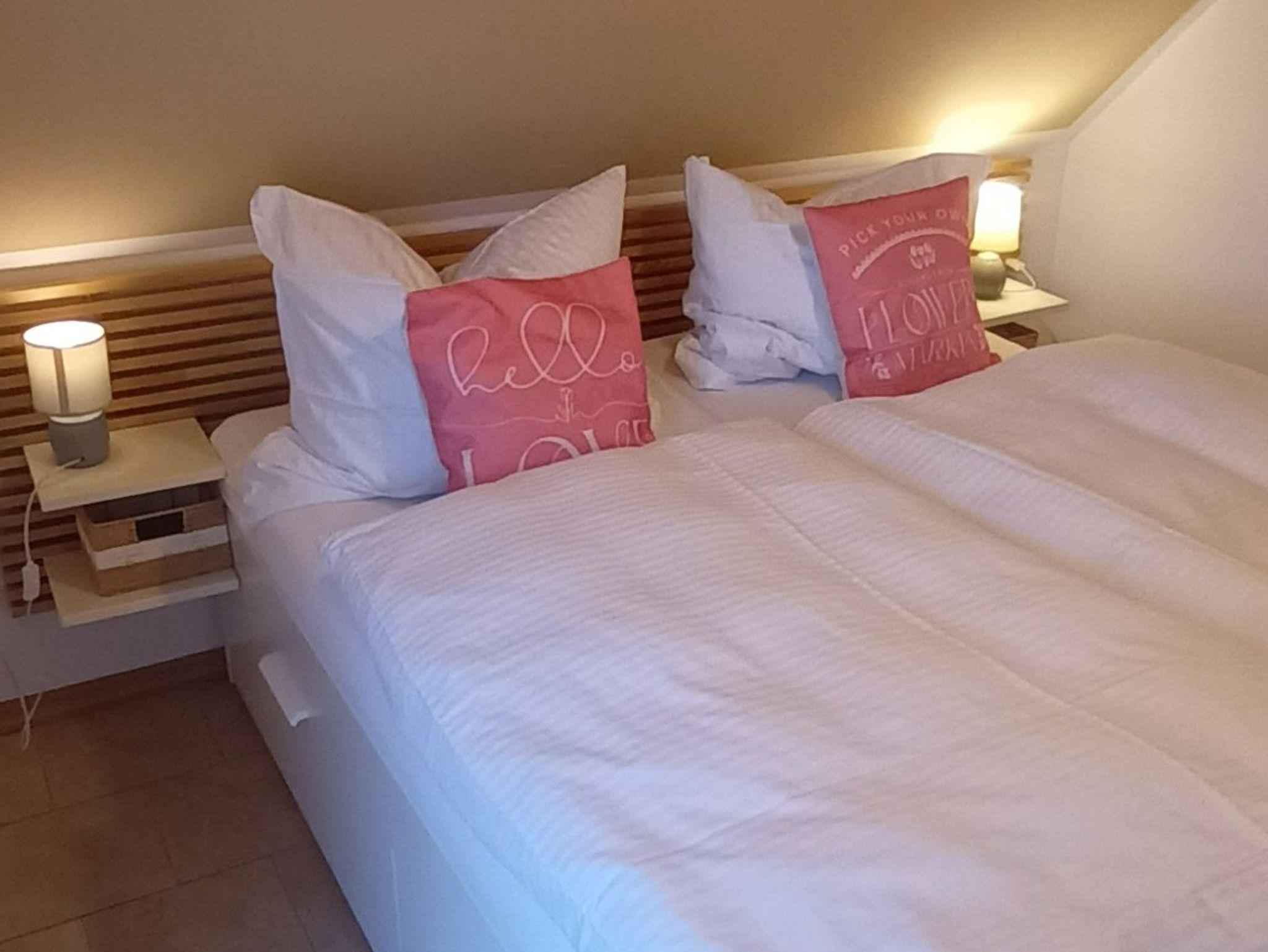 Die Ferienwohnung Herzmuschel im Dachgeschoss eines Ferienhauses mit 2 Wohneinheiten verfügt über 2 Schlafzimmer und bietet Platz für bis zu 4 Personen. Die Ferienwohnung verfügt über einen Wohn- und Essbereich , die offene Küche ist komplett ausgestattet. Ein Badezimmer mit bodengleicher Dusche und WC ist auch vorhanden. Die Ferienwohnung hat einen eigenen Balkon mit Grill und Sitzgelegenheiten.