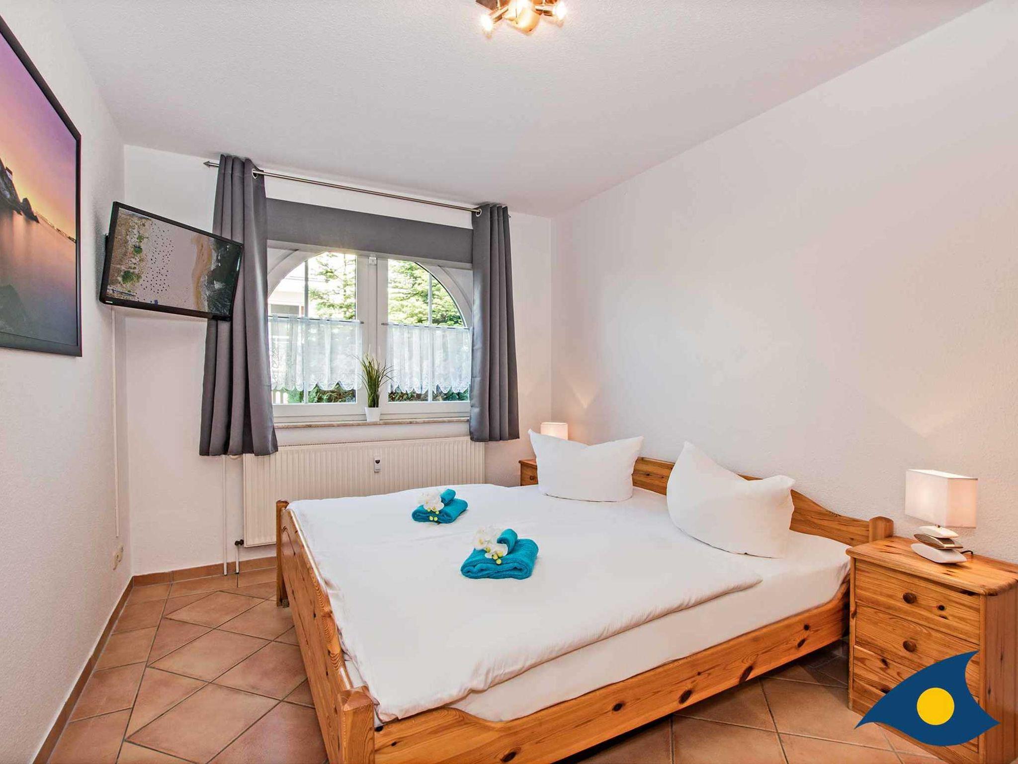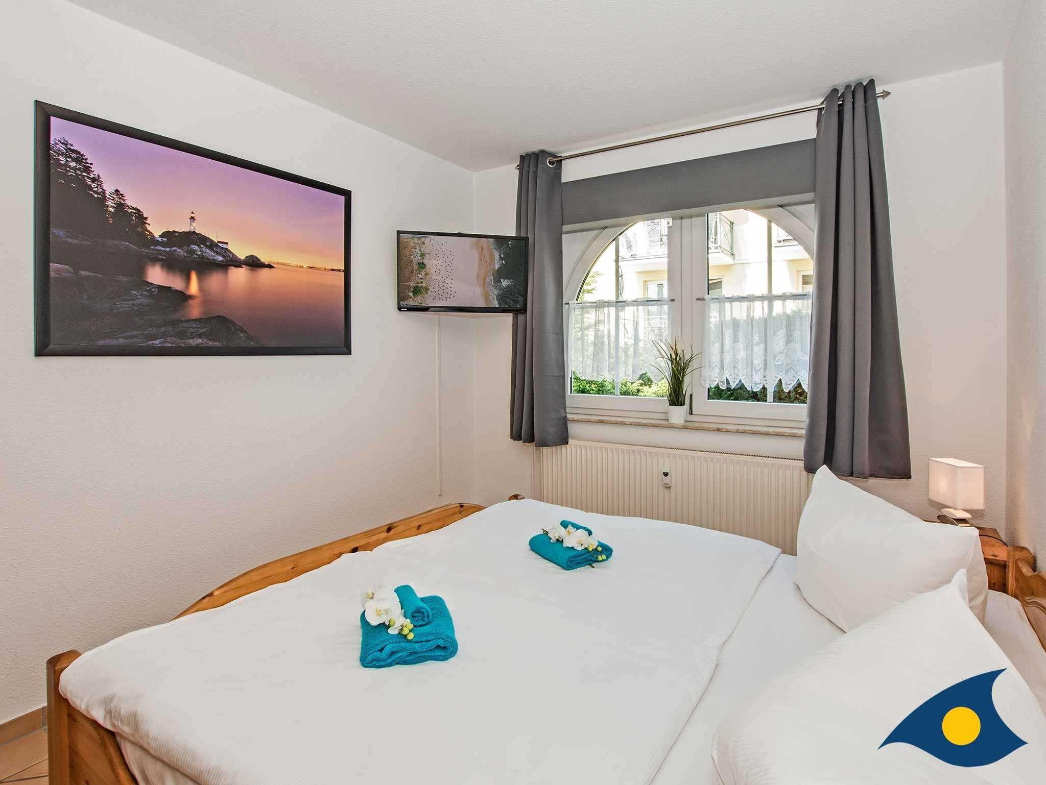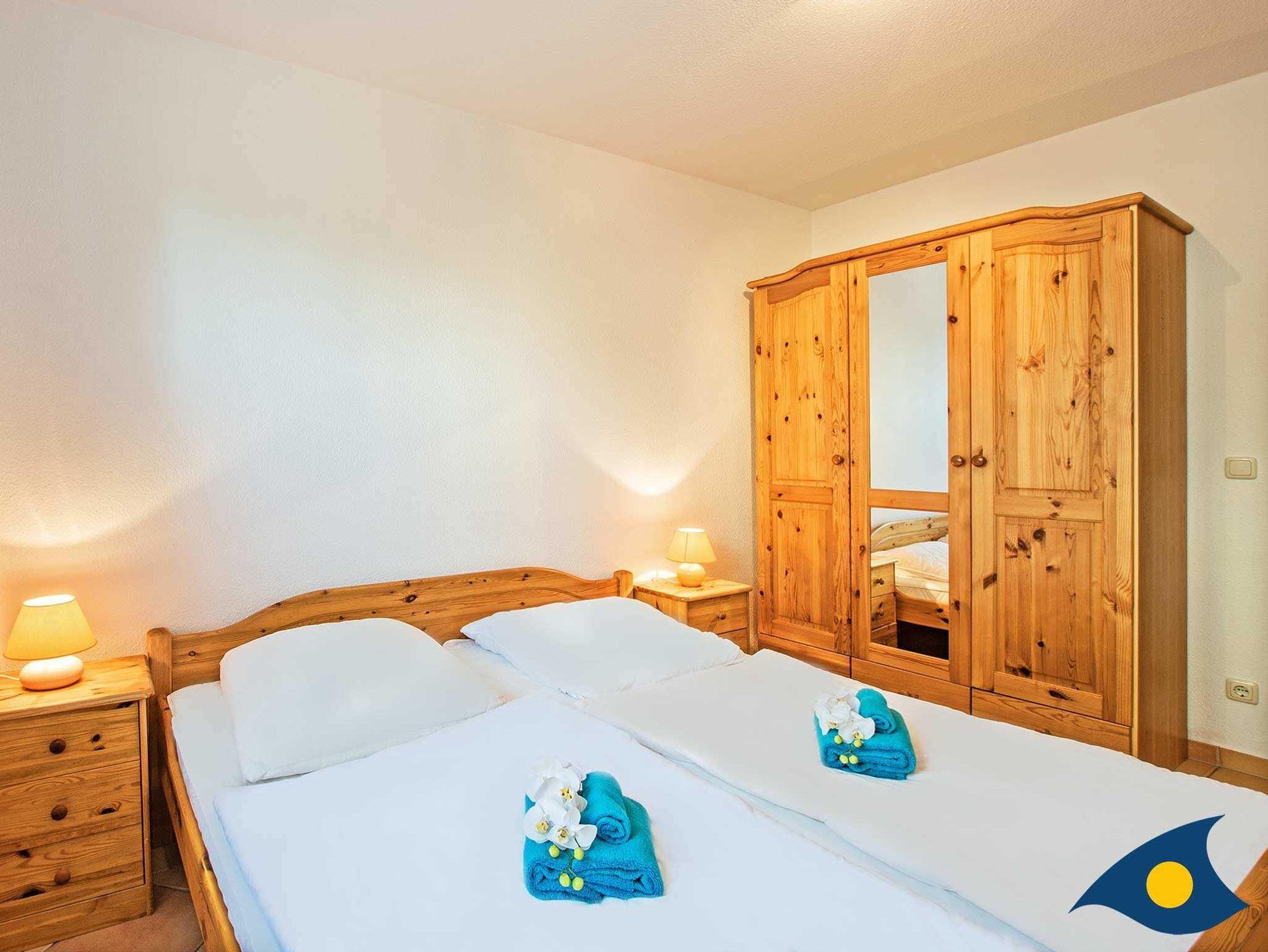 Das gemütliche Doppelbett im Schlafzimmer sorgt für erholsame Nächte. Ausreichend Schrankflächen bieten genügend Platz für Ihre Urlaubsgarderobe. Der zusätzliche Fernseher im Schlafzimmer macht diesen Raum zu einem zusätzlichen Rückzugsort. Das Badezimmer ist mit einer Badewanne, dem WC, einem Handwaschbecken, Haartrockner und einem Fenster ausgestattet.