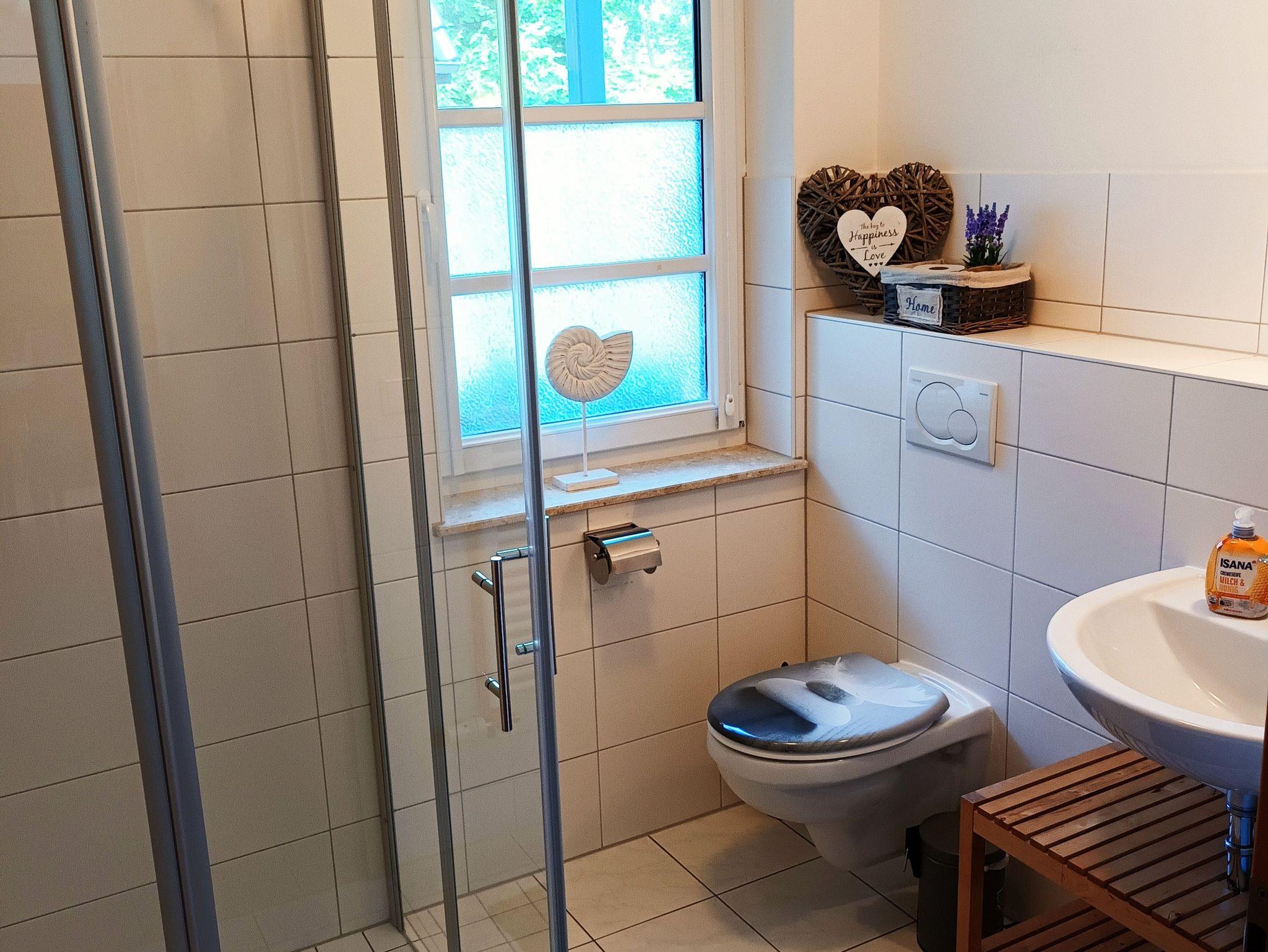 bodengleicher Dusche und WC ist auch vorhanden. Die Ferienwohnung hat