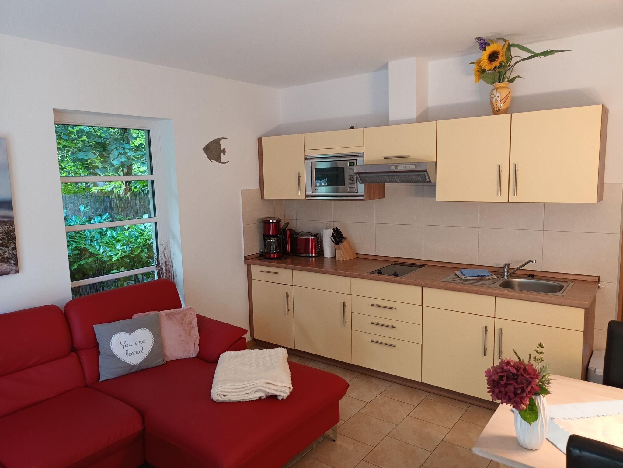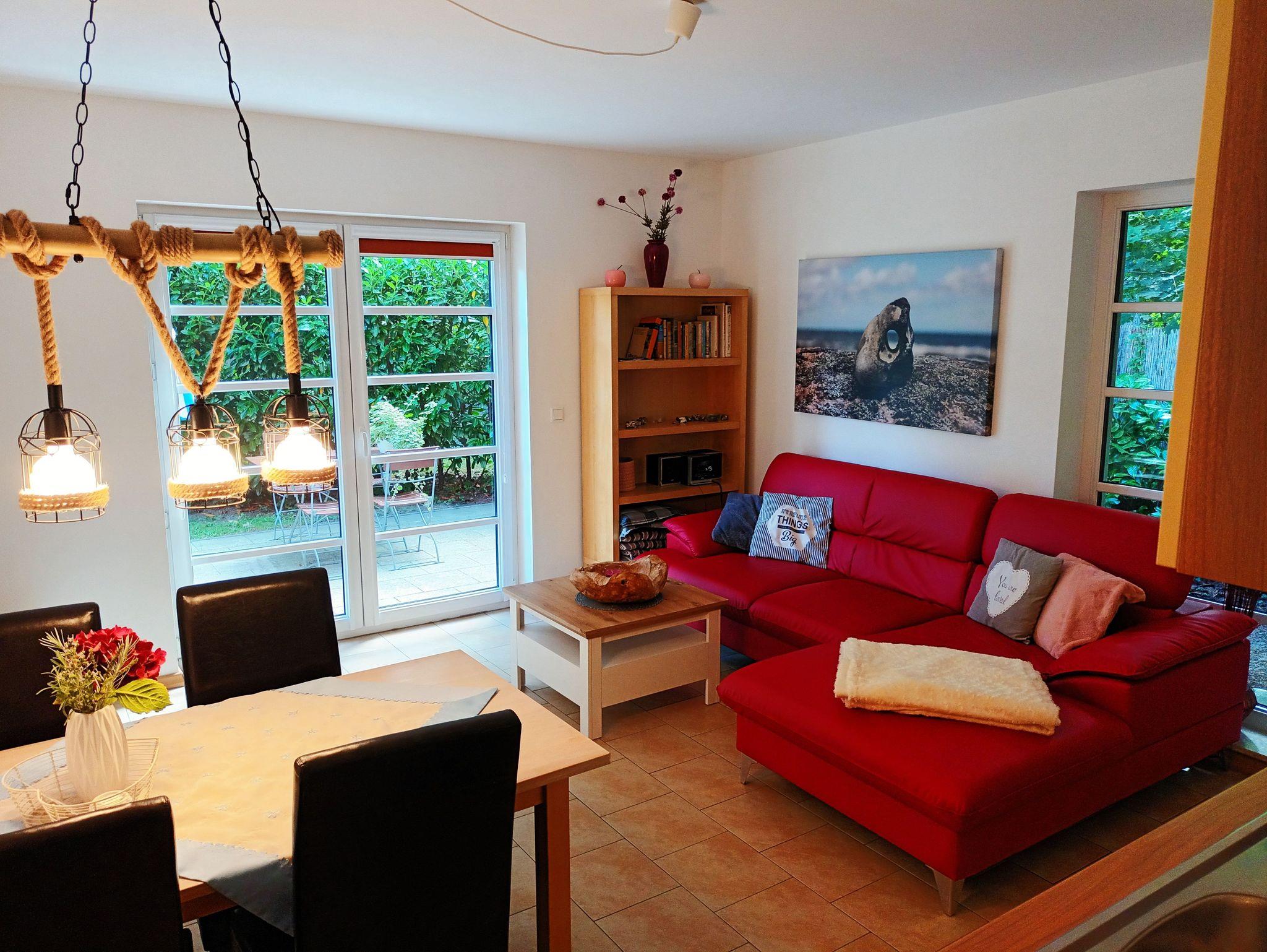 Die geschmackvoll eingerichtete Ferienwohnung Hühnergott [ ca. 60 qm ] in Waldrandlage und mit nur wenigen Gehminuten vom feinsandigen Ostseestrand entfernt befindet sich im Erdgeschoss eines Ferienhauses mit 2 Wohneinheiten.