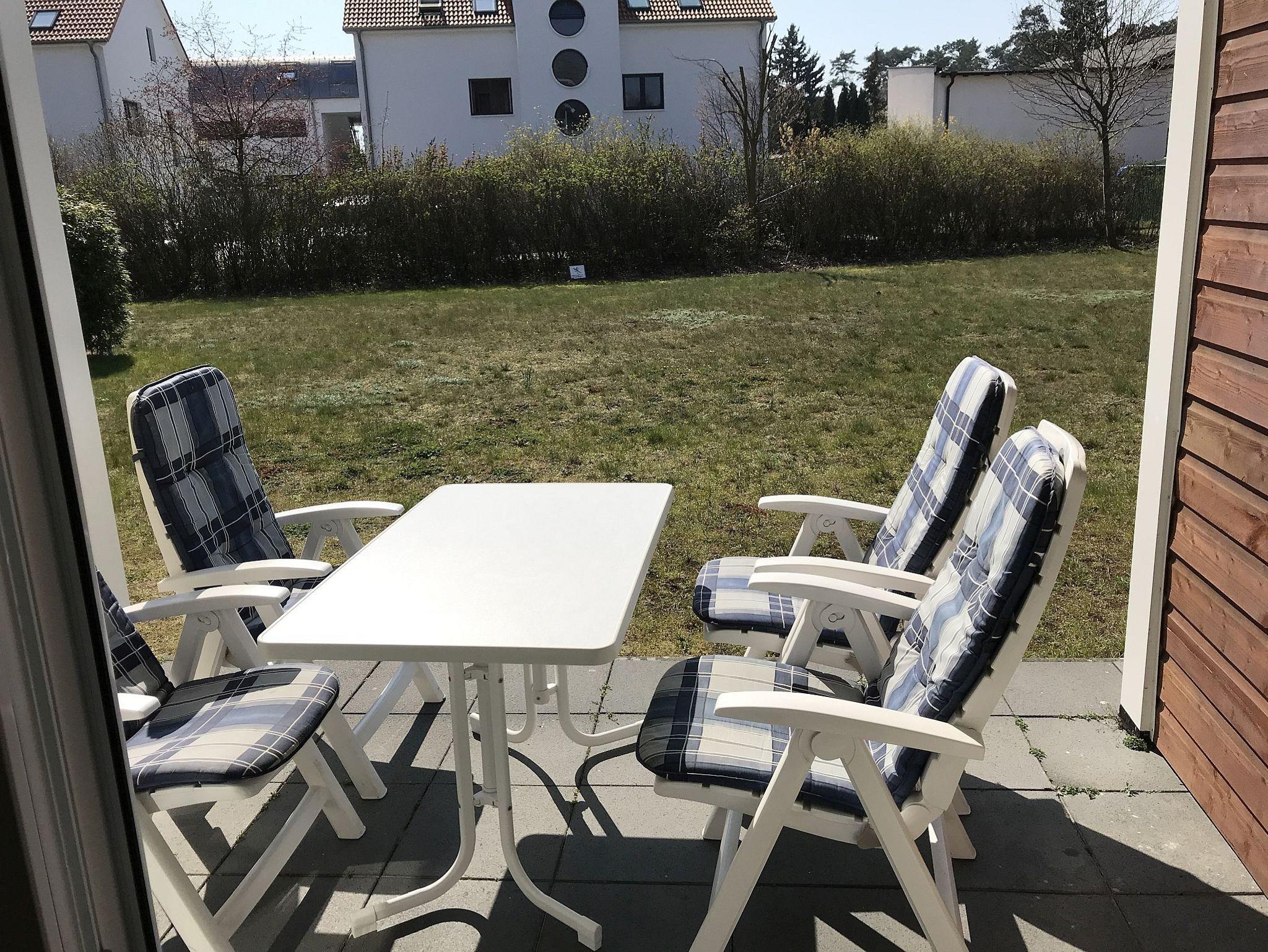 Genießen Sie die Sonne auf zwei Terrassen, eine nach Osten und eine nach Südwesten ausgerichtet, Tisch und Stühle sind vorhanden. Ein Parkplatz vor dem Haus sowie ein abschließbarer Schuppen für Fahrräder und Strandsachen stehen Ihnen zur Verfügung.