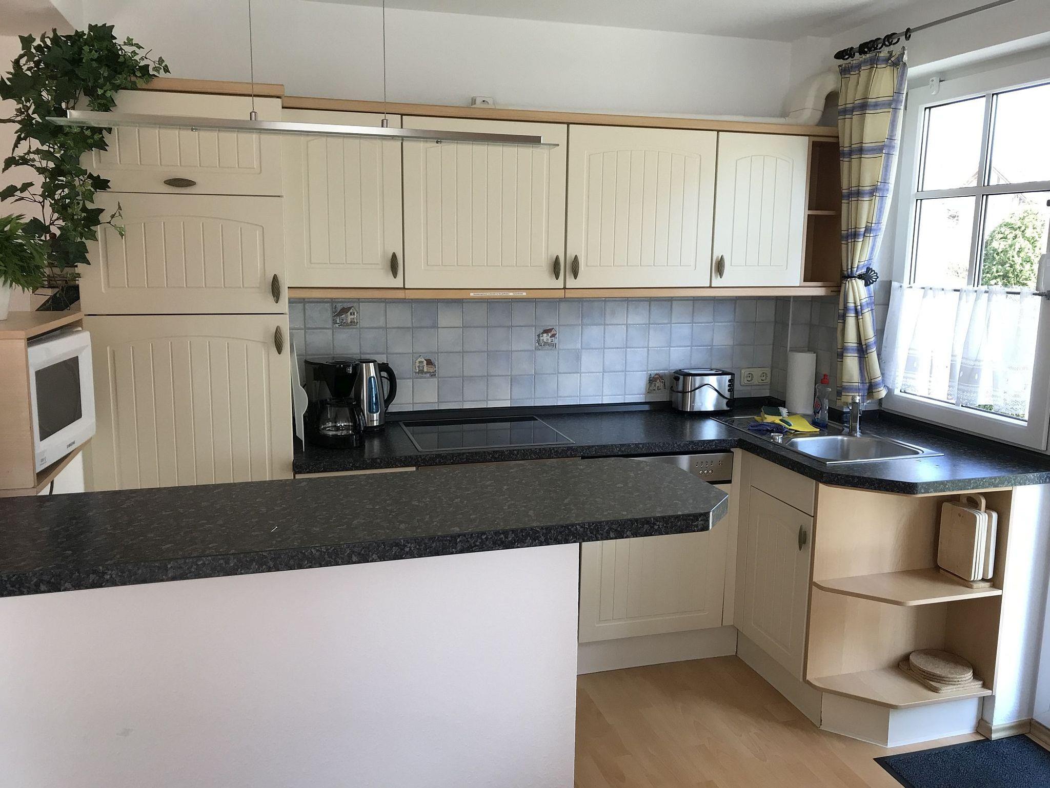Die geräumige und gemütliche 3-Zimmer-Ferienwohnung im Erdgeschoss des charmanten Bernsteinhauses bietet auf 65 m² ausreichend Platz für bis zu 4 Personen. Sie verfügt über einen gemütlichen Wohnbereich mit einer bequemen Couch und einem Kamin. Ein Essbereich bietet Platz für die ganze Familie. Die offene Küche ist komplett ausgestattet mit u.a. Cerankochfeld mit Backofen, Geschirrspüler, Mikrowelle, Kühl-Gefrierkombination, Kaffeemaschine, Wasserkocher und Toaster.