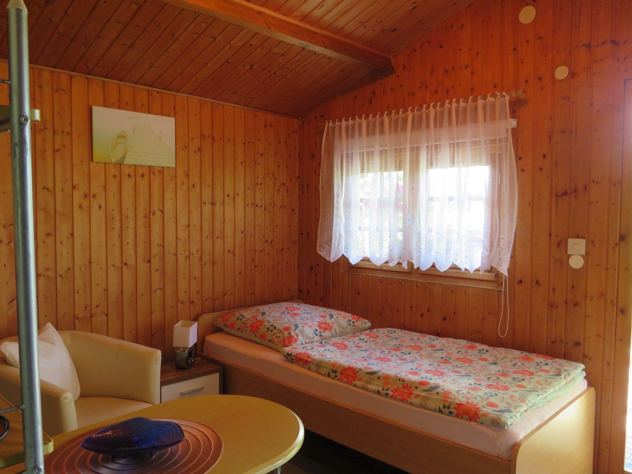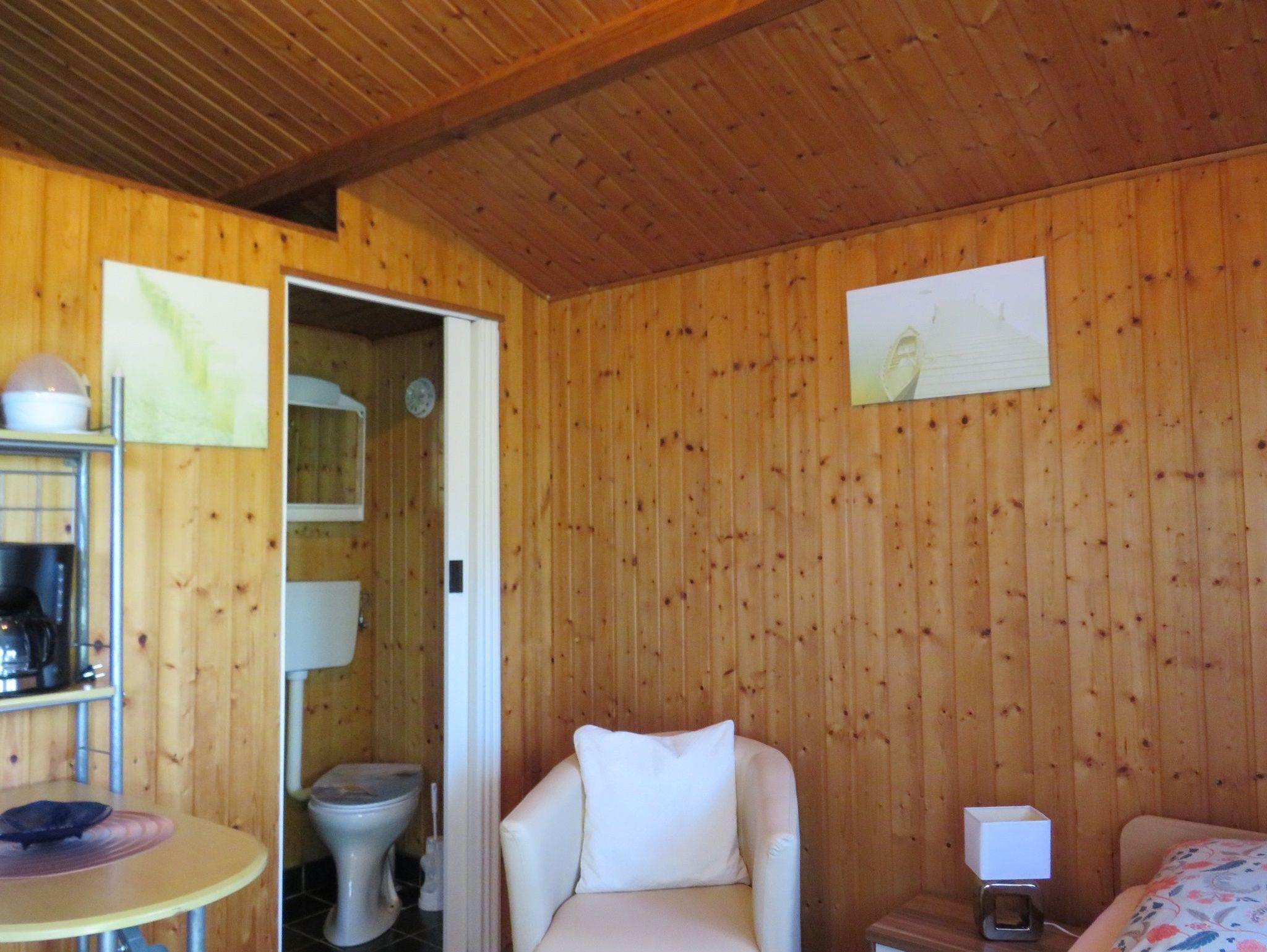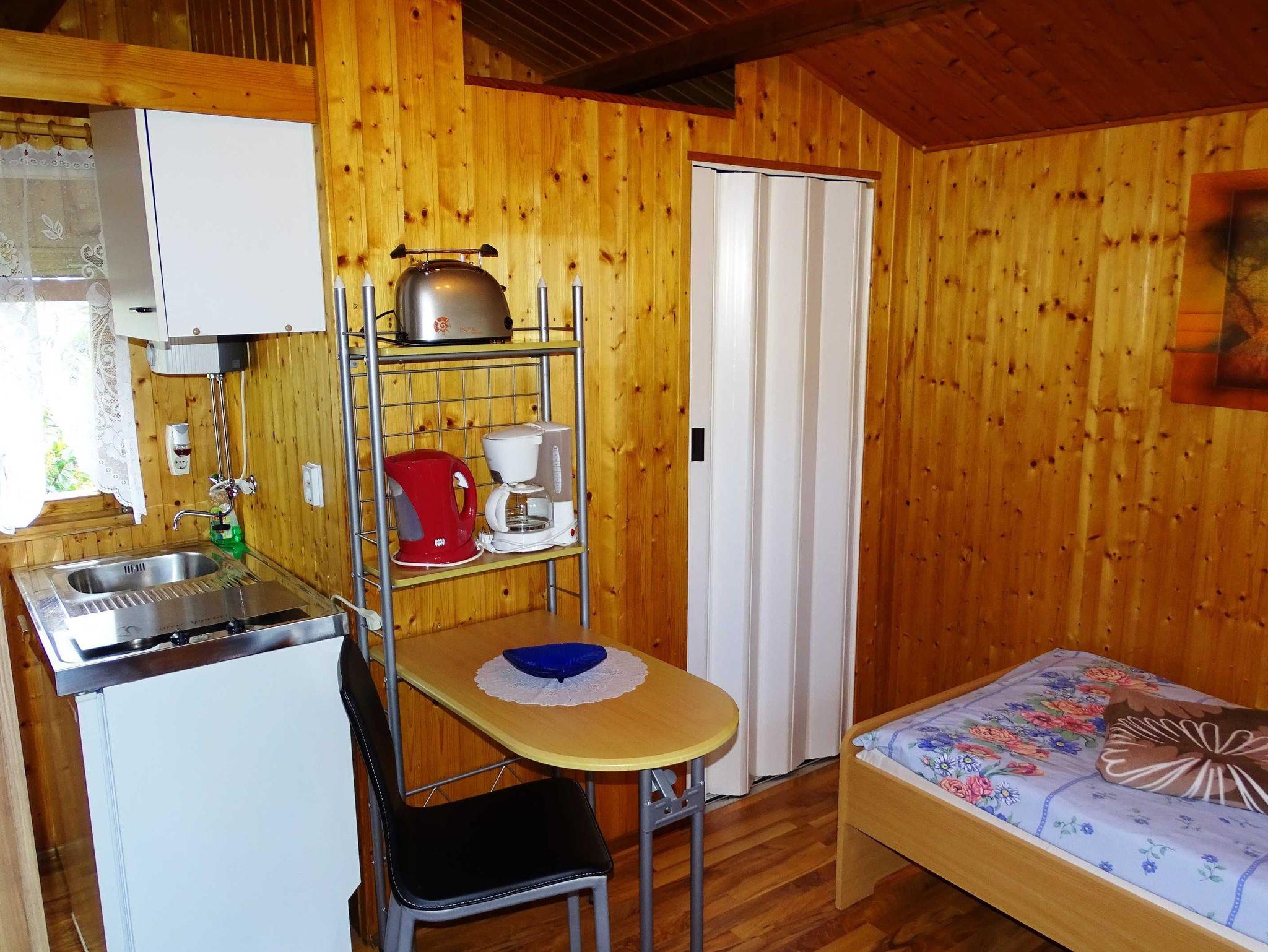 Das Ferienhäuschen (12 m²) befindet sich auf einem gepflegten ruhigen Grundstück, auf welchem auch das Wohnhaus des Vermieters steht.