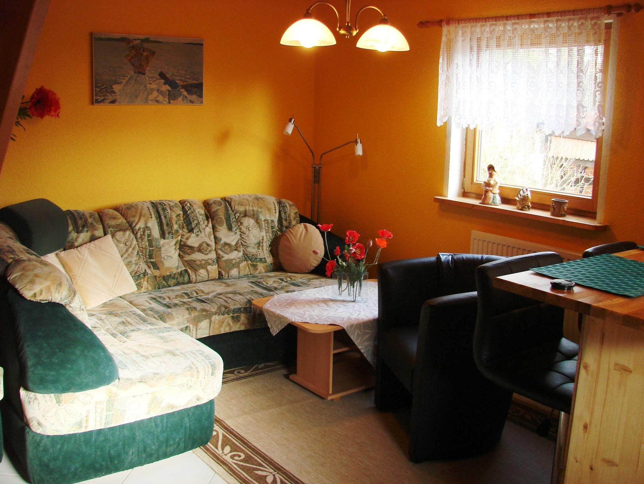 Das gemütlich eingerichtete Fachwerkhaus liegt im Bernsteinbad Kölpinsee, in ruhiger Lage am Waldrand, auf dem Grundstück der Vermieter. Die große Sonnenterrasse mit Grillmöglichkeit bietet einen schönen Blick in den liebevoll angelegten Garten. Es teilt sich auf in einen offenen Wohn- und Küchenbereich und einem Badezimmer im Erdgeschoss. Im Obergeschoss befindet sich in der offenen Galerie ein Doppelbett und ein kleines Schlafzimmer mit einem Einzelbett. Die Erstausstattung Bettwäsche und Handtücher ist bereits im Gesamtpreis enthalten.
