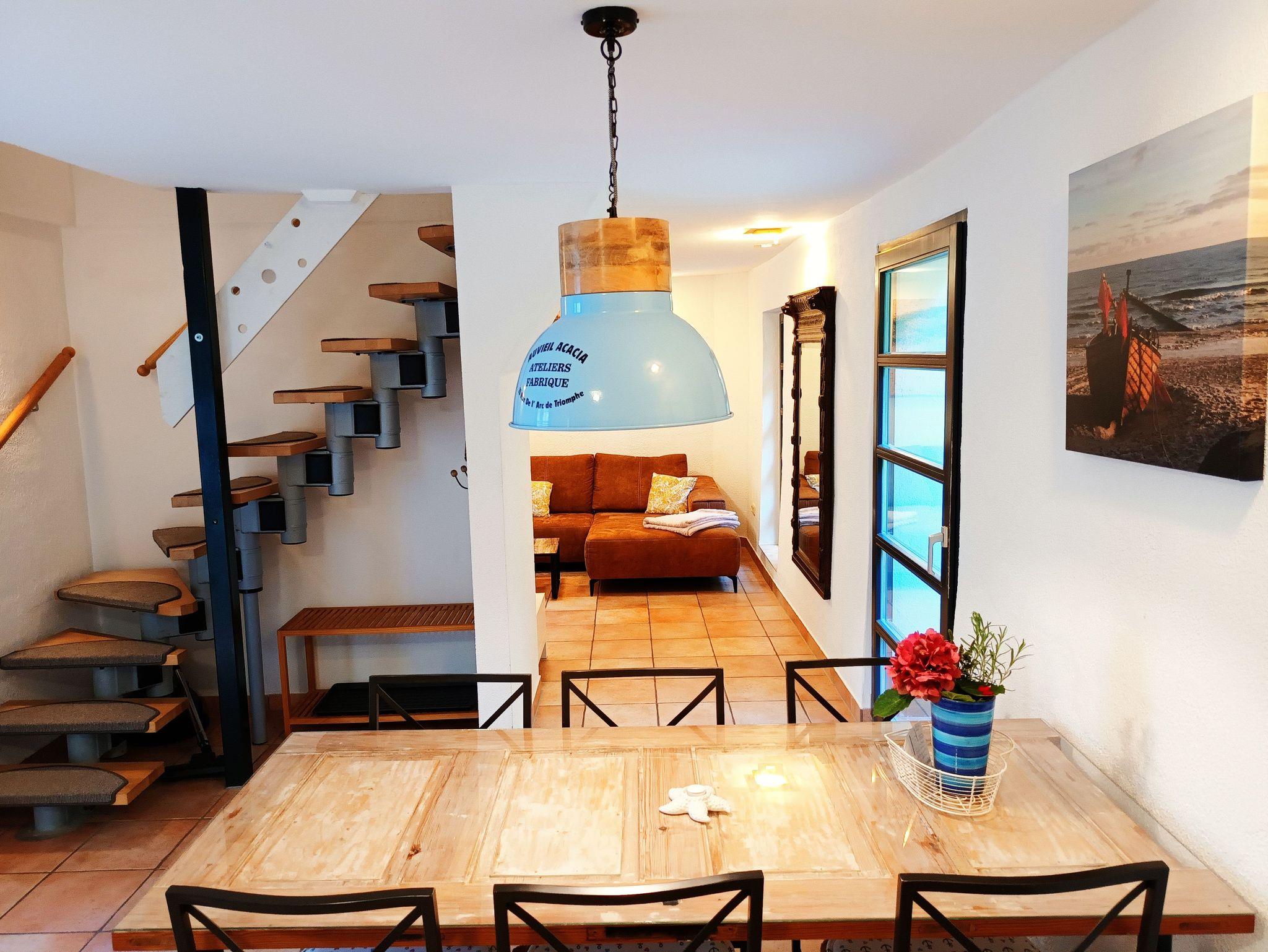 Das Ferienhaus verfügt im Erdgeschoss über eine großzüge Wohnküche und viel Platz zum gemütlichen Beisammensein. Von hieraus erreichen Sie auch die große Terrasse und einen kleinen Garten, die mit Gartenmöbeln und Grill ausgestattet ist.