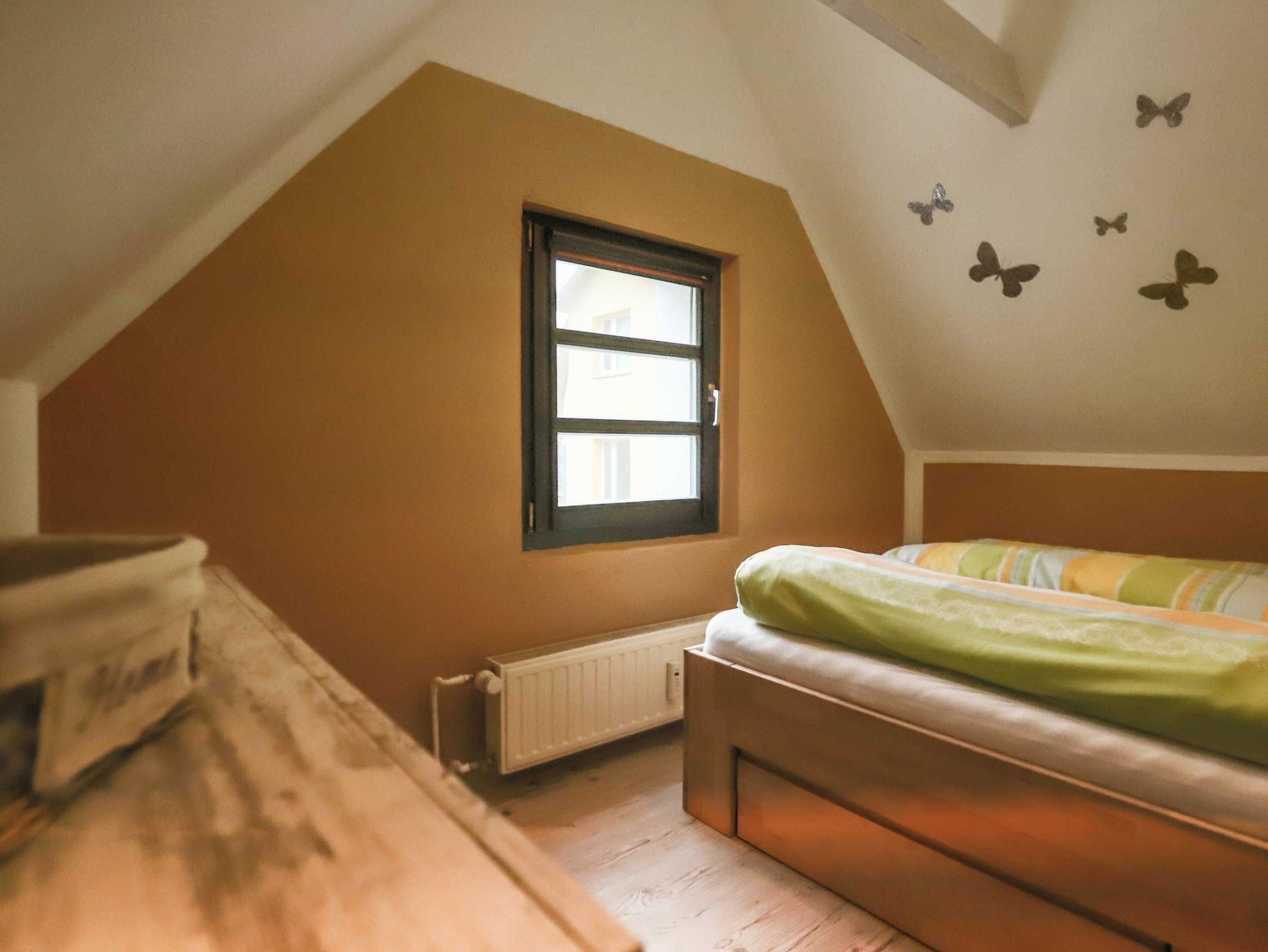 Im Obergeschoss finden Sie die beiden Schlafzimmer mit je einem Doppelbett (1,60 x 2,00 m) und (1,80 x 2,00 m) mit Möbeln im skandinavischen Stil, sowie das Badezimmer mit Dusche und Wc. Letzte Sanierung des Ferienhauses erfolgte 2024. WLAN erhalten sie von uns gratis.