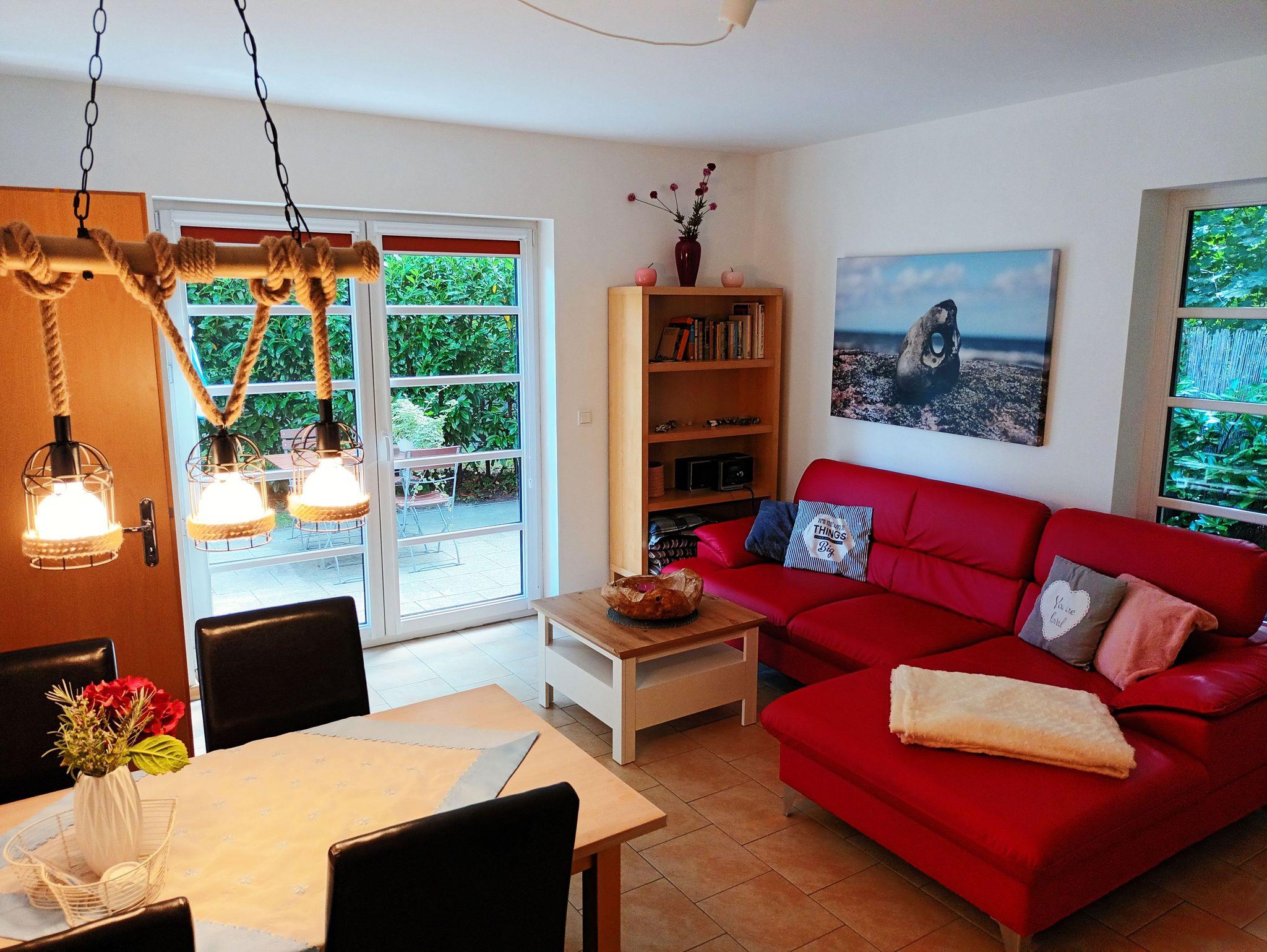 Das gemütliche Ferienhaus Bernstein zur Alleinnutzung verfügt über einen großen offenen Wohn-/Essbereich mit komplett ausgestatteter Küche . Über eine Treppe gelangen sie zu den 2 Schlafzimmer und den Bad. Das Ferienhaus verfügt über eine eigene Terrasse und einen kleinen Garten zum Erholen.