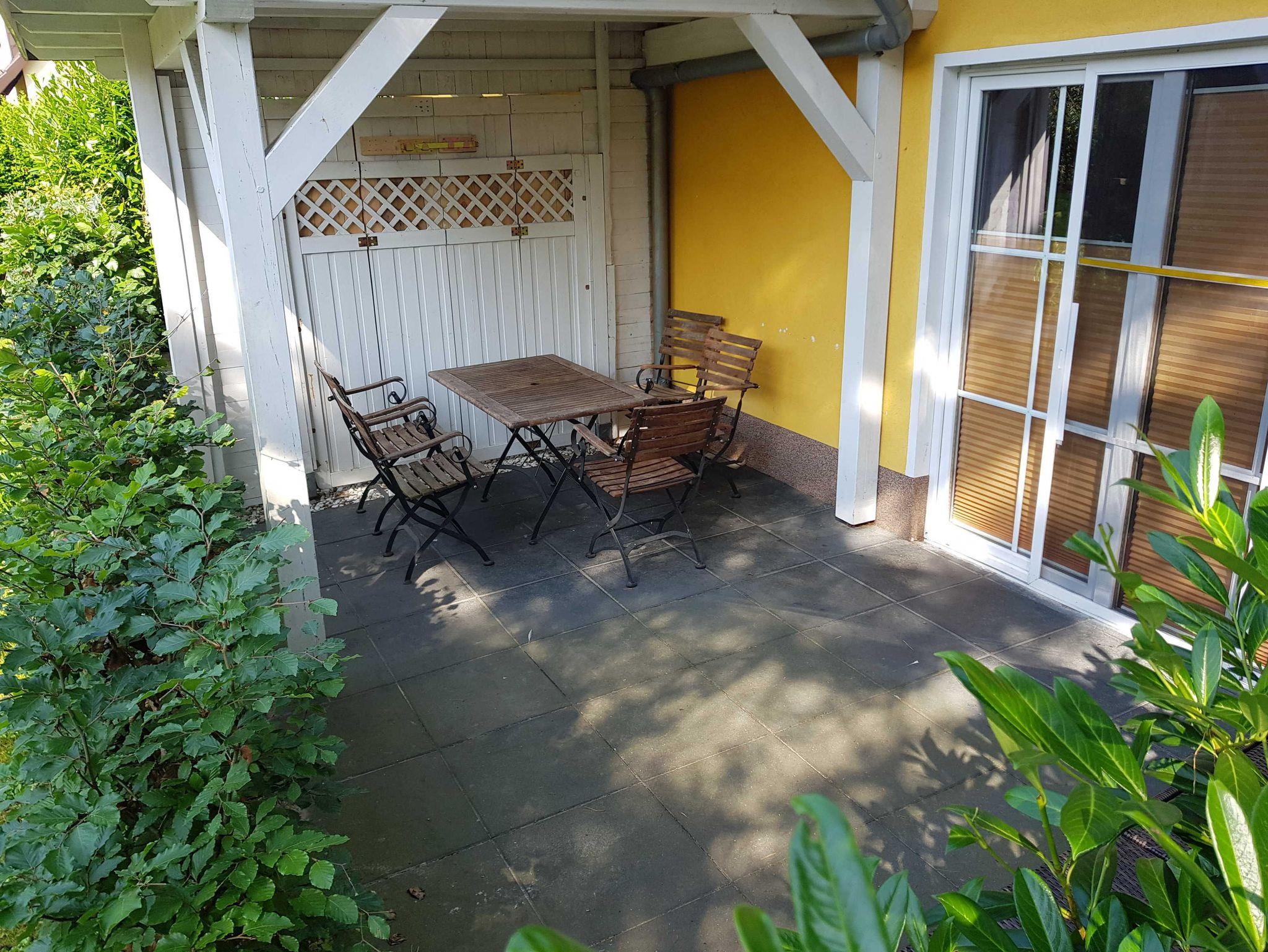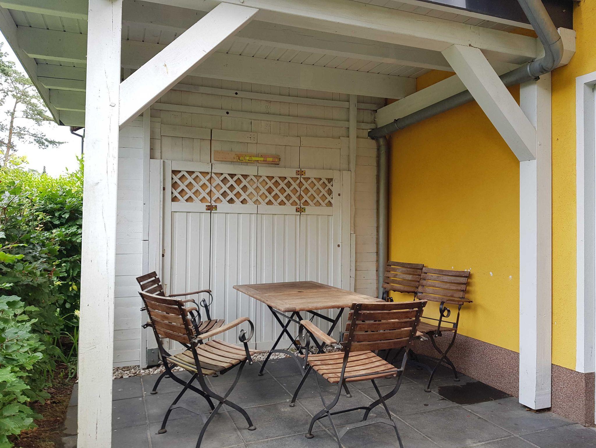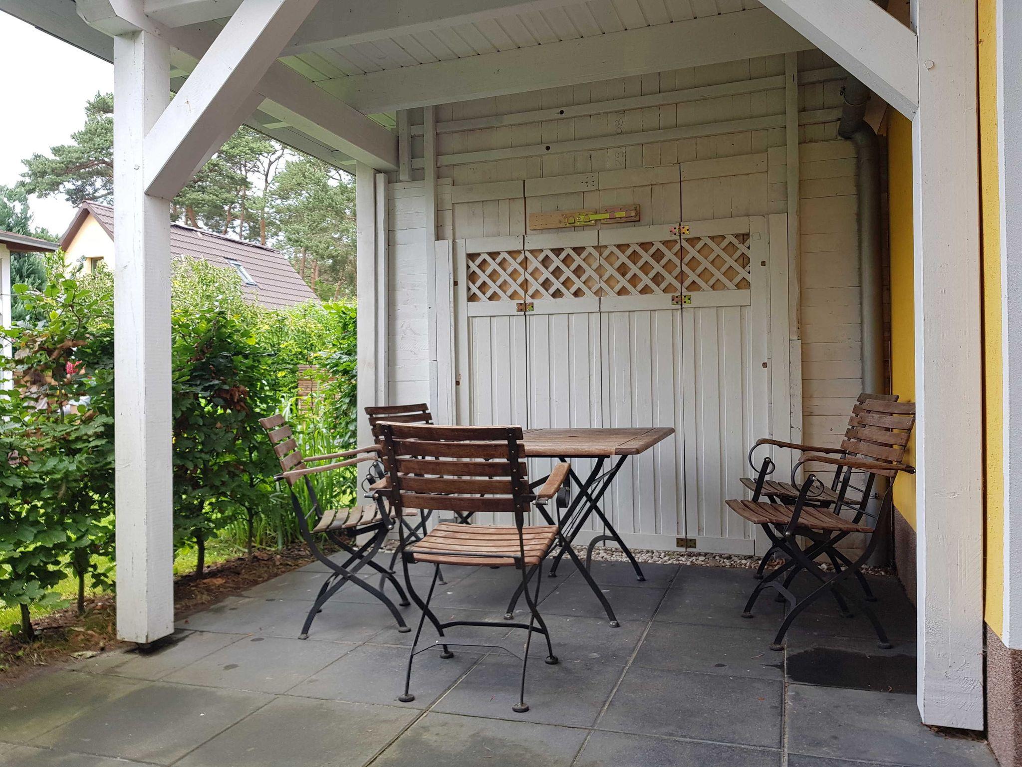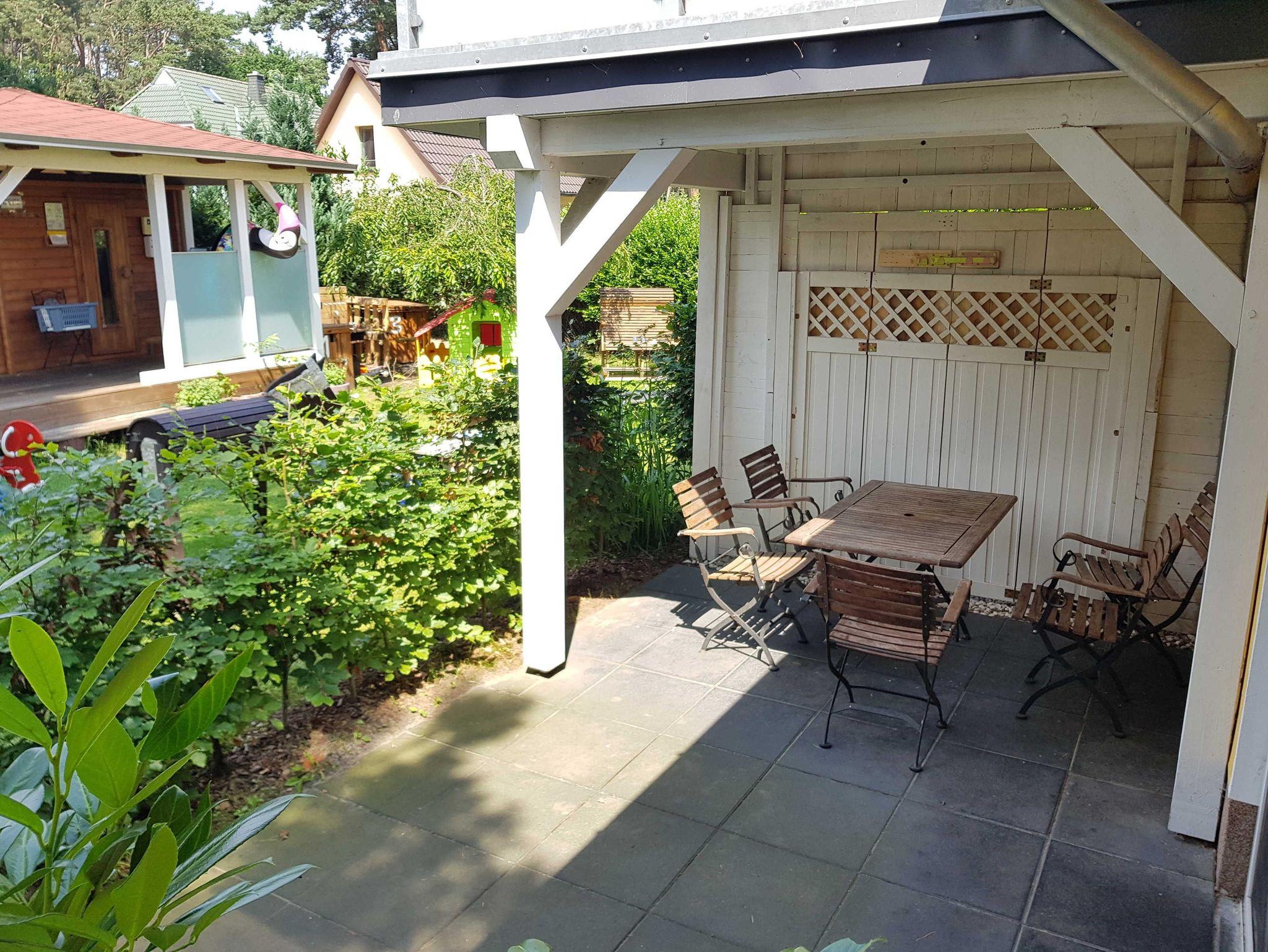 • Großzügigen Terrasse mit Gartenblick und mit Außensauna zur Nutzung. Mit stabiler Sitzgarnitur aus Holz. Für Fewo 1 mit 2 Stühlen, einer Bank und einem Tisch und für Fewo 2 mit 5 Stühlen und einem Tisch. Siehe Fotos. Terrassentür und das Terrassenfenster sind jeweils mit einem Plissee ausgestattet, welches Sie zum Schutz gegen Sonnenlicht oder Blicke nutzen können.