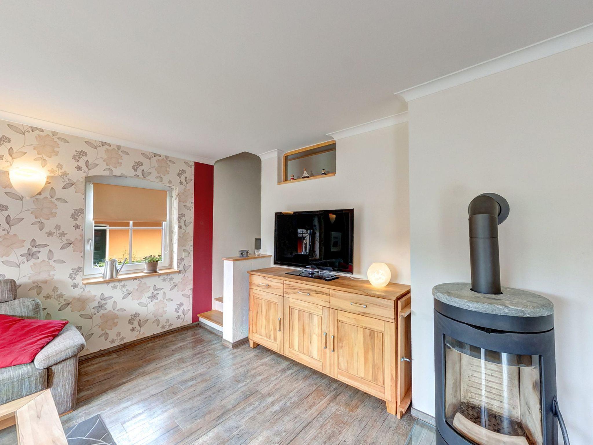 Im Erdgeschoss dieses charmanten Hauses erwartet Sie ein großzügiger, lichtdurchfluteter Wohn- und Essbereich, der nahtlos an eine voll ausgestattete Küche angrenzt. Hier können Sie Ihre Lieblingsgerichte zubereiten und gemeinsam am großen, hölzernen Esstisch genießen. Der Wohnbereich ist mit einer bequemen Couch, einem gemütlichen Kaminofen und einem Flat-TV ausgestattet - perfekt für entspannte Stunden. Vom Wohnraum aus haben Sie direkten Zugang zu Ihrer möblierten Terrasse, auf der Sie das herrliche Ostseewetter in vollen Zügen genießen können.