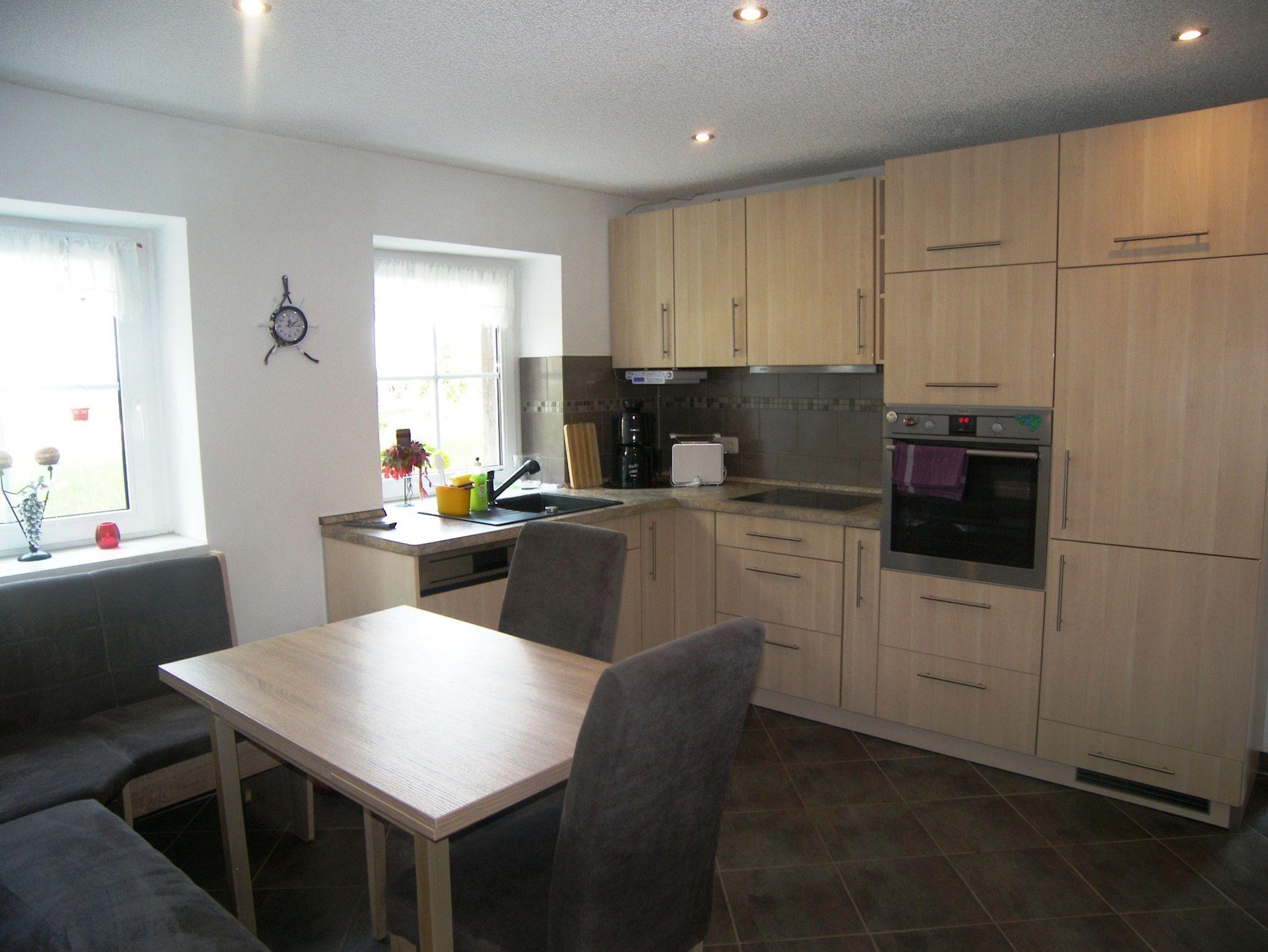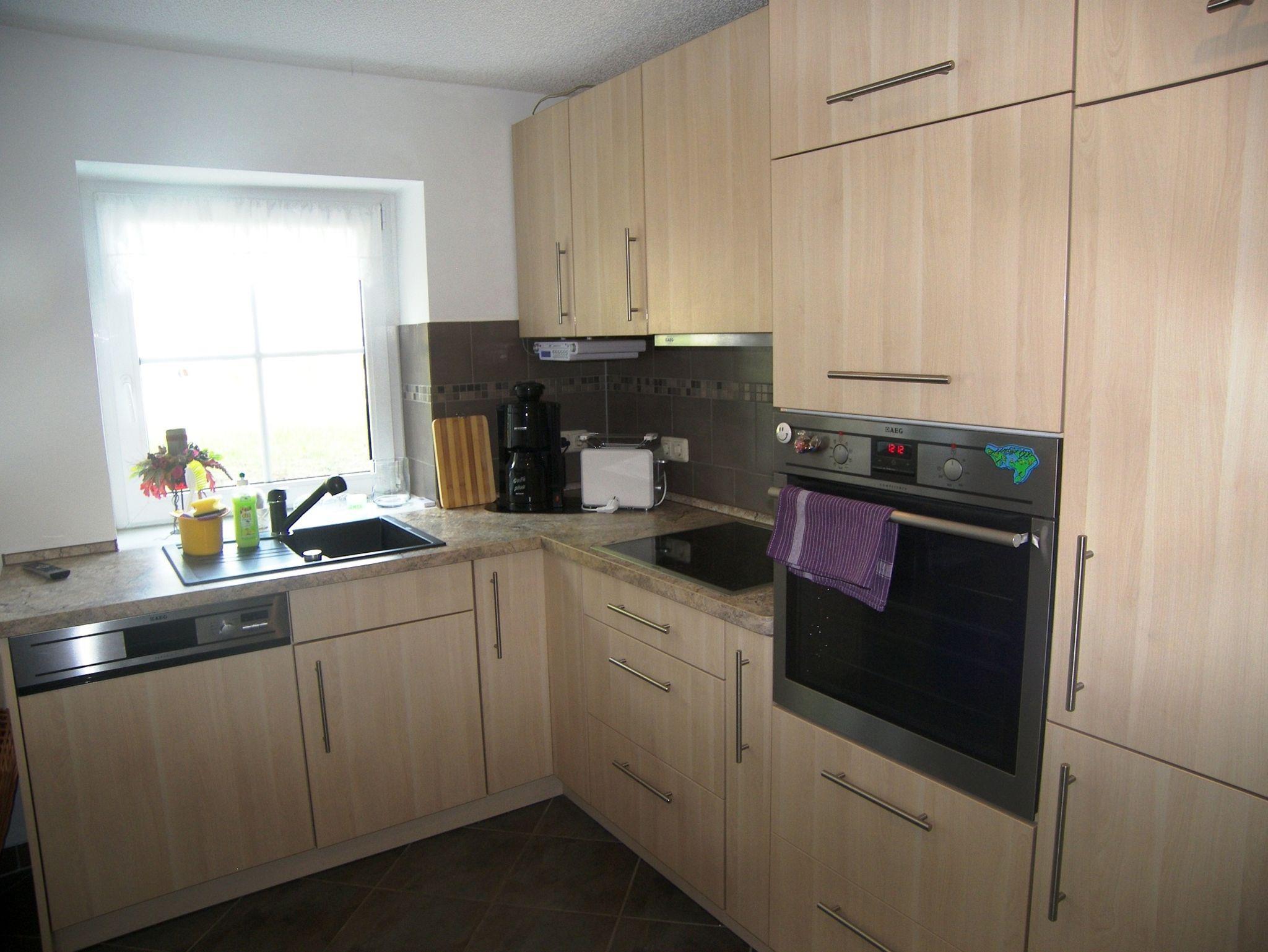 Die separate Küche ist voll ausgestattet Sitzecke und Esstisch sowie Geschirrspüler, Backofen und Cerankochfeld, Kühlschrank mit Gefrierkombination, Mikrowelle, Kaffeemaschine, Toaster und Wasserkocher, außerdem wird Ihnen Fit, Schwamm, Spültuch und Geschirrhandtuch zur Verfügung gestellt.