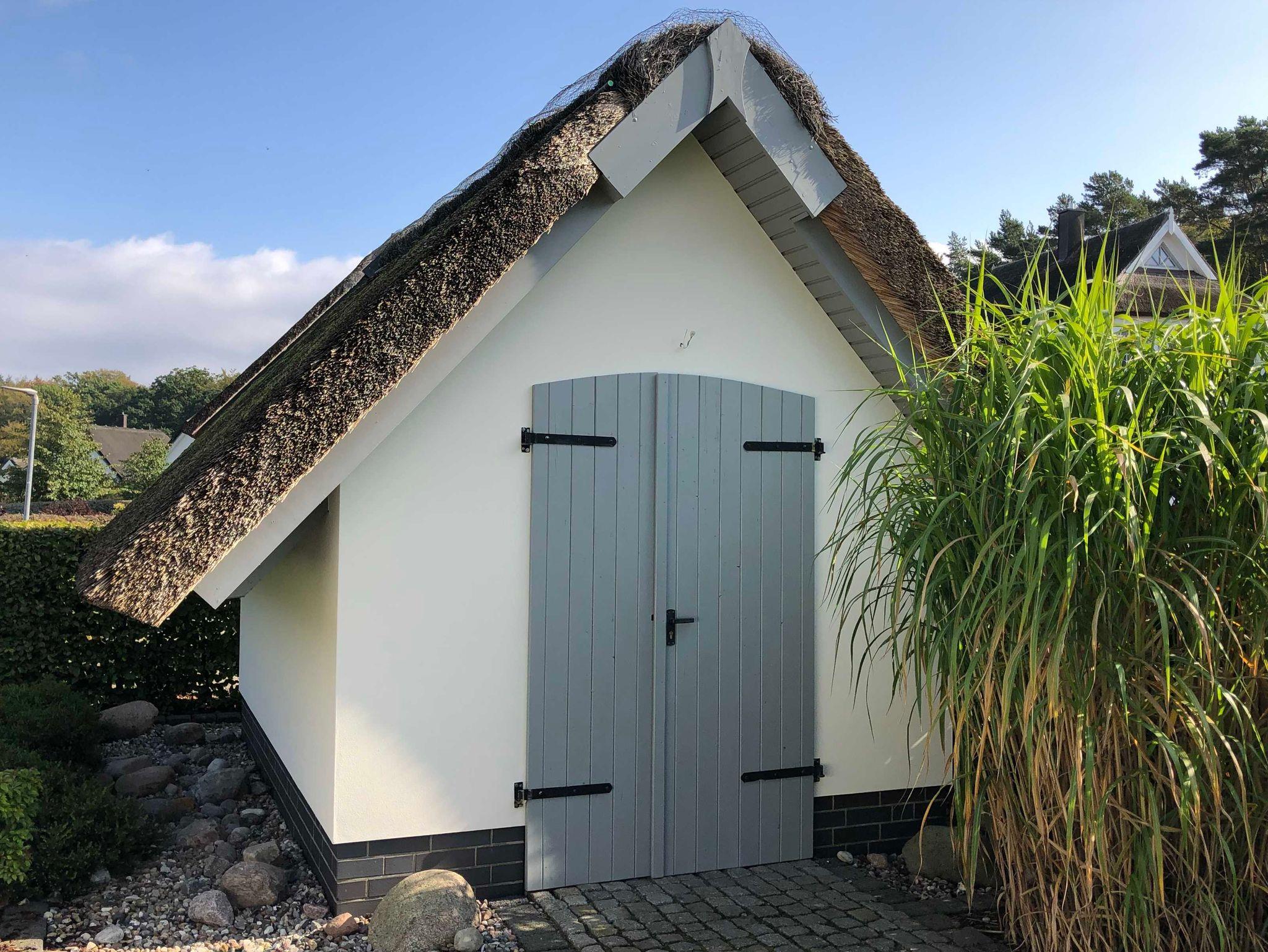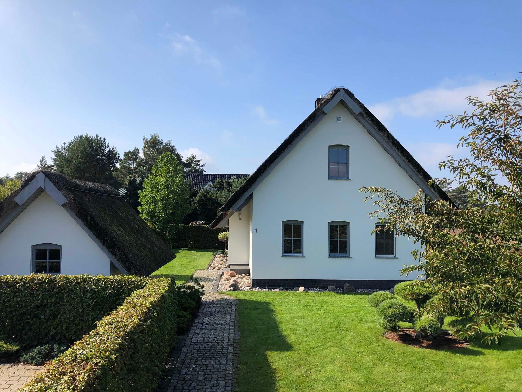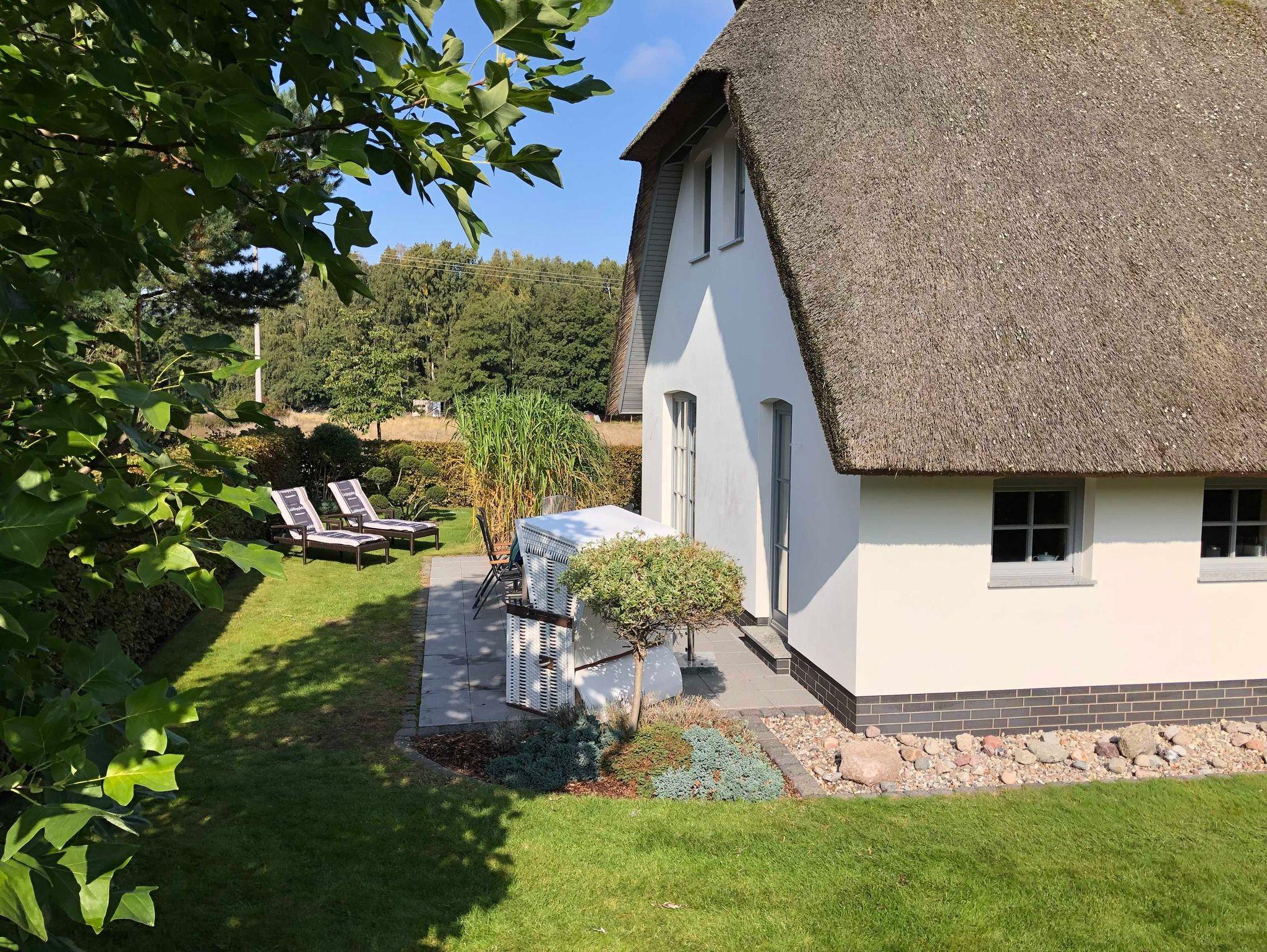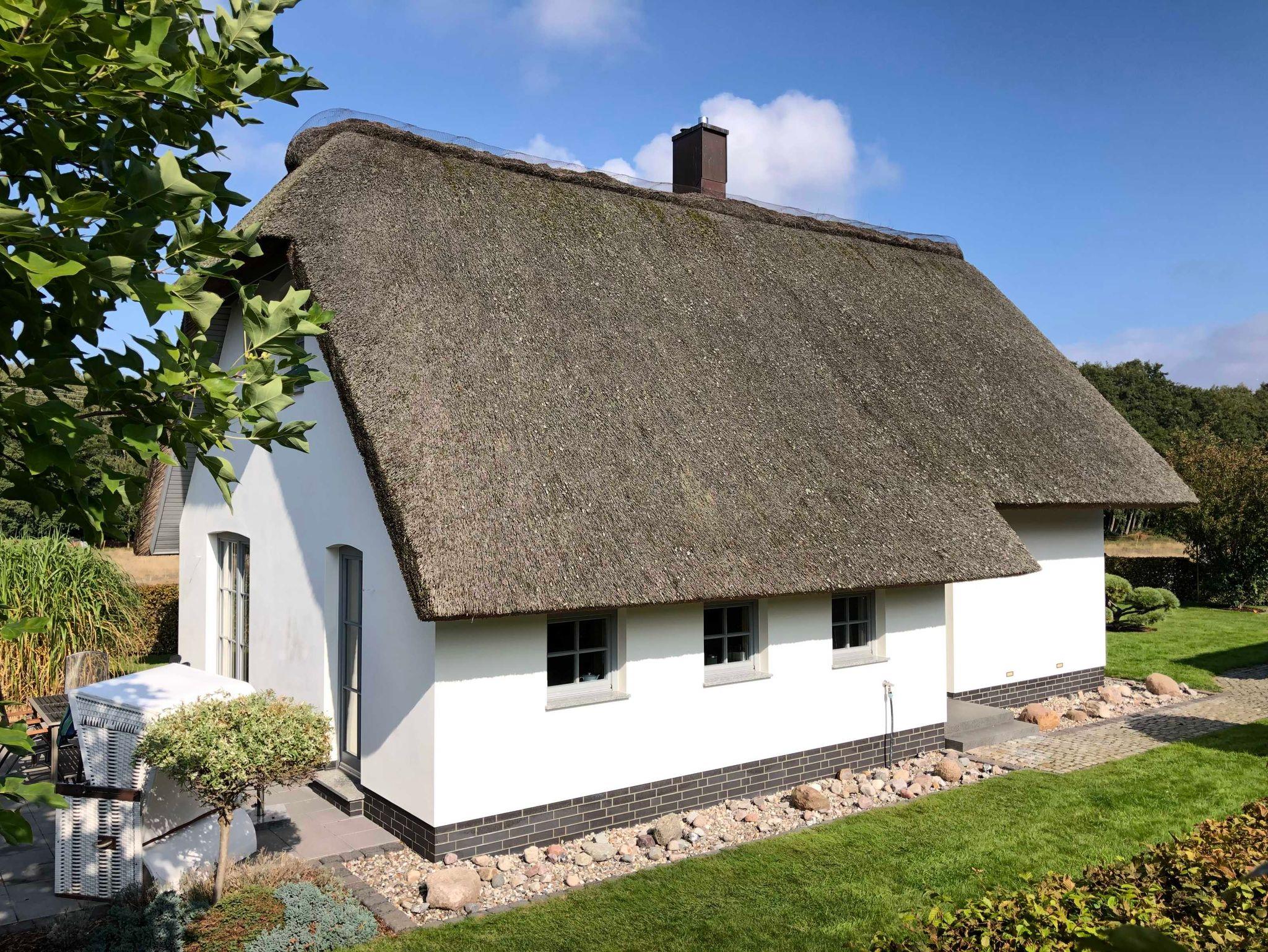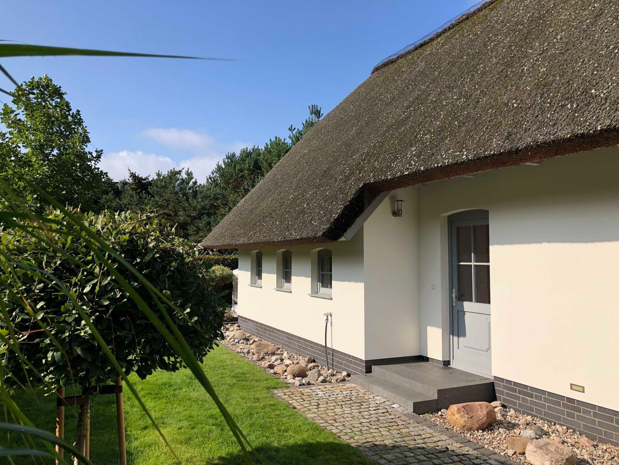 Dieses freistehende reetgedeckte Ferienhaus mit 110qm Wohnfläche wurde auf einem großzügigen und liebevoll gestaltetem Grundstück errichtet. Urlaubserleben und Komfort spiegeln sich in stilvoller Einrichtung im Wohn-und Eßbereich mit Kamin, den 2 Schlafzimmern, 2 Bädern+ Sauna und der idyllischen Sonnenterrasse wieder.
